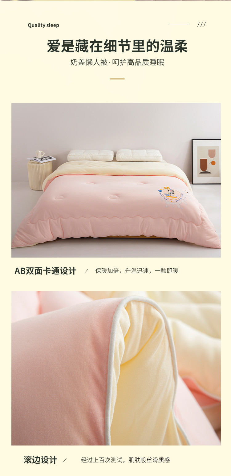 佳居缘2023新款AB双拼糯糯元气奶盖懒人被 草莓奶芙-粉黄
