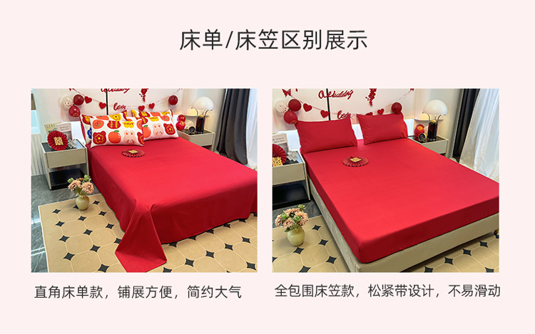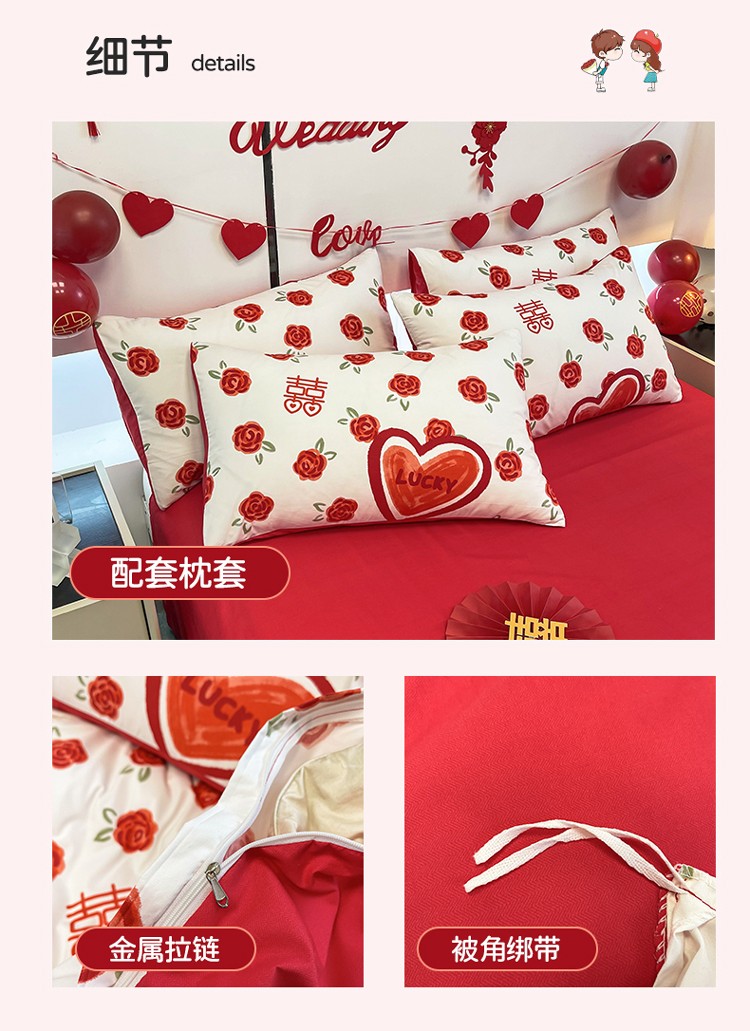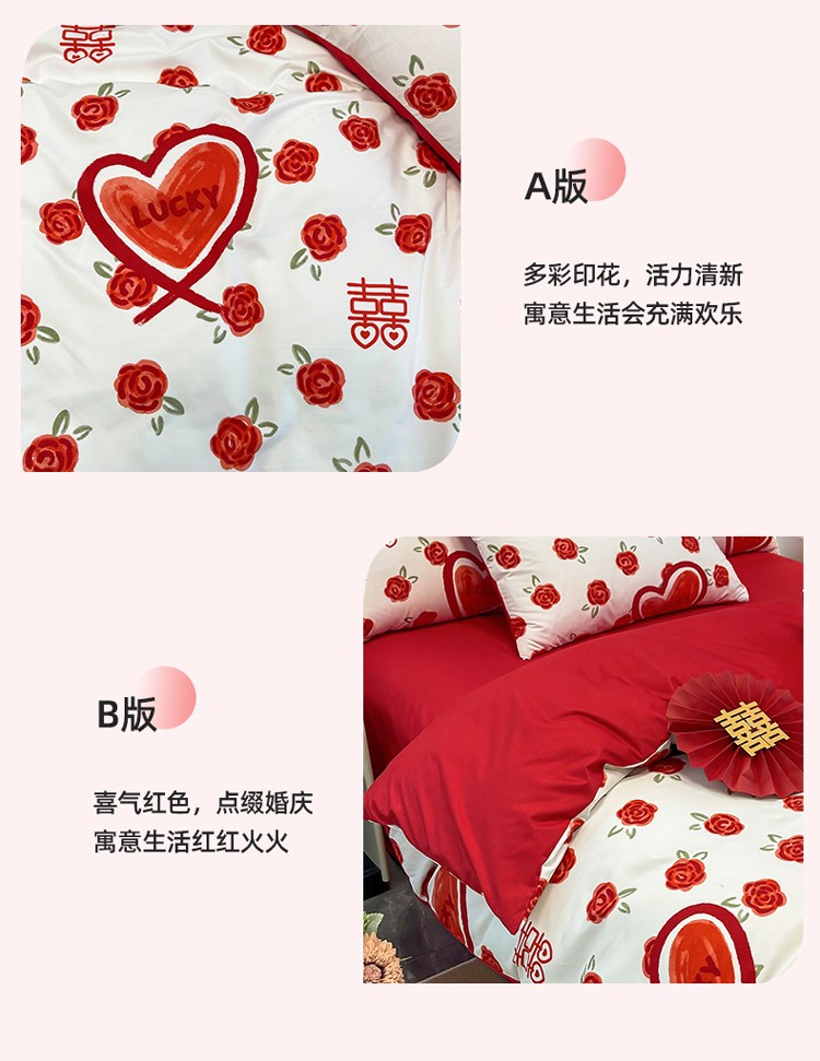 商品名称:宏源 2022年新款大红时尚磨毛婚庆四件套 心心相印