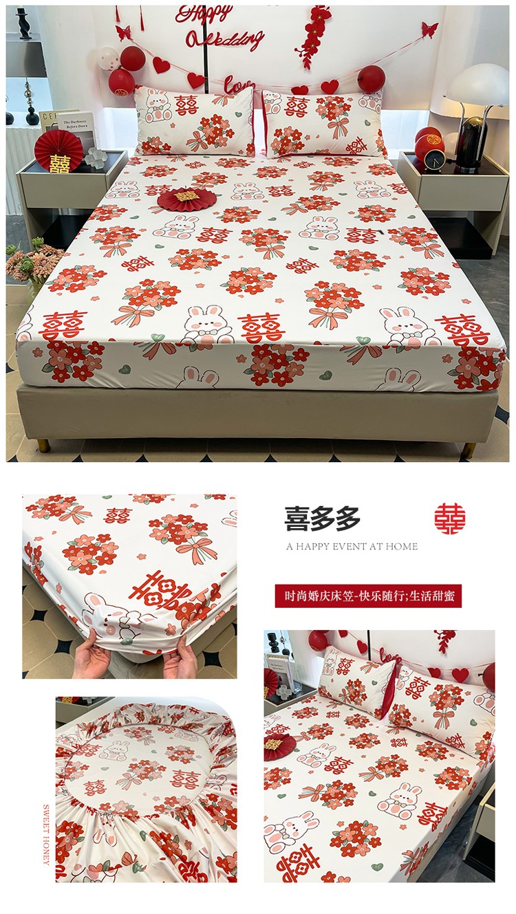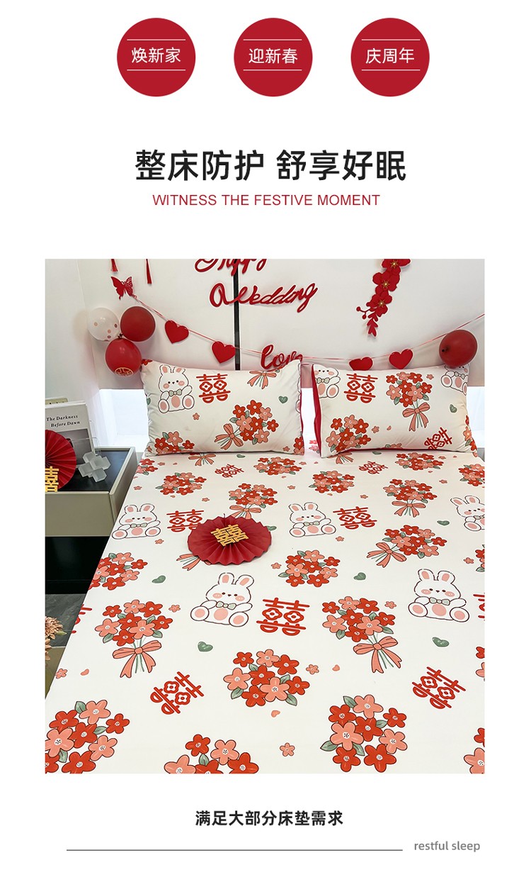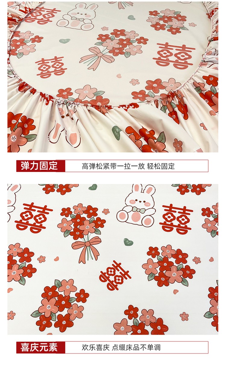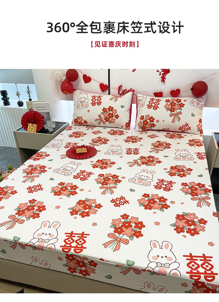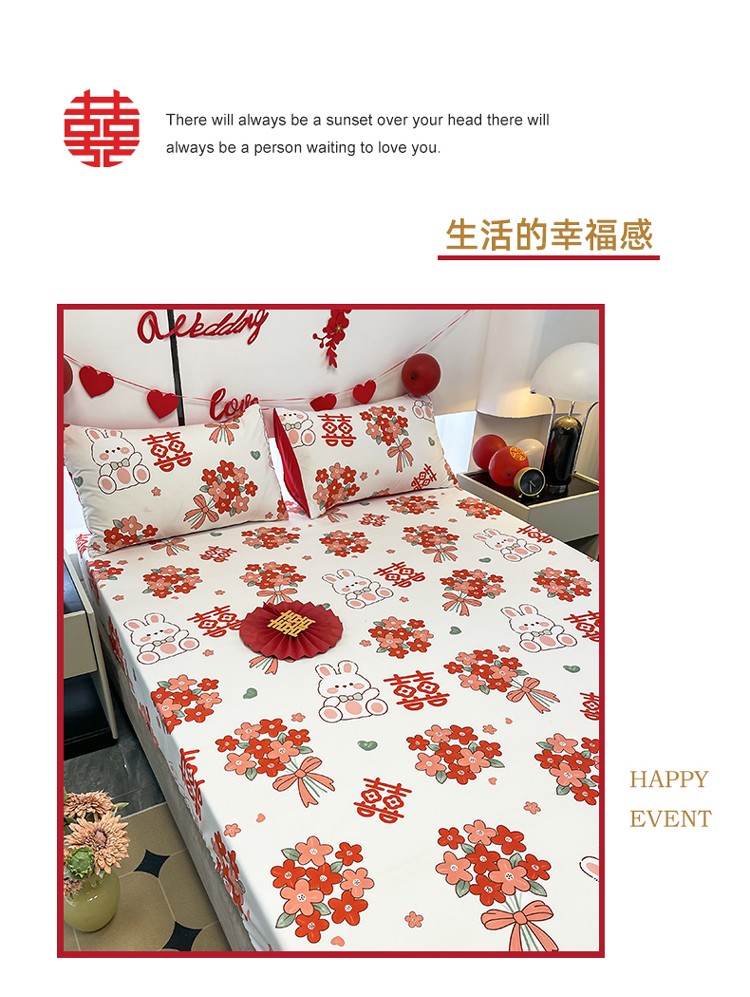 宏源 2023年新款大红时尚磨毛婚庆单床笠 喜多多