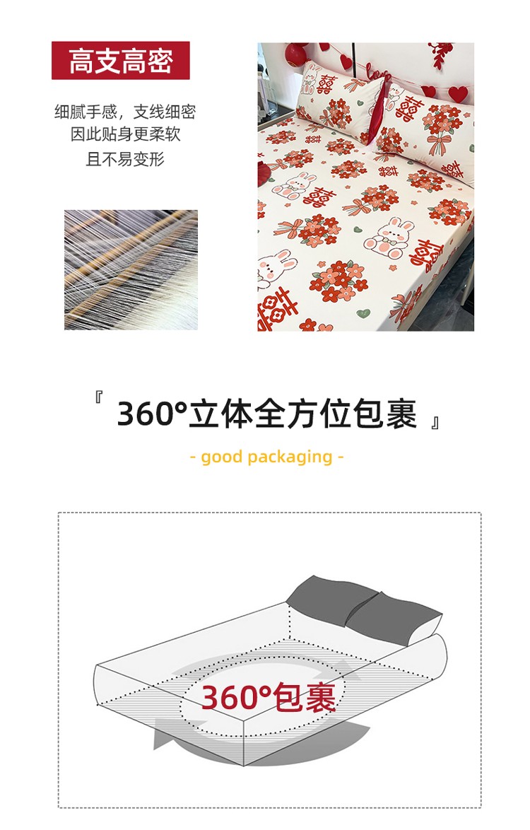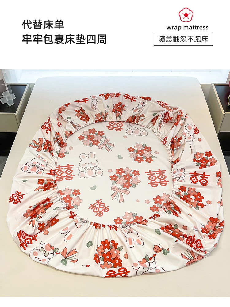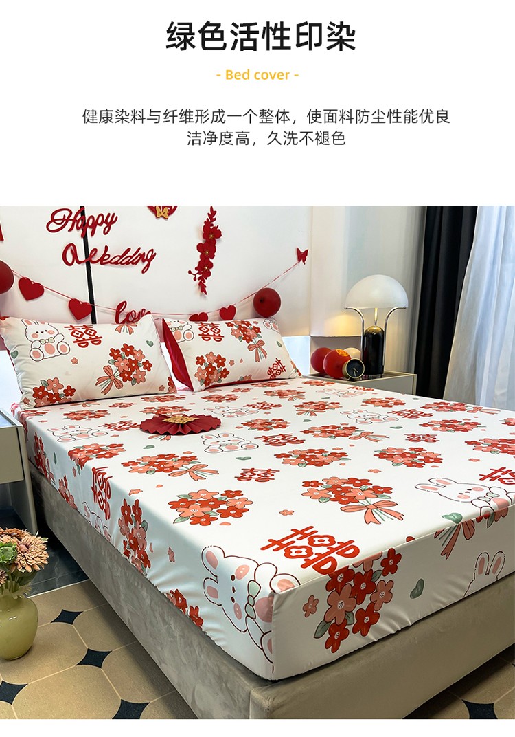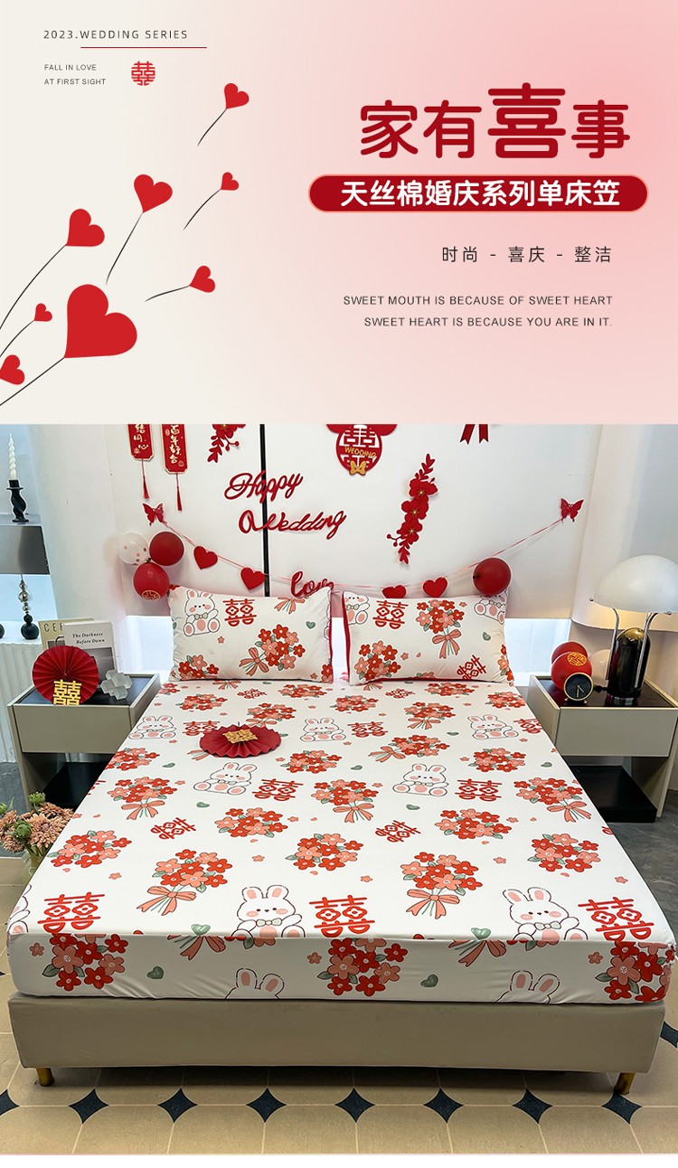 宏源 2023年新款大红时尚磨毛婚庆单床笠 喜多多