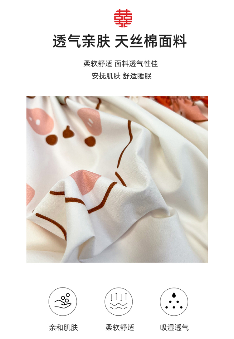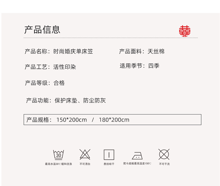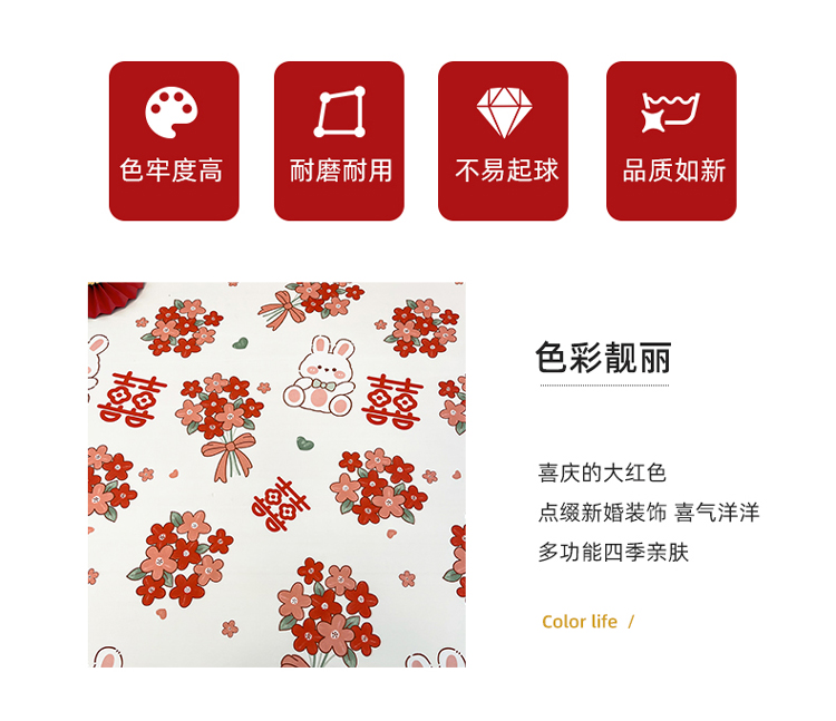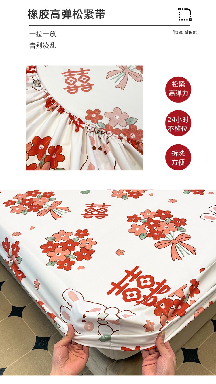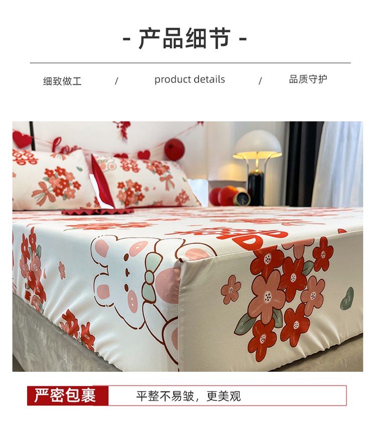 商品名称:宏源 2023年新款大红时尚磨毛婚庆单床笠 喜多多