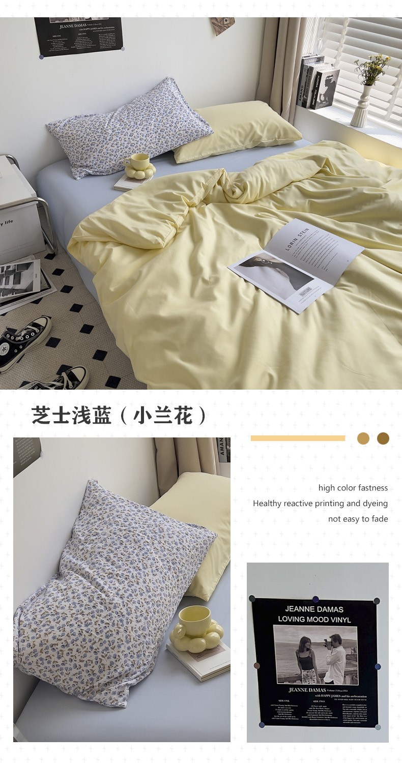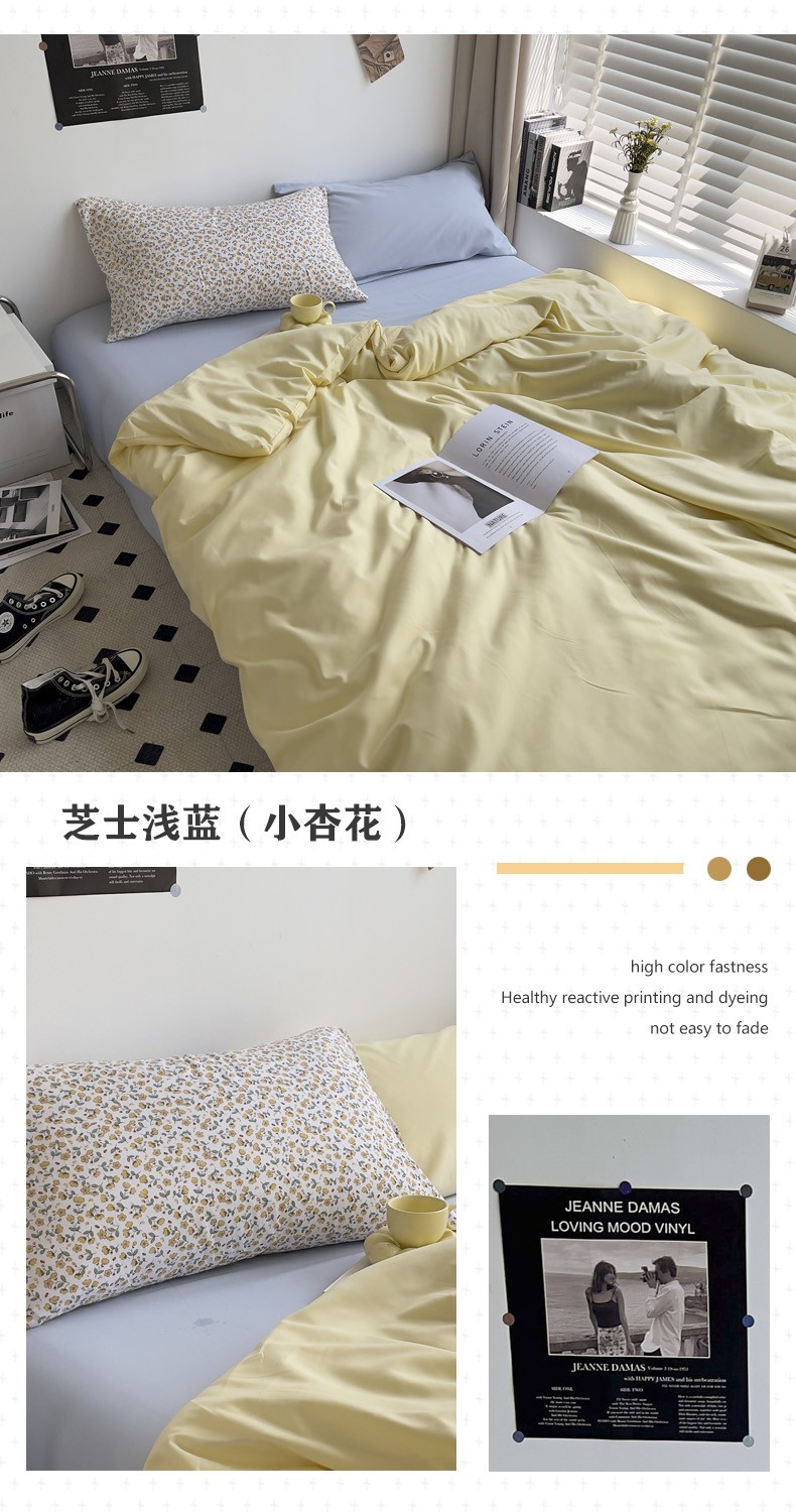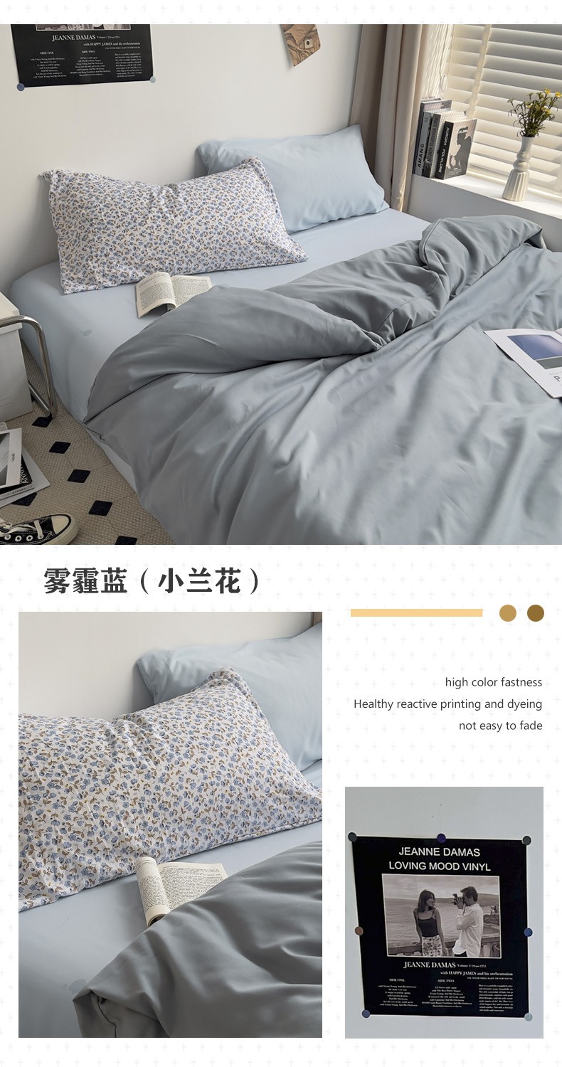 (总)曼谷 新款亲肤棉纯色双拼北欧风碎花简约四件套