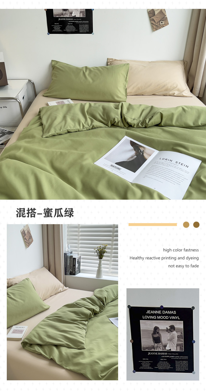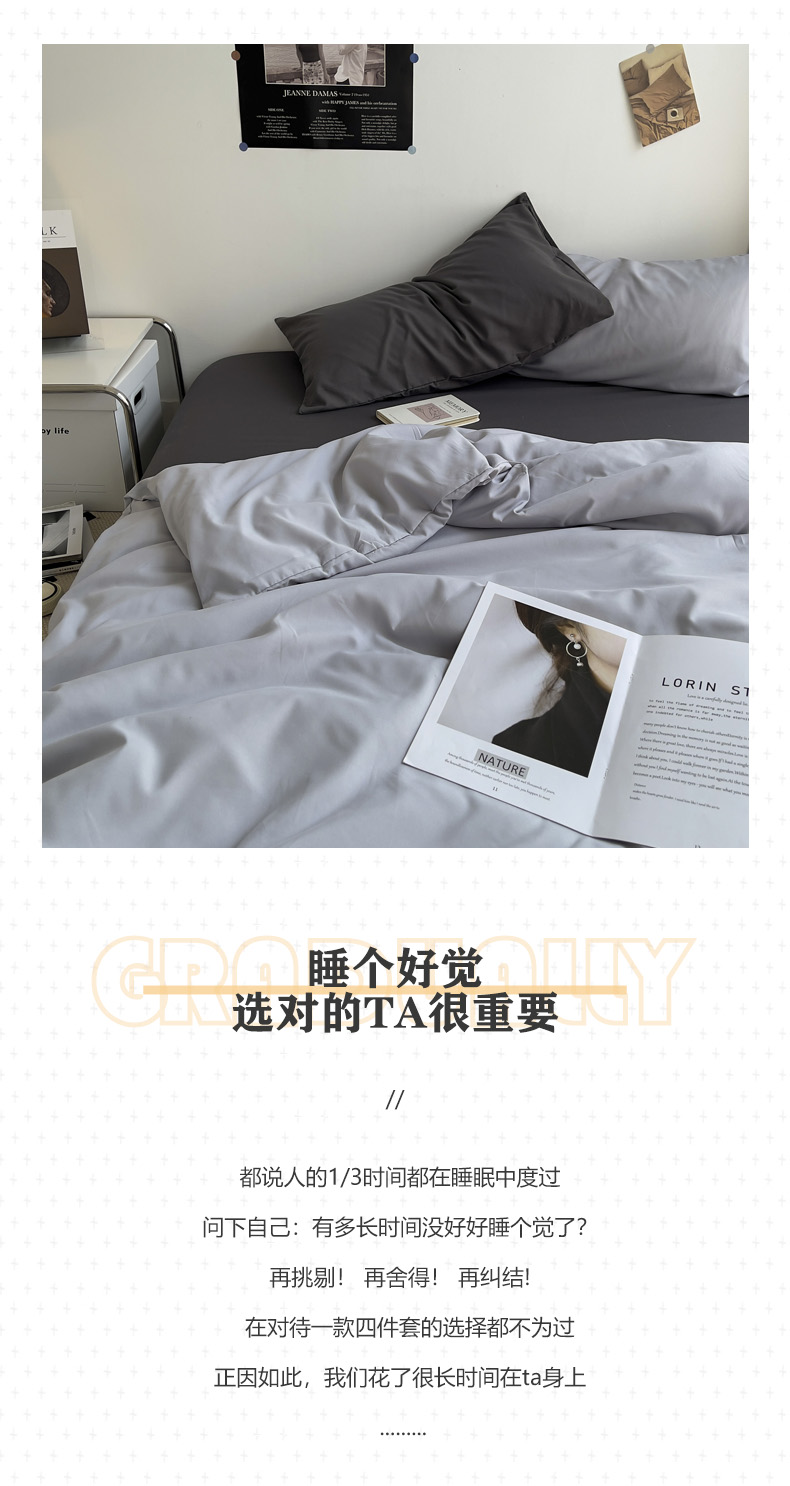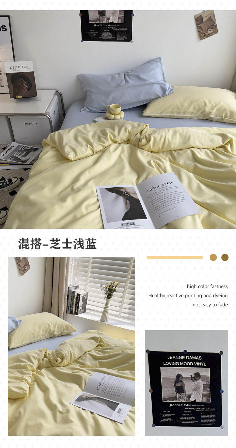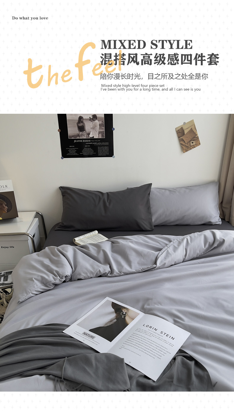 (总)曼谷 新款亲肤棉纯色双拼北欧风碎花简约四件套
