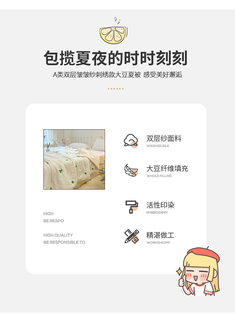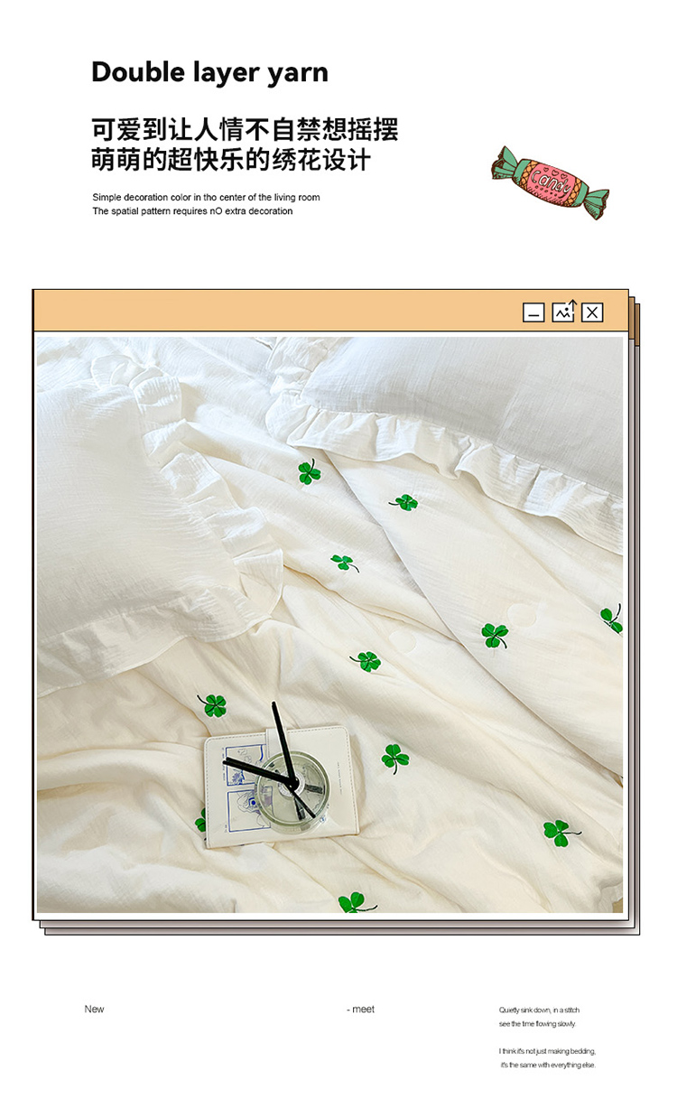 商品名称:木楌 2024新款双层皱皱纱刺绣款夏被 三叶草