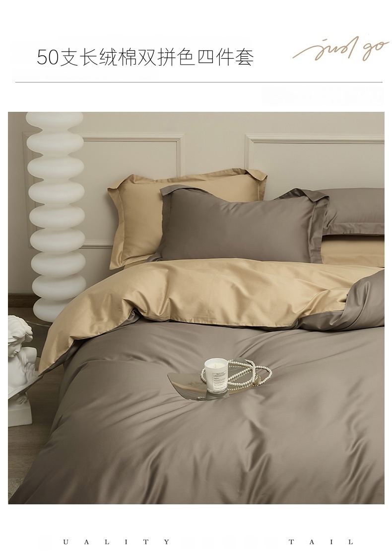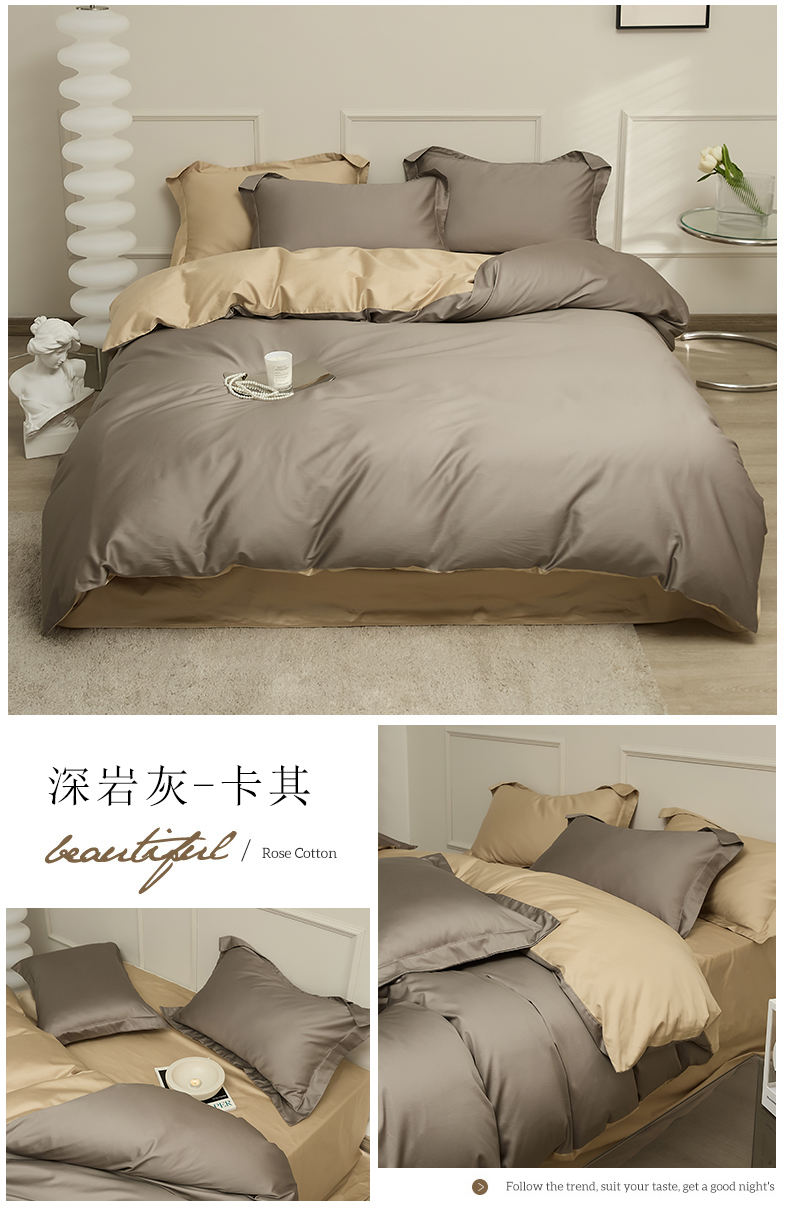 当前位置: 91家纺网 > 商品网购 > 床品套件 > 四件套 > 长绒棉四件套 > 新款100S长绒棉双拼四件套 深岩灰-卡其