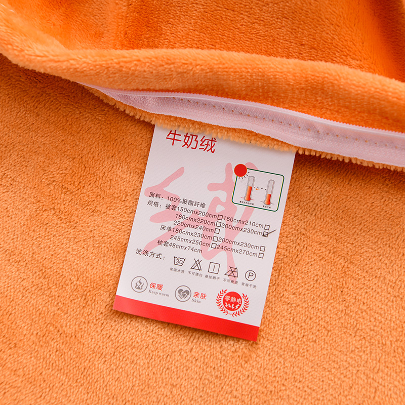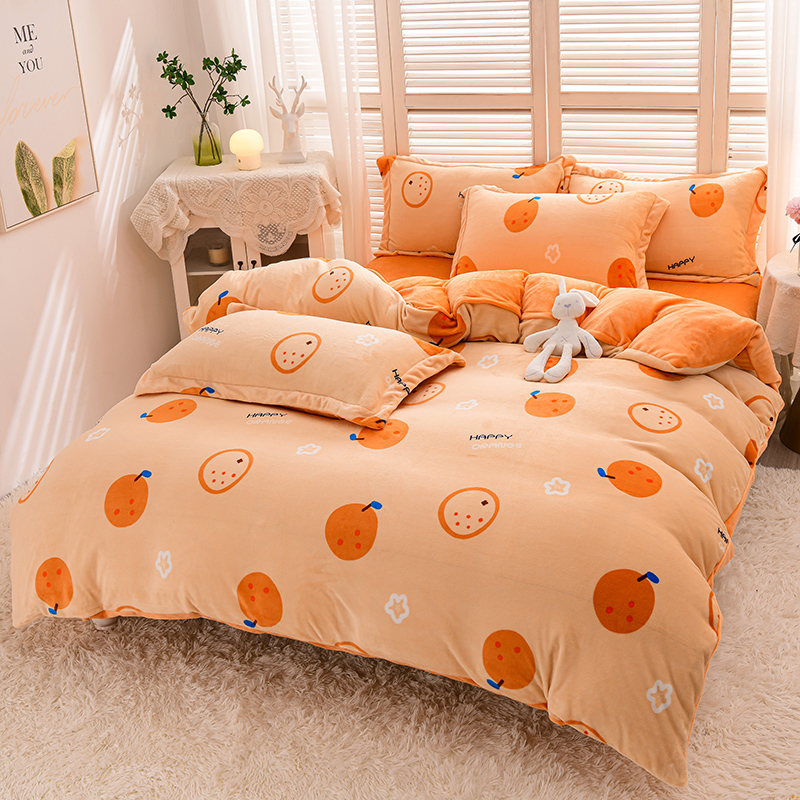 商品名称:爱上家居 2023新款温暖亲肤加厚牛奶绒四件套 小橘子