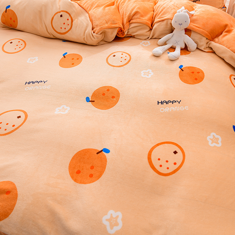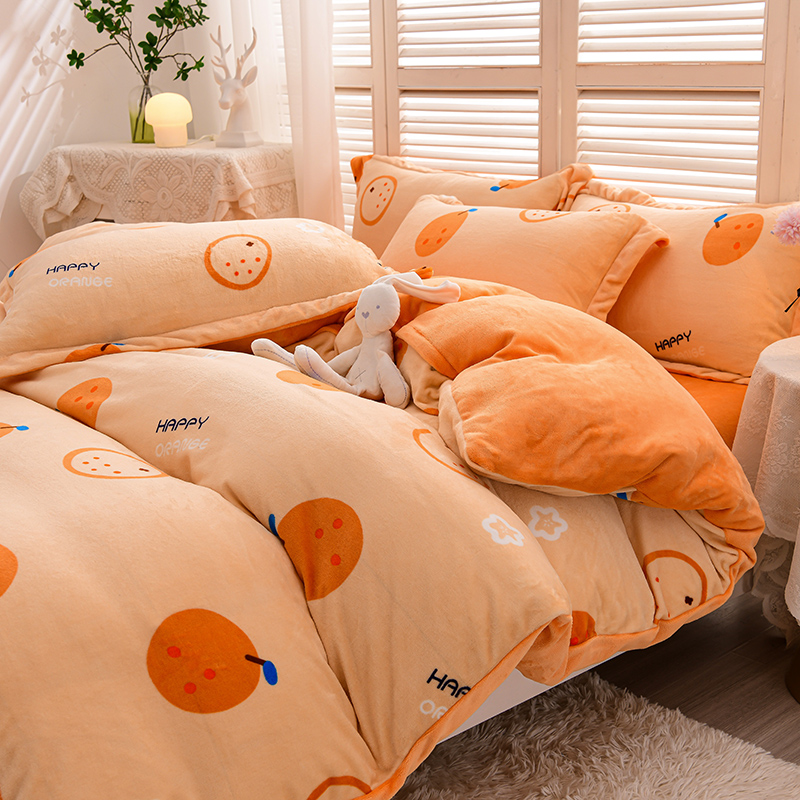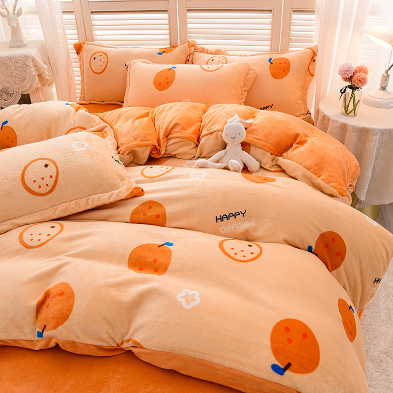 爱上家居 2023新款温暖亲肤加厚牛奶绒四件套 小橘子