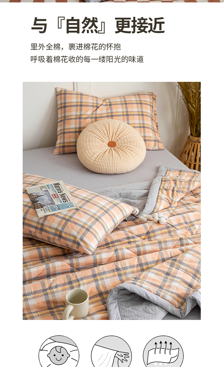 鸣升新疆长绒棉全棉花色织水洗棉夏被四件套 莫妮卡桔