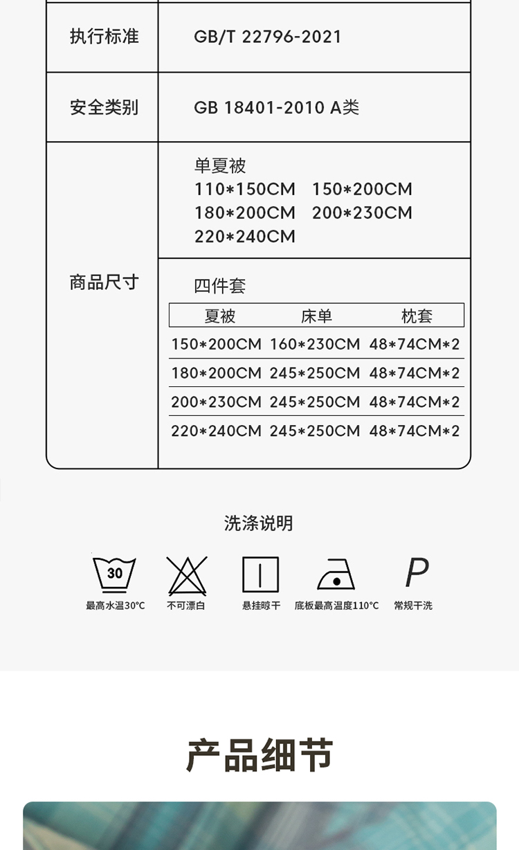 • 适用季节: 空调被/夏凉被