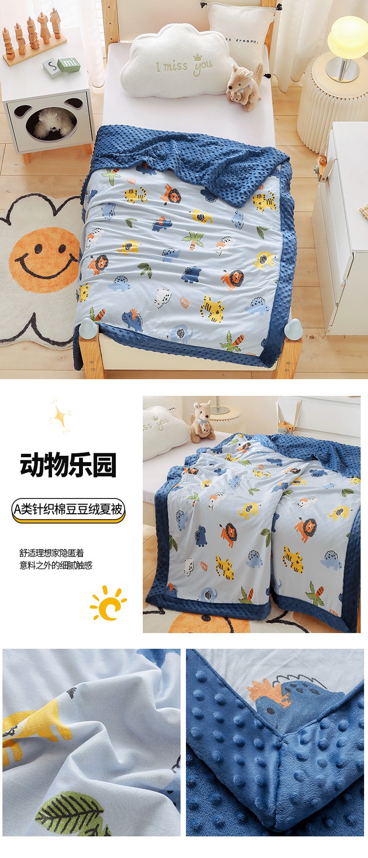 商品名称:2023新款针织棉豆豆绒盖毯 夏被 幼儿园 儿童被子 涂鸦乐园
