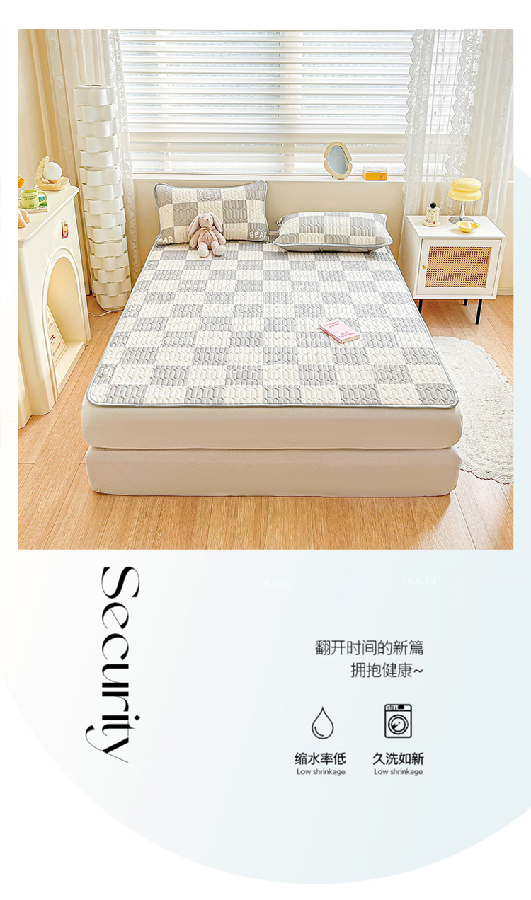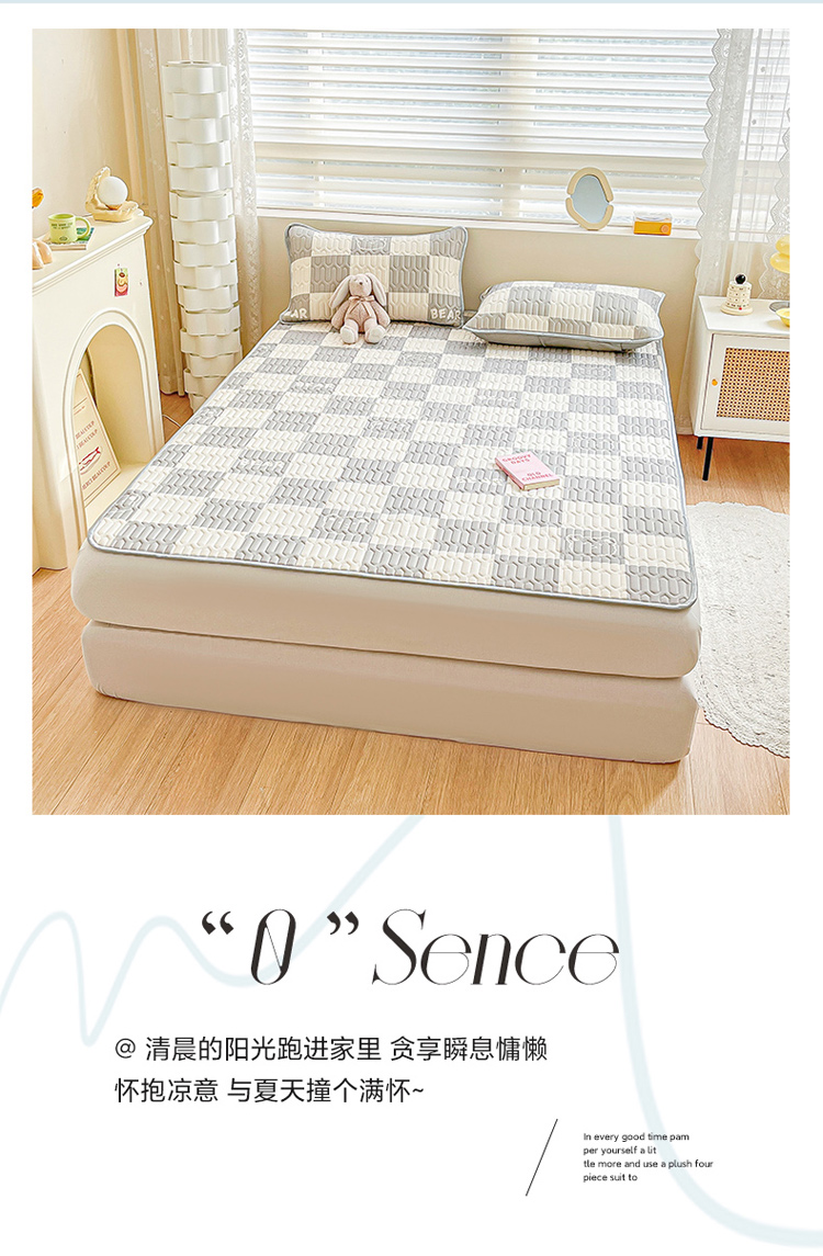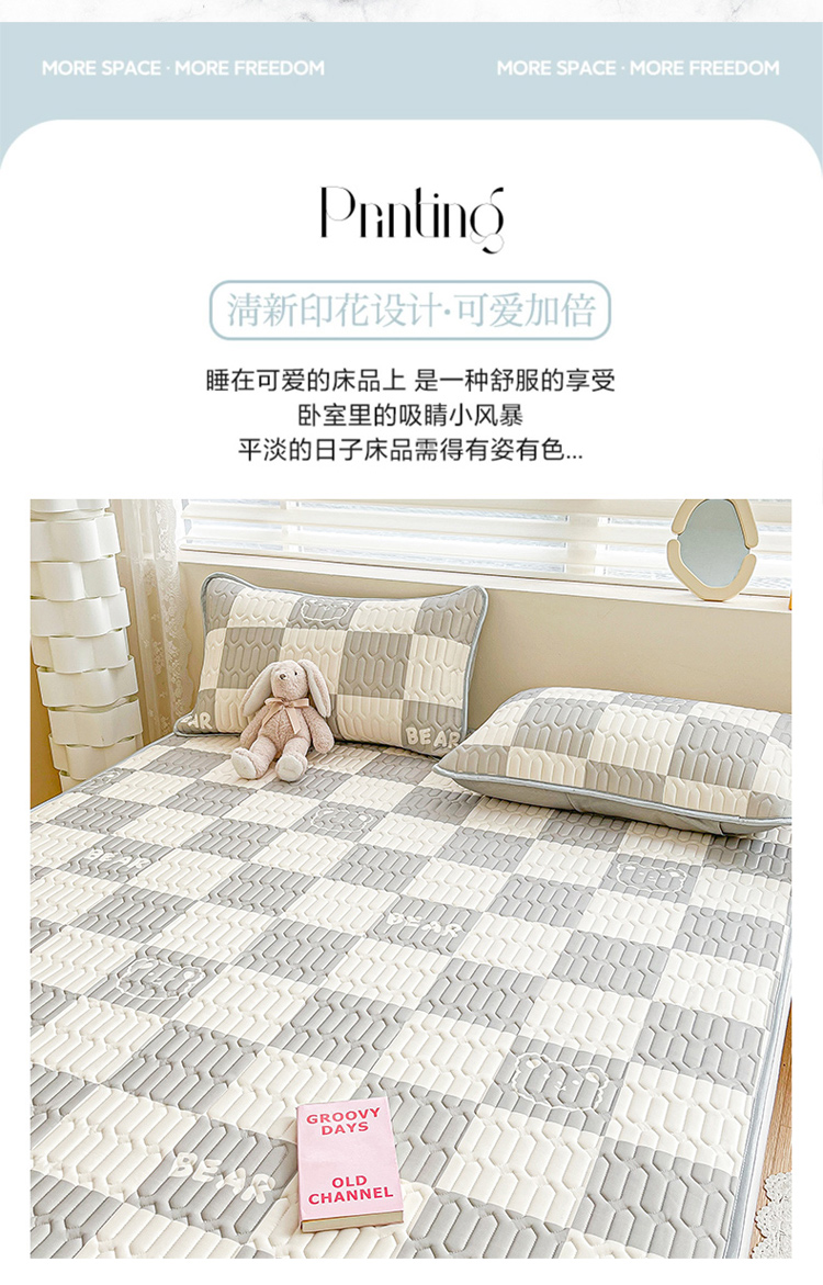 商品名称:柒月2023小清新乳胶凉席 灰格小熊