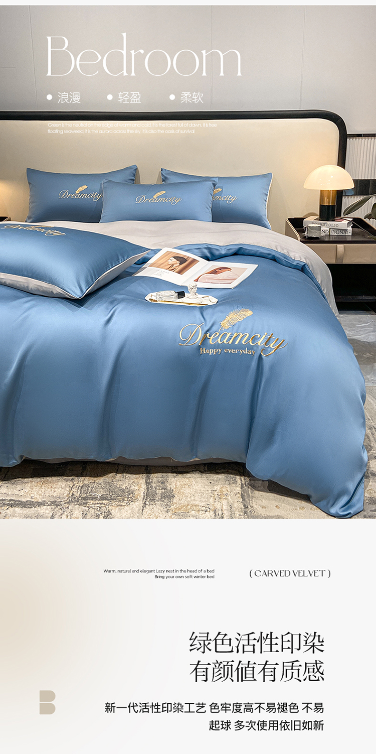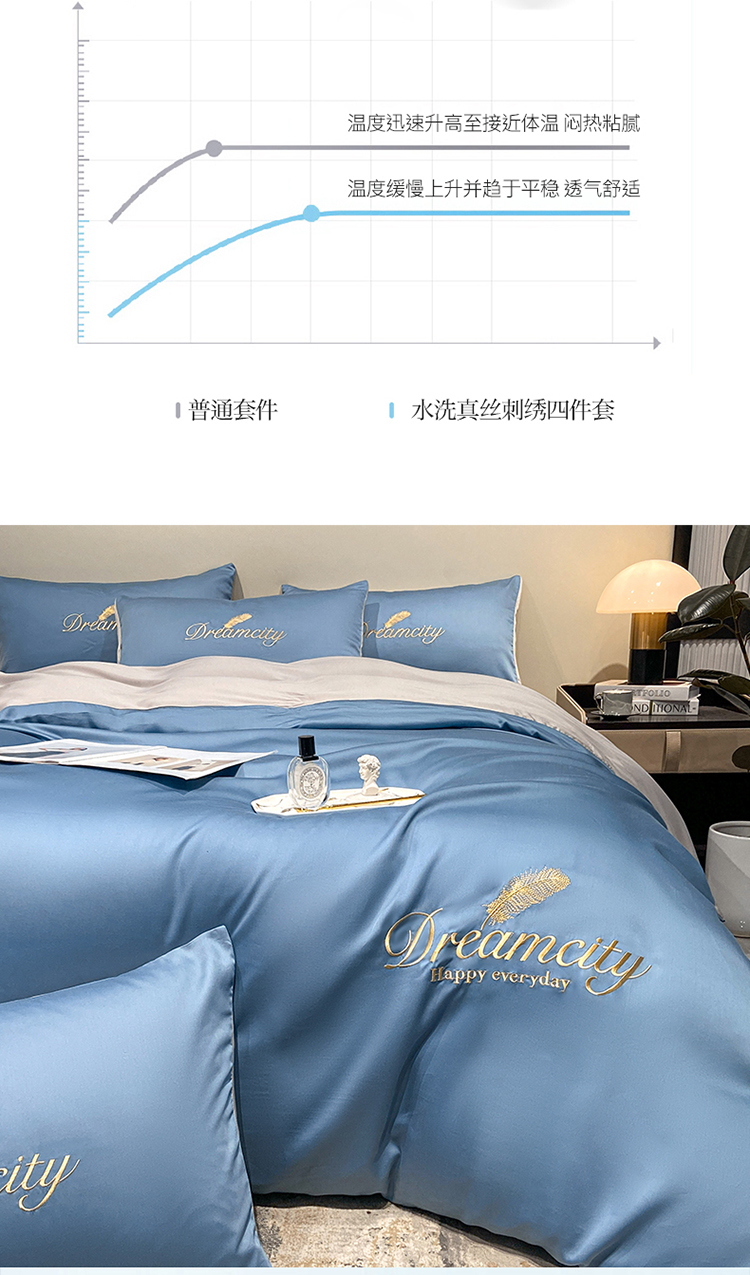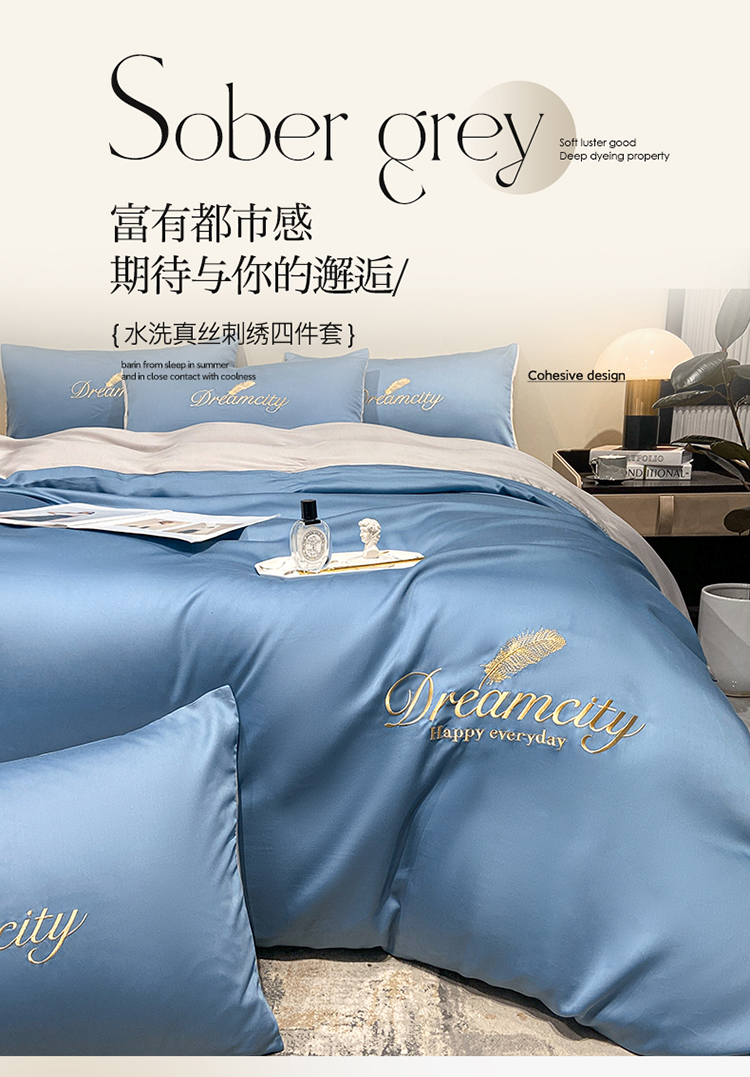 商品名称:(总)花愿 2025新款水洗真丝刺绣四件套-羽梦系列