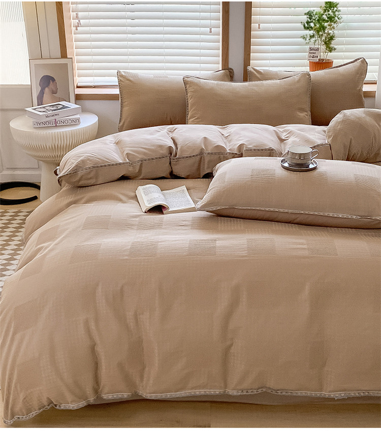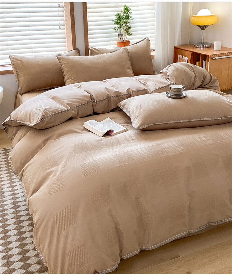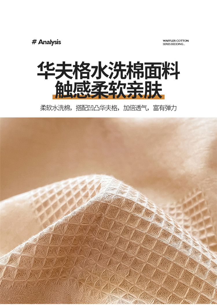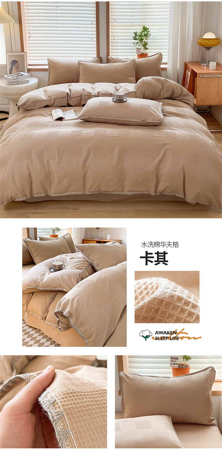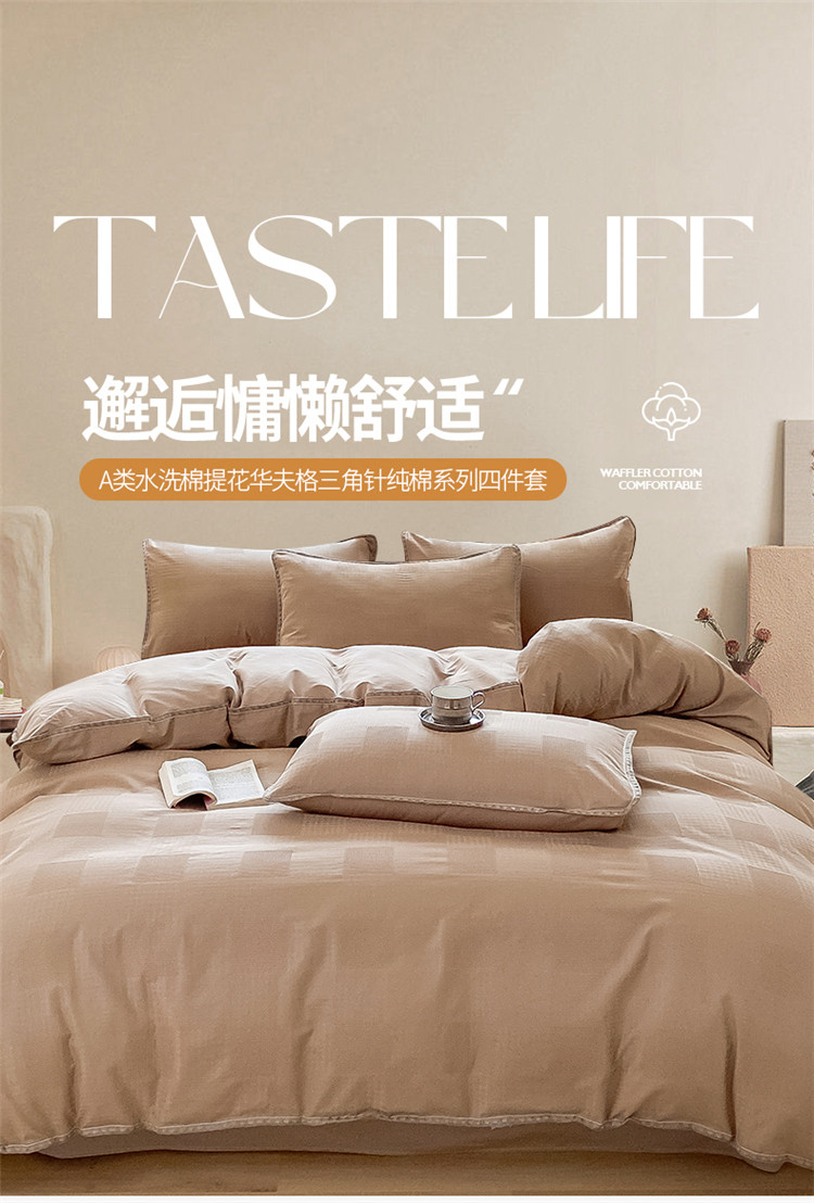 2023新款A类60S水洗棉提花华夫格三角针纯棉系列四件套 卡其