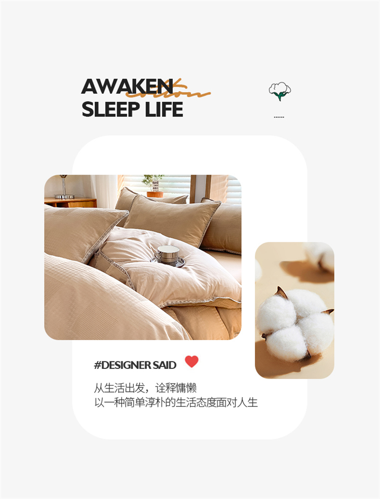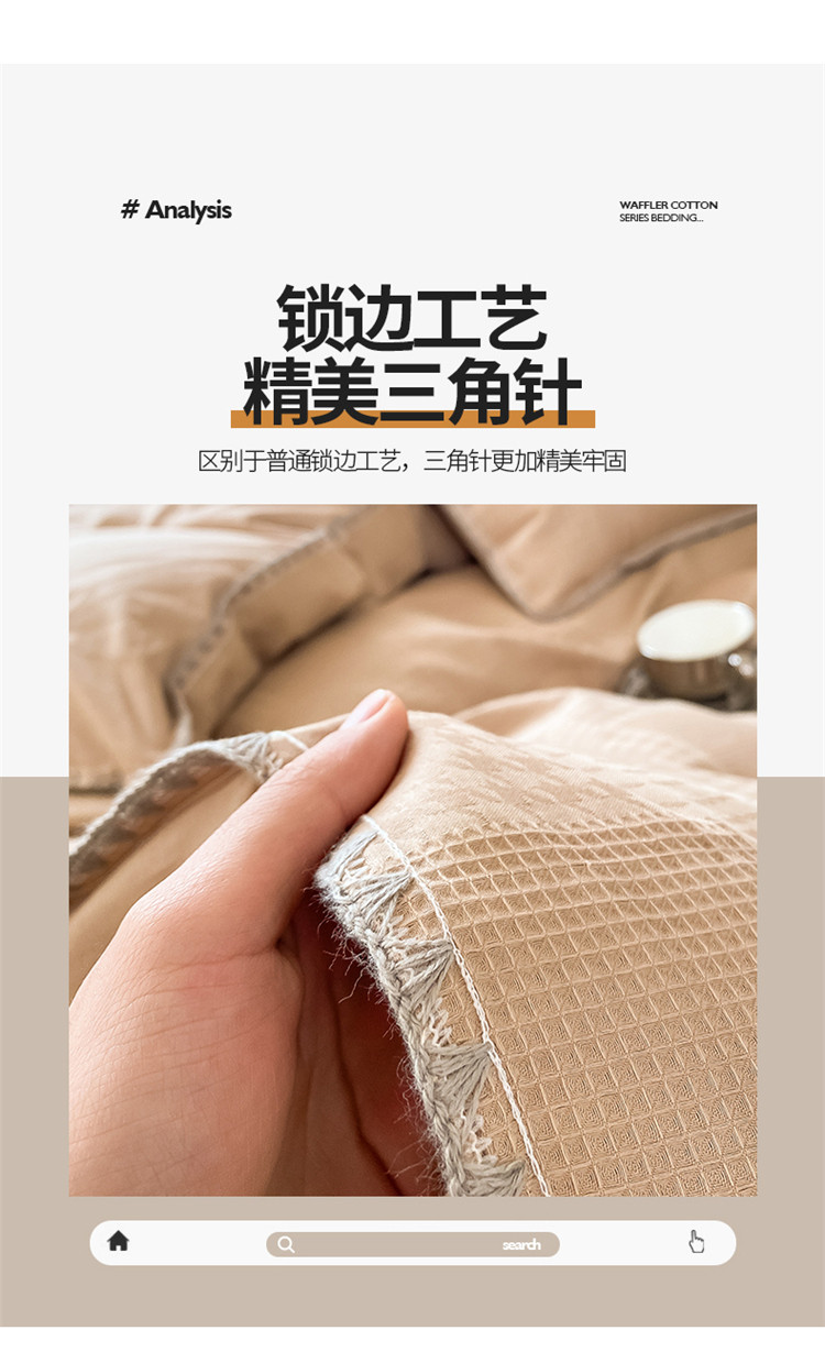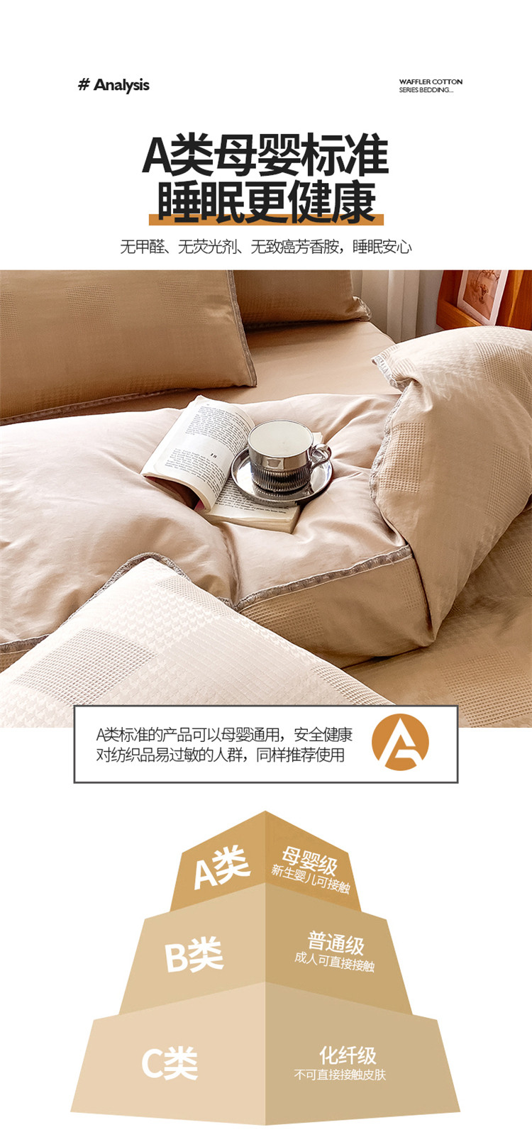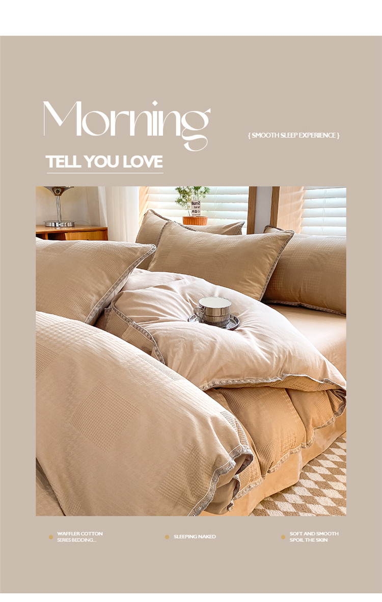 2023新款A类60S水洗棉提花华夫格三角针纯棉系列四件套 卡其