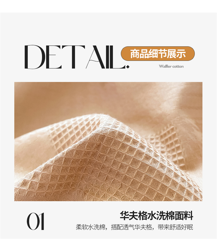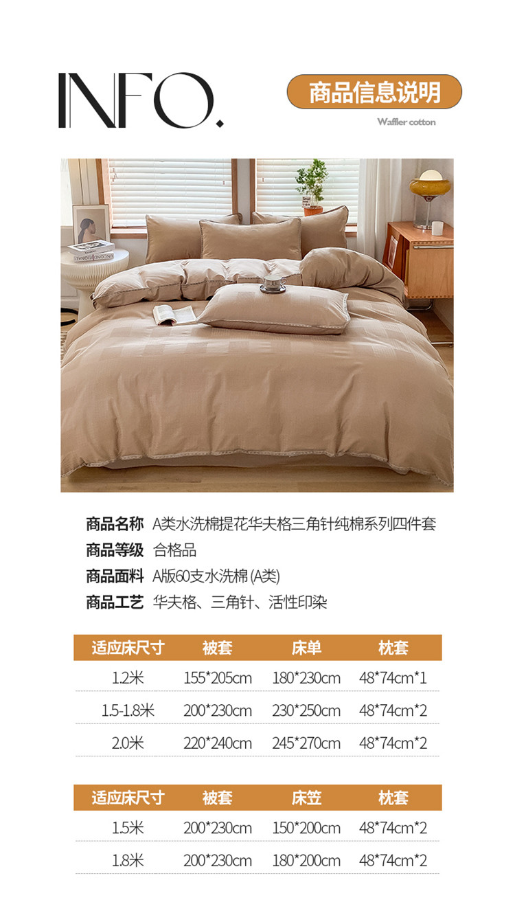 商品名称:2023新款A类60S水洗棉提花华夫格三角针纯棉系列四件套 卡其