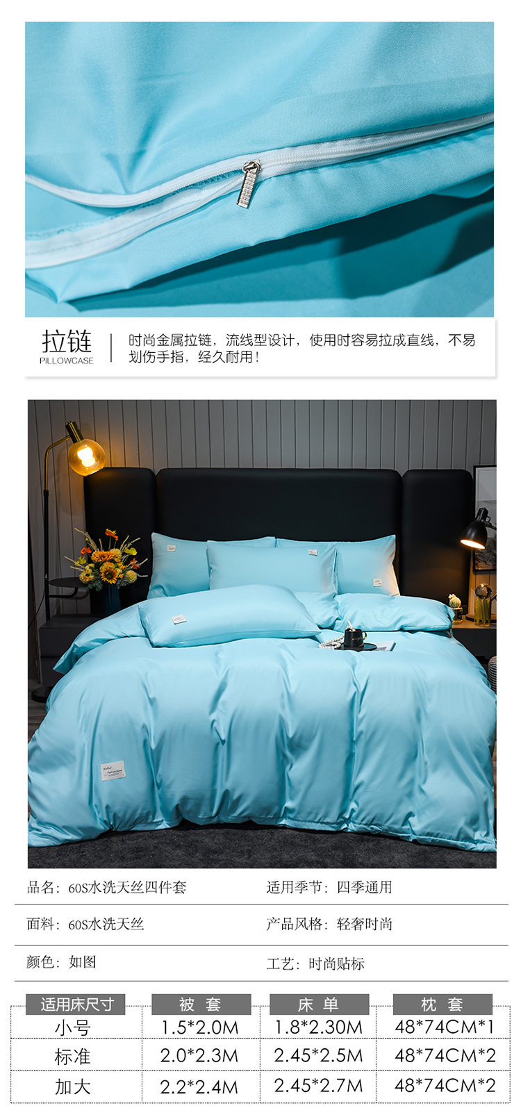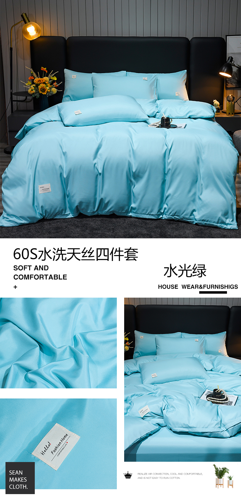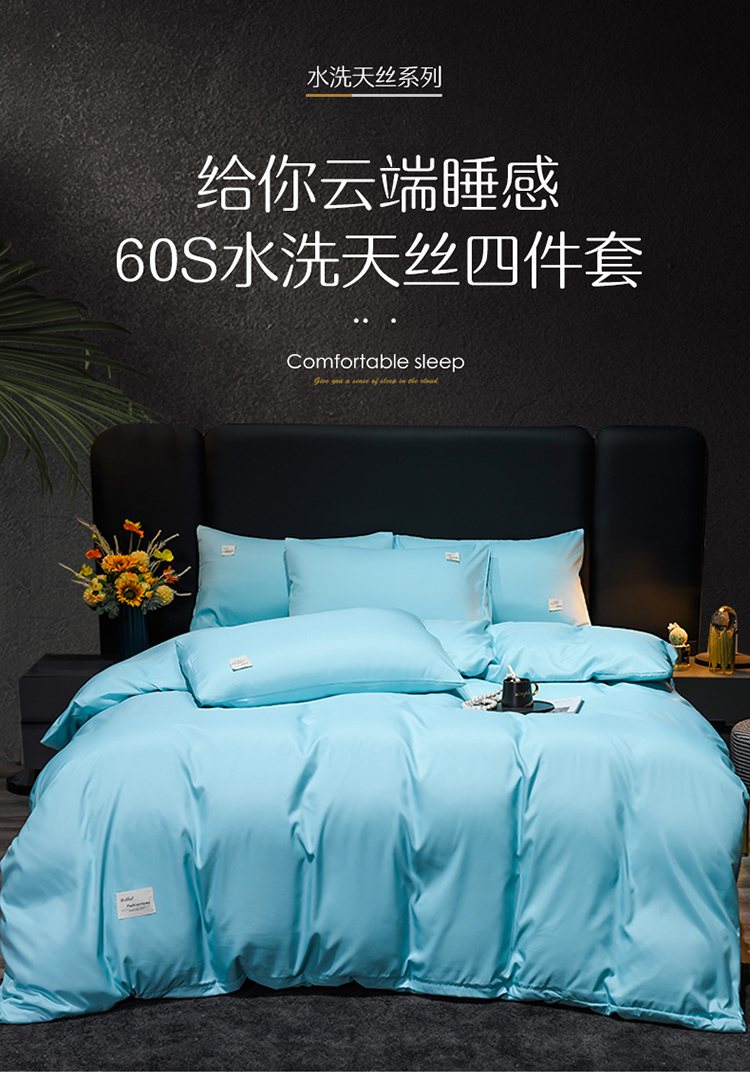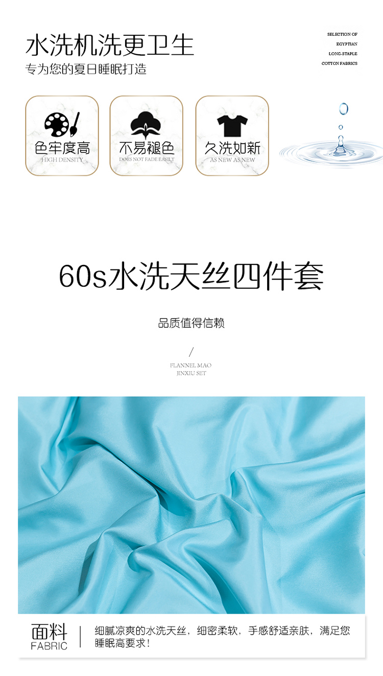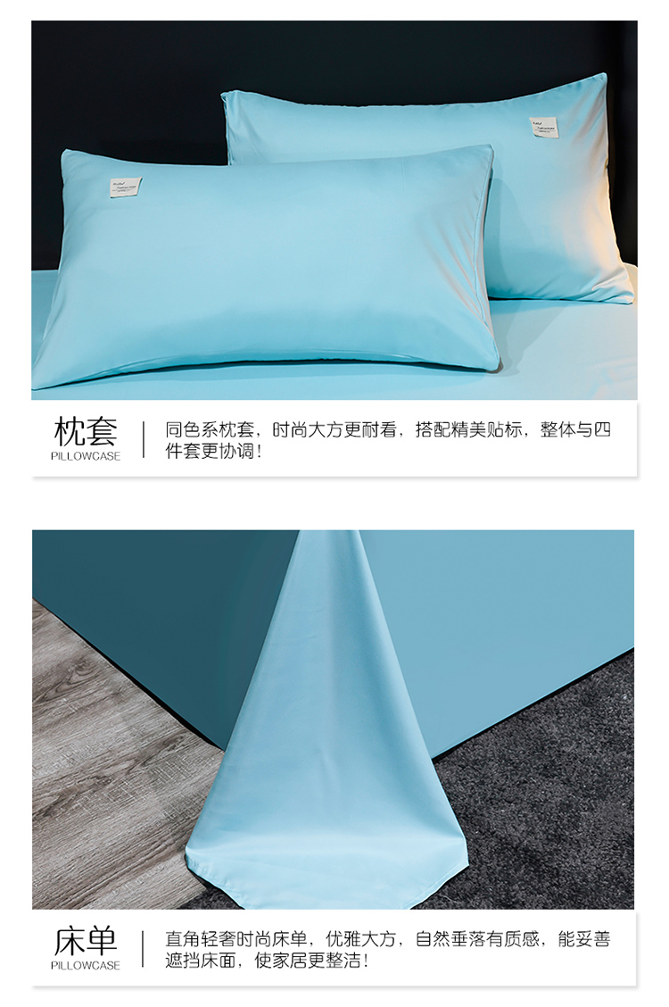 商品名称:红日子2023新款水洗真丝纯色四件套 水光绿