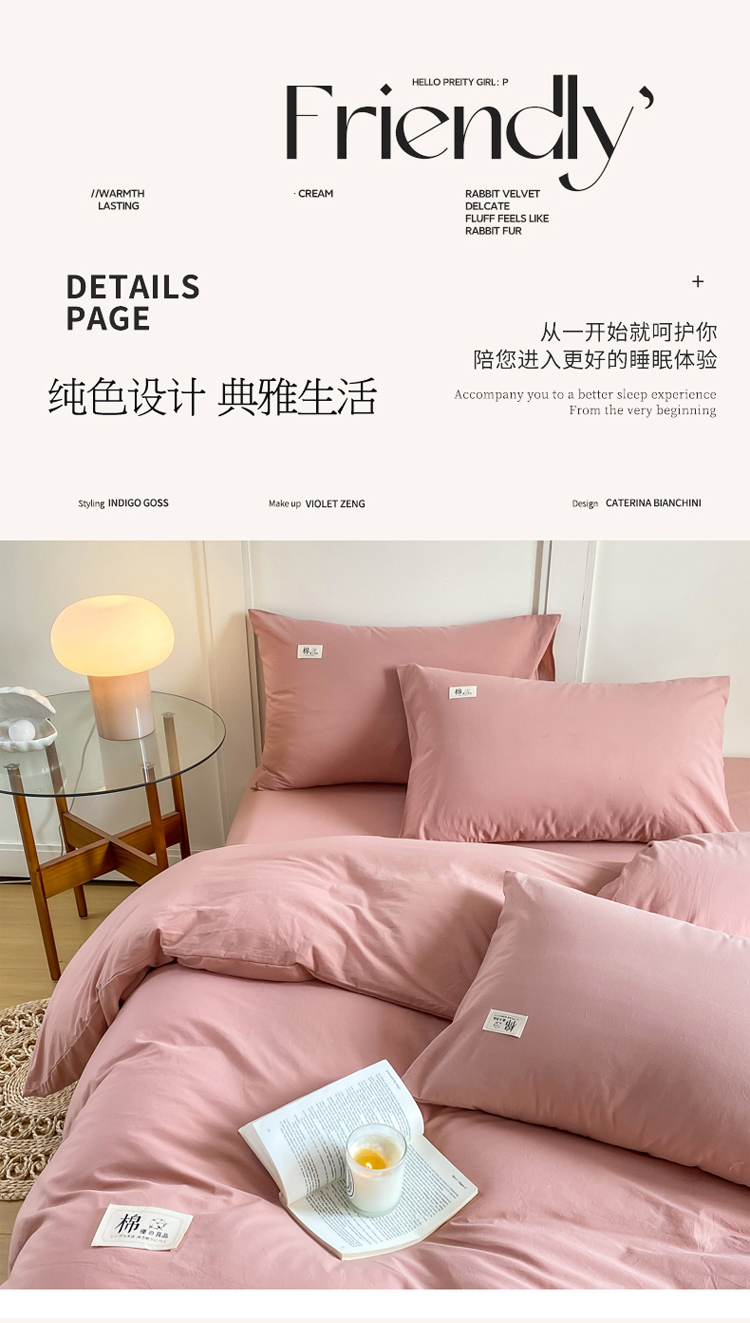 当前位置: 91家纺网 > 商品网购 > 床品套件 > 四件套 > 水洗棉四件套 > 米可 2025新款全棉色织水洗棉四件套 豆沙粉(纯色)