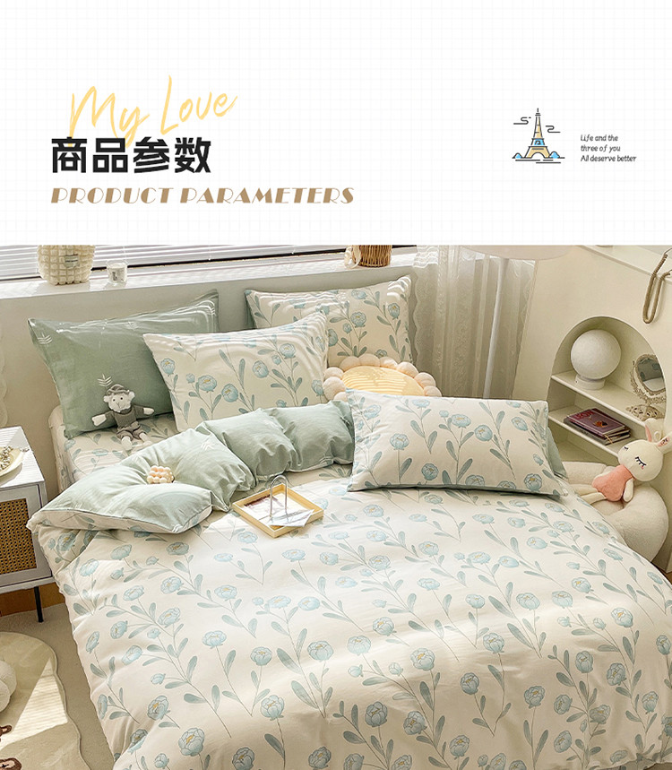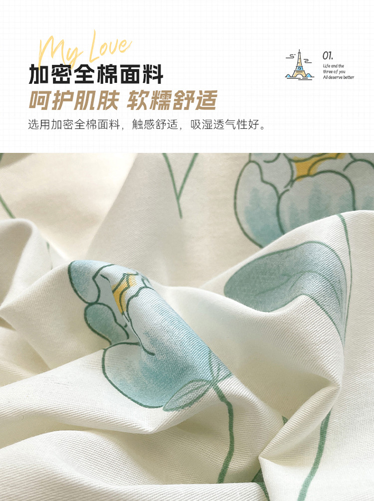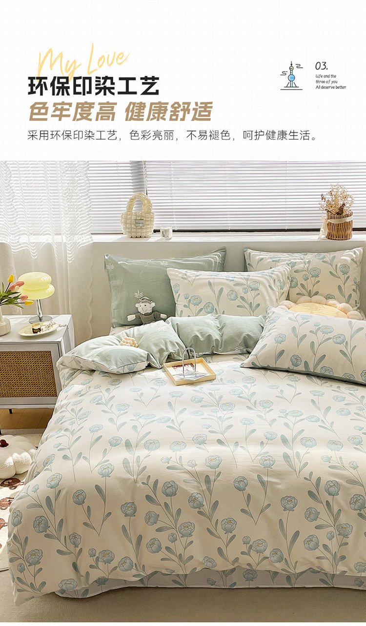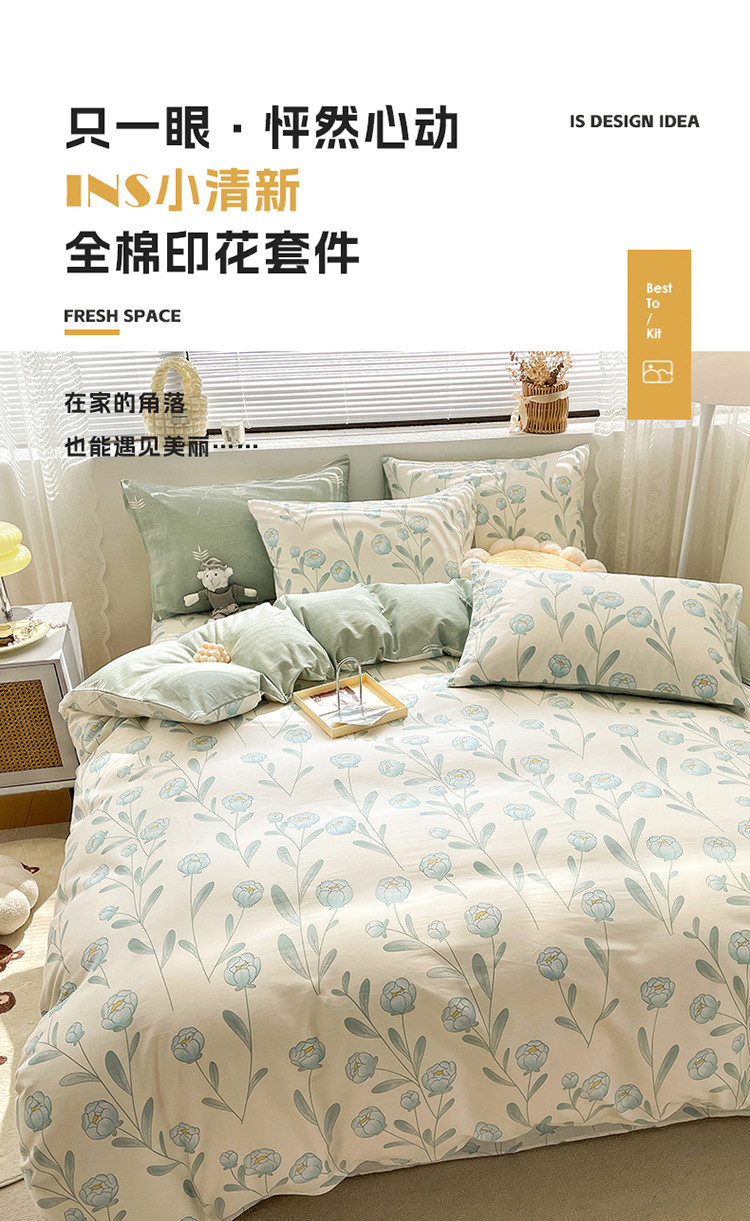商品名称:绵庭 2023新款12868全棉ins小清新印花四件套 水榭听香