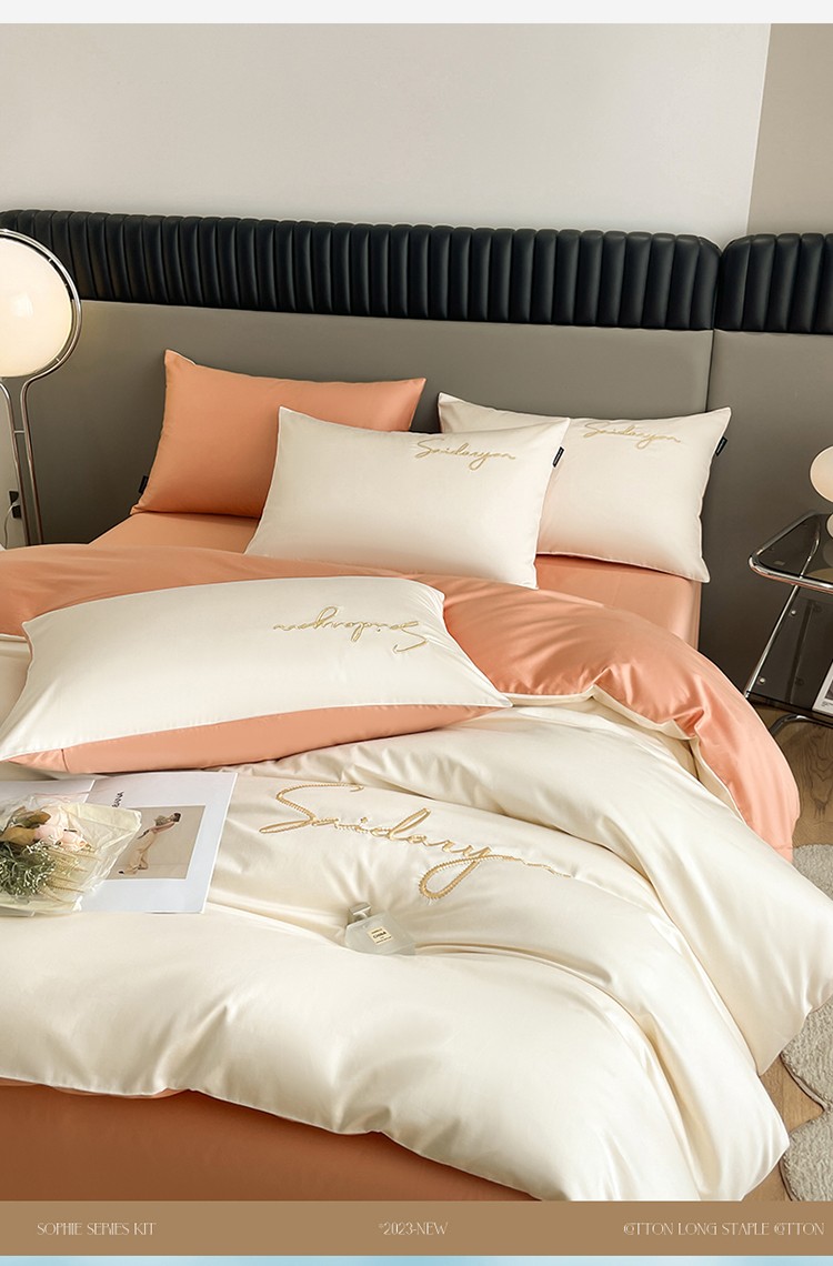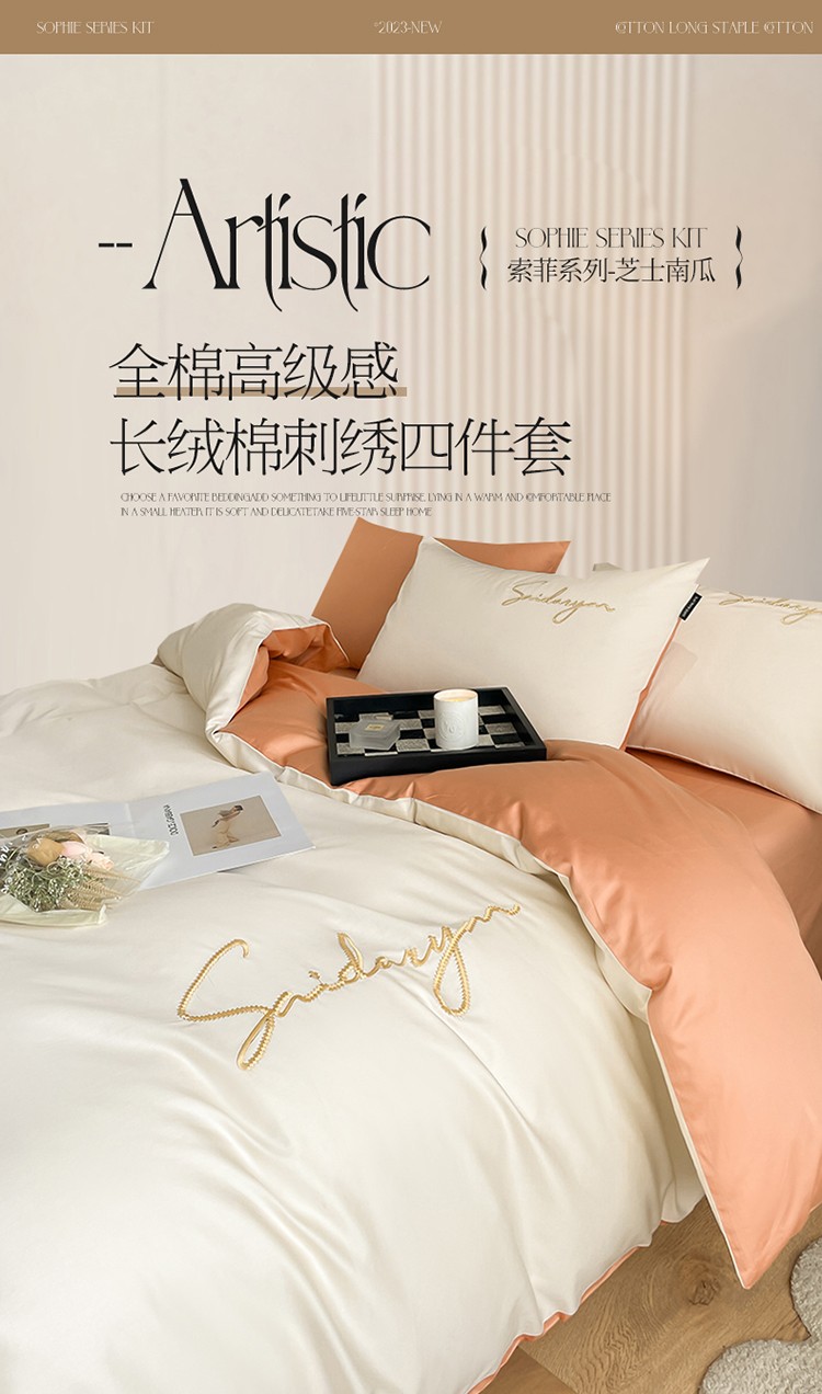 蓝米卡夫 2024全棉高级感长绒棉刺绣-索菲-单被套 索菲-芝士南瓜