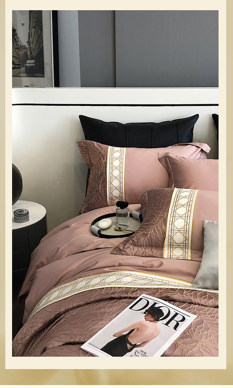 商品名称:雪夫人 2023年 罗浮宫印象100支高精密浮雕四件套 金枝玉叶-烟粉色