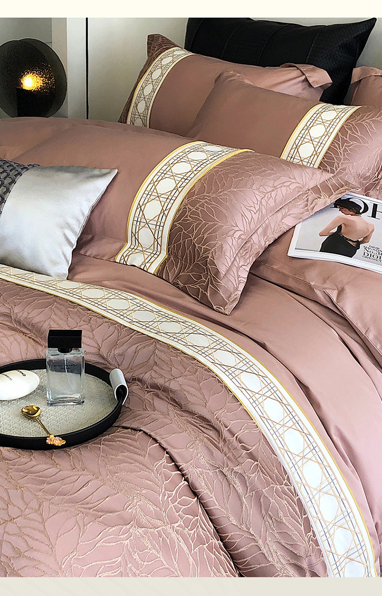 雪夫人 2023年 罗浮宫印象100支高精密浮雕四件套 金枝玉叶-烟粉色