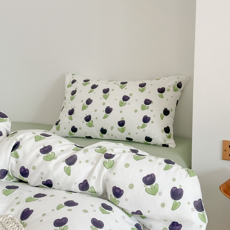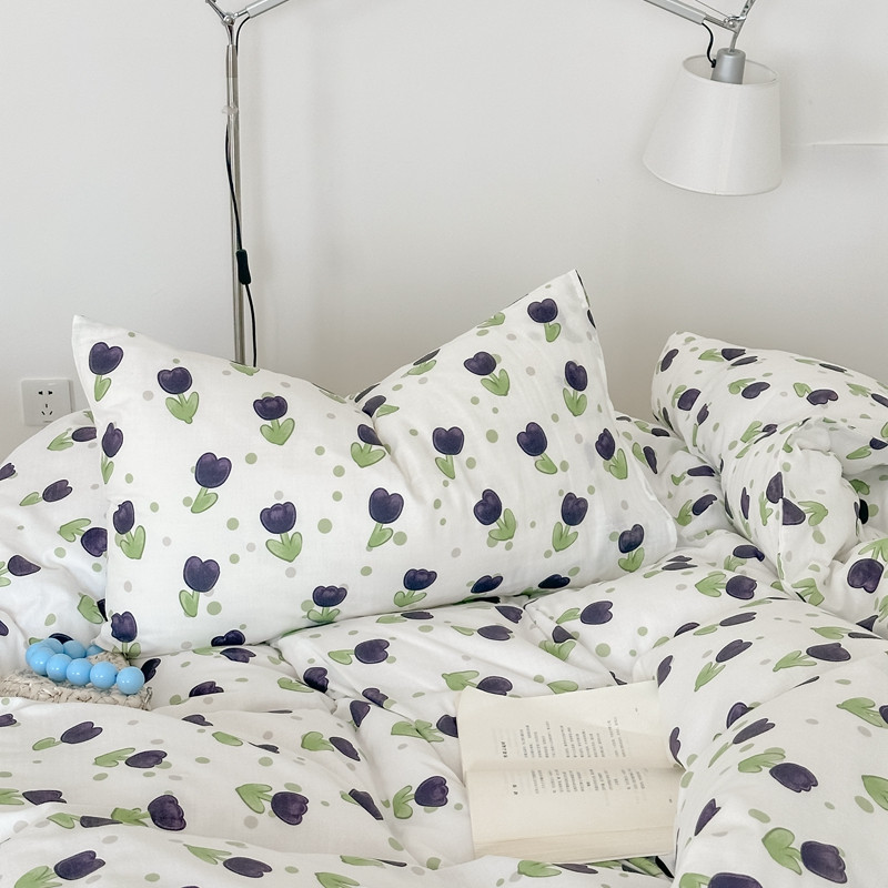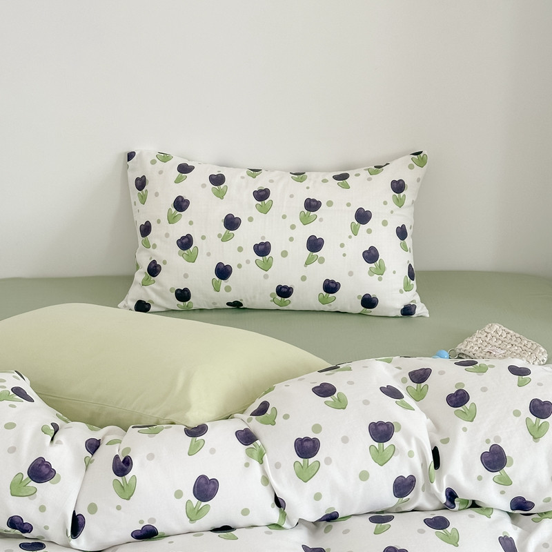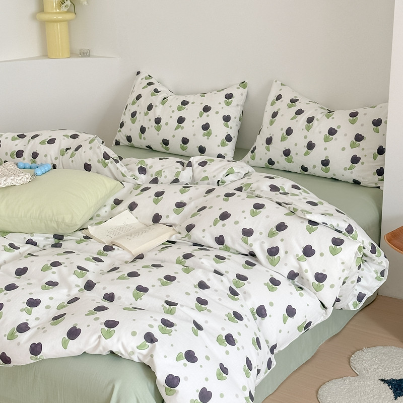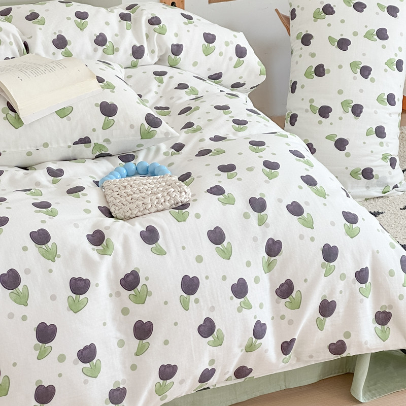 商品名称:黛馨 2025新款A类小清新双层纱四件套(实拍)郁金香绿