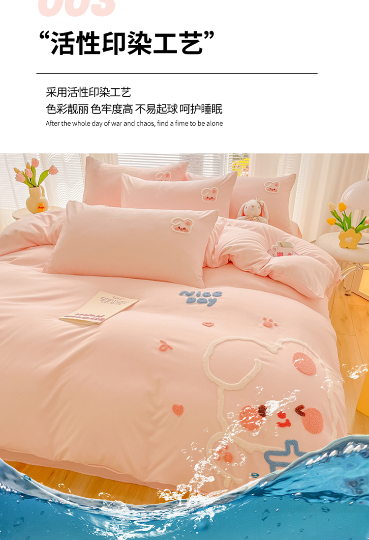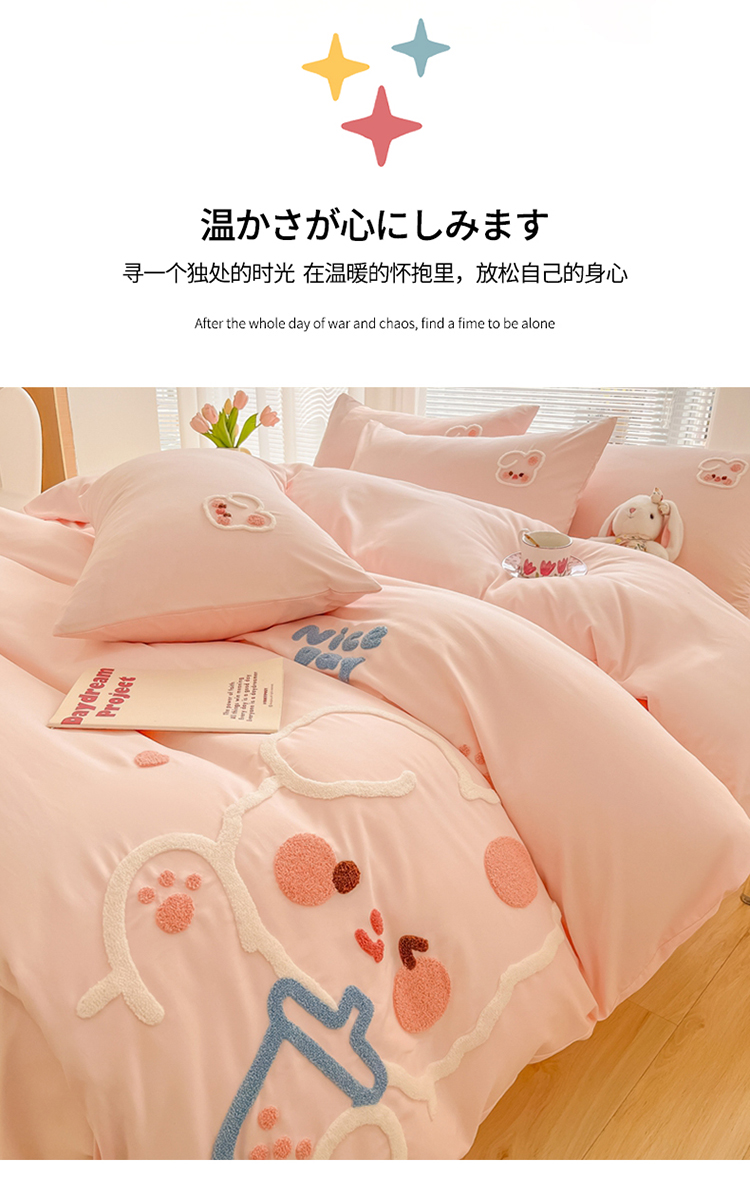 当前位置: 91家纺网 > 商品网购 > 床品套件 > 四件套 > 化纤普通四件套 > 我心 2023新款彩虹熊水洗棉毛巾绣系列四件套 奶茶兔-浅玉