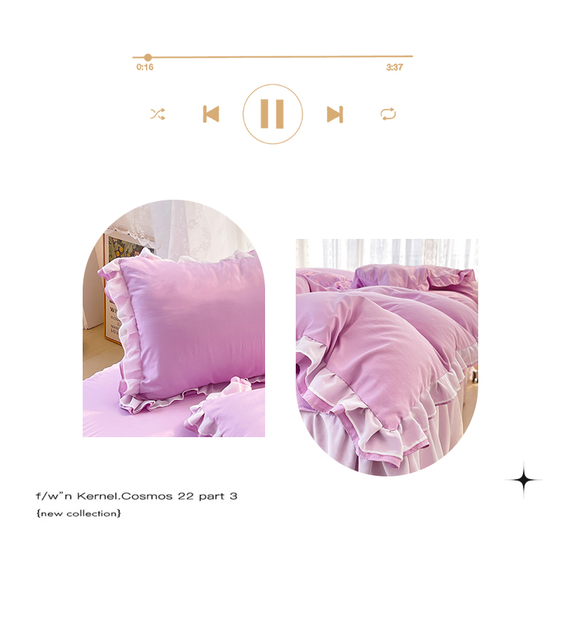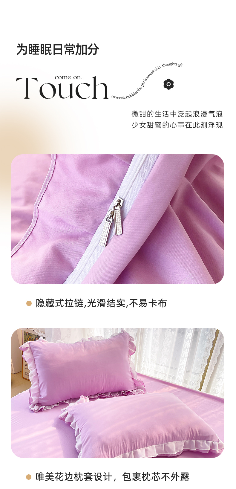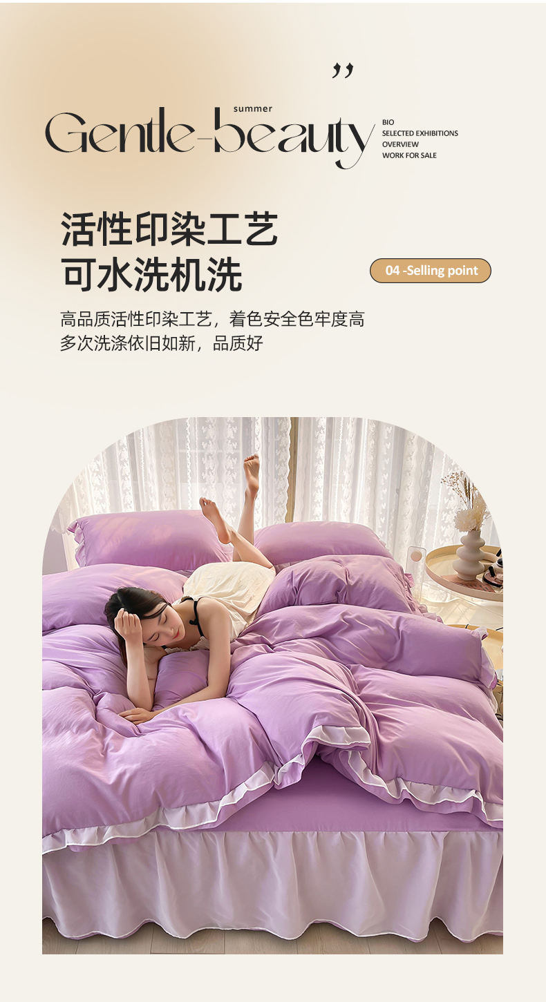 当前位置: 91家纺网 > 商品网购 > 床品套件 > 四件套 > 水洗棉四件套 > 简爱 2025新款水洗棉雪纺双层花边四件套 优雅紫