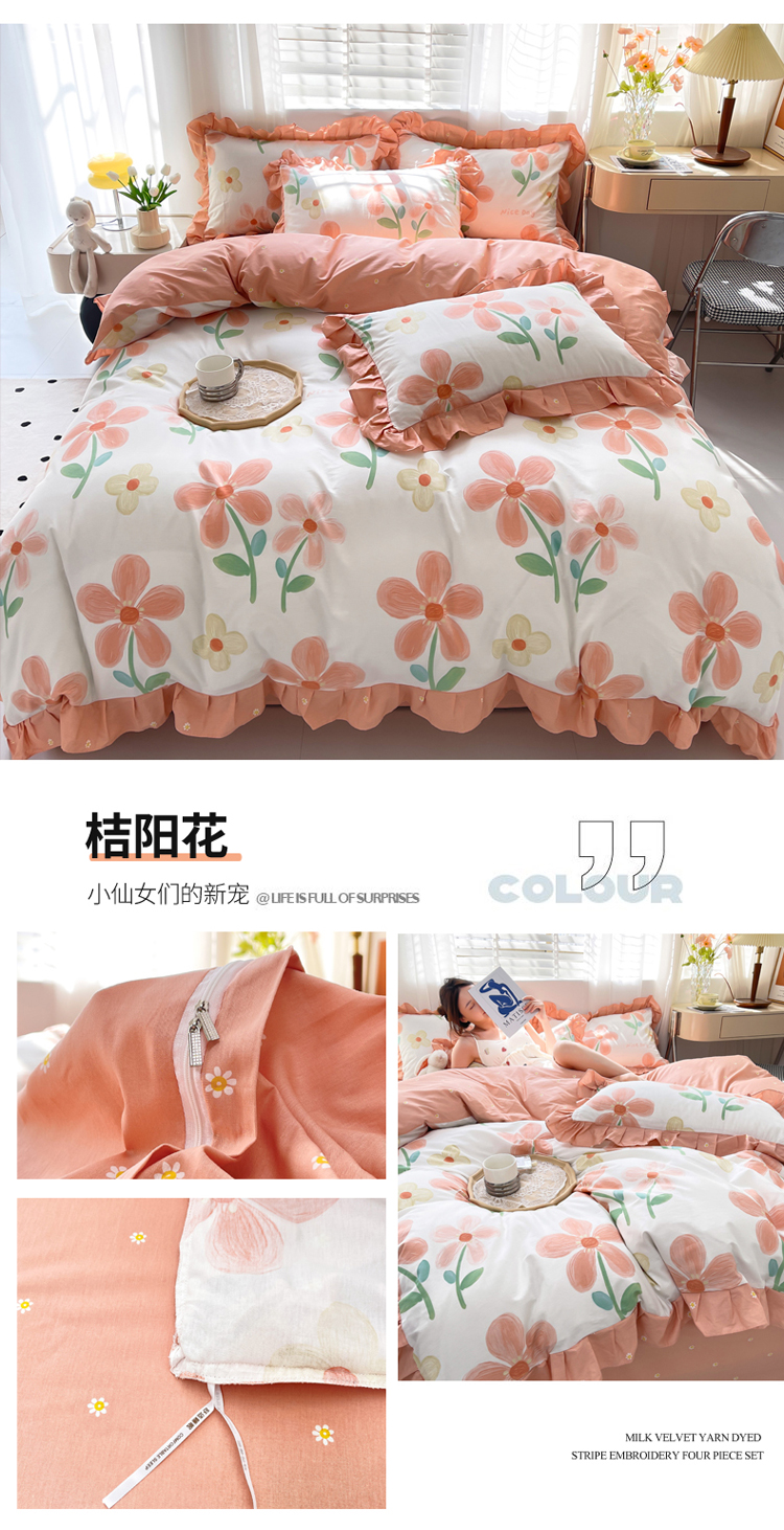 商品名称:简爱 2025新款13372韩版纯棉花边四件套 桔阳花