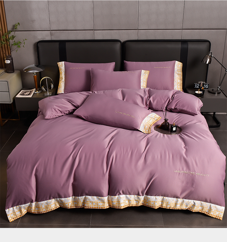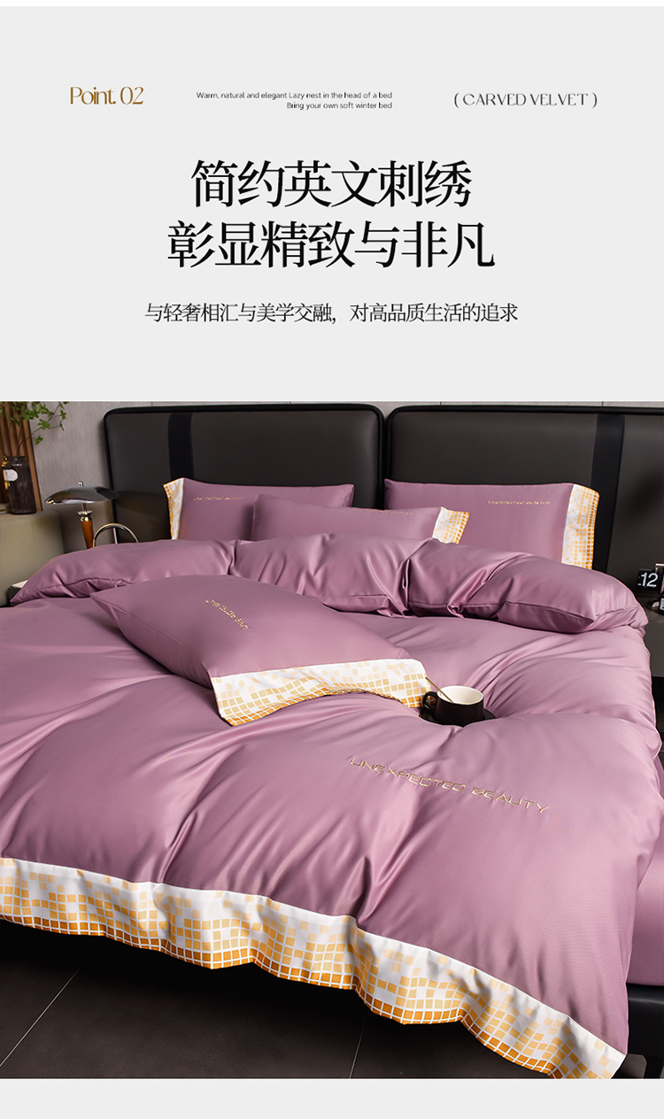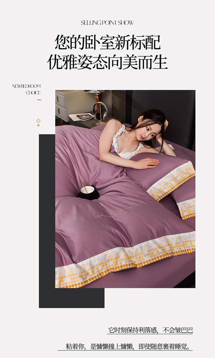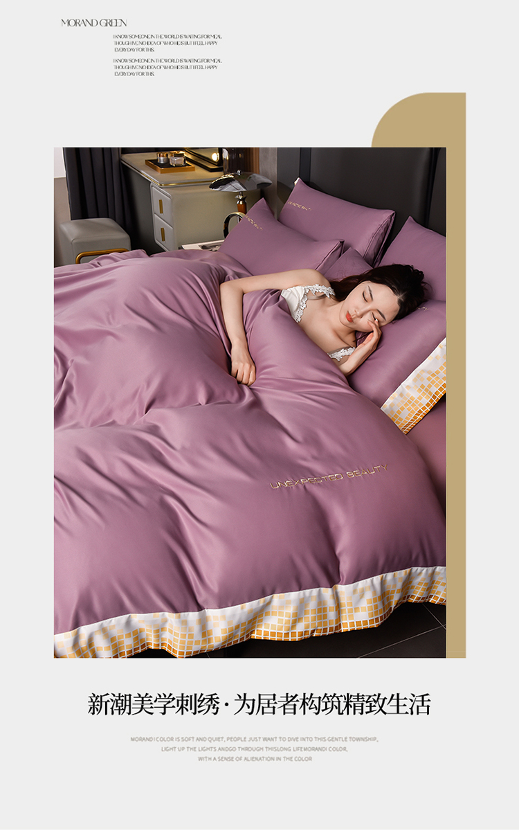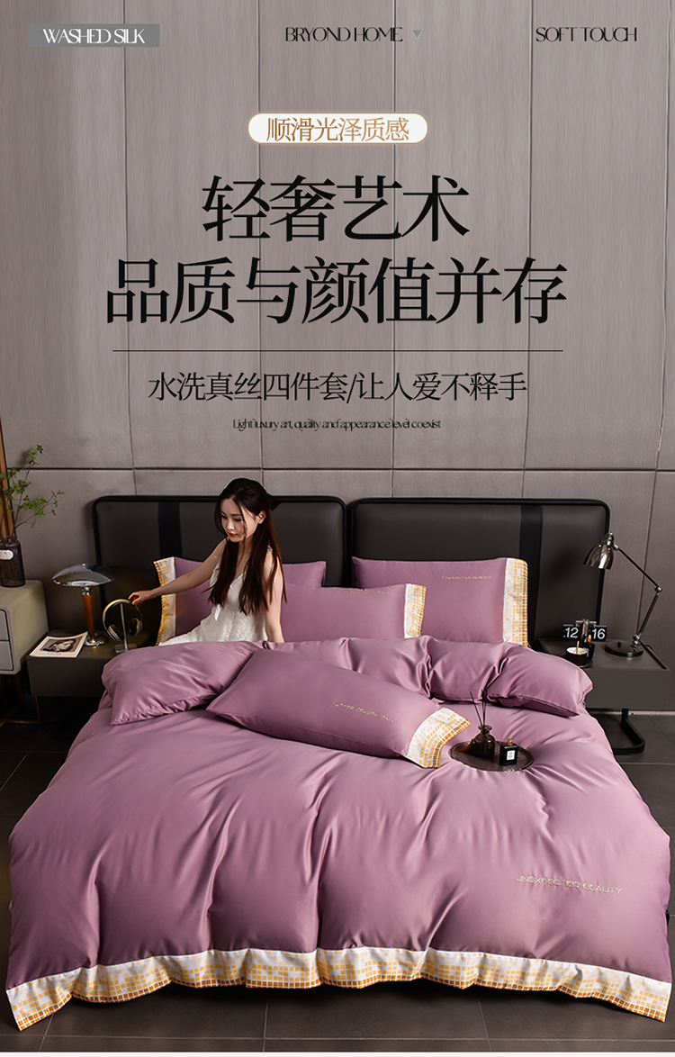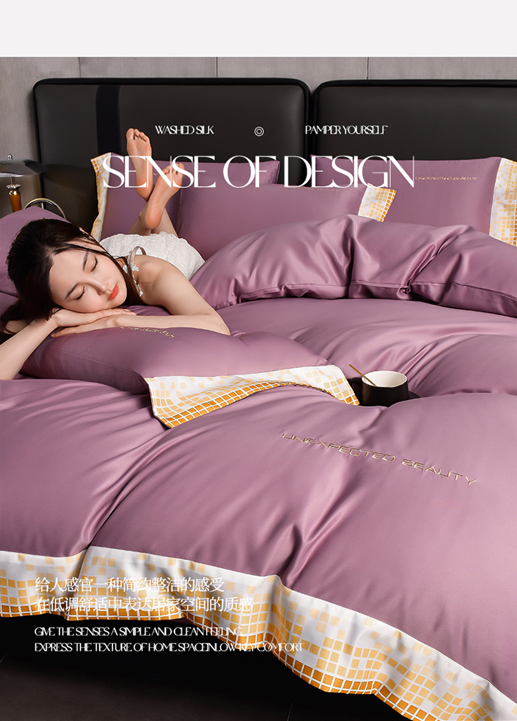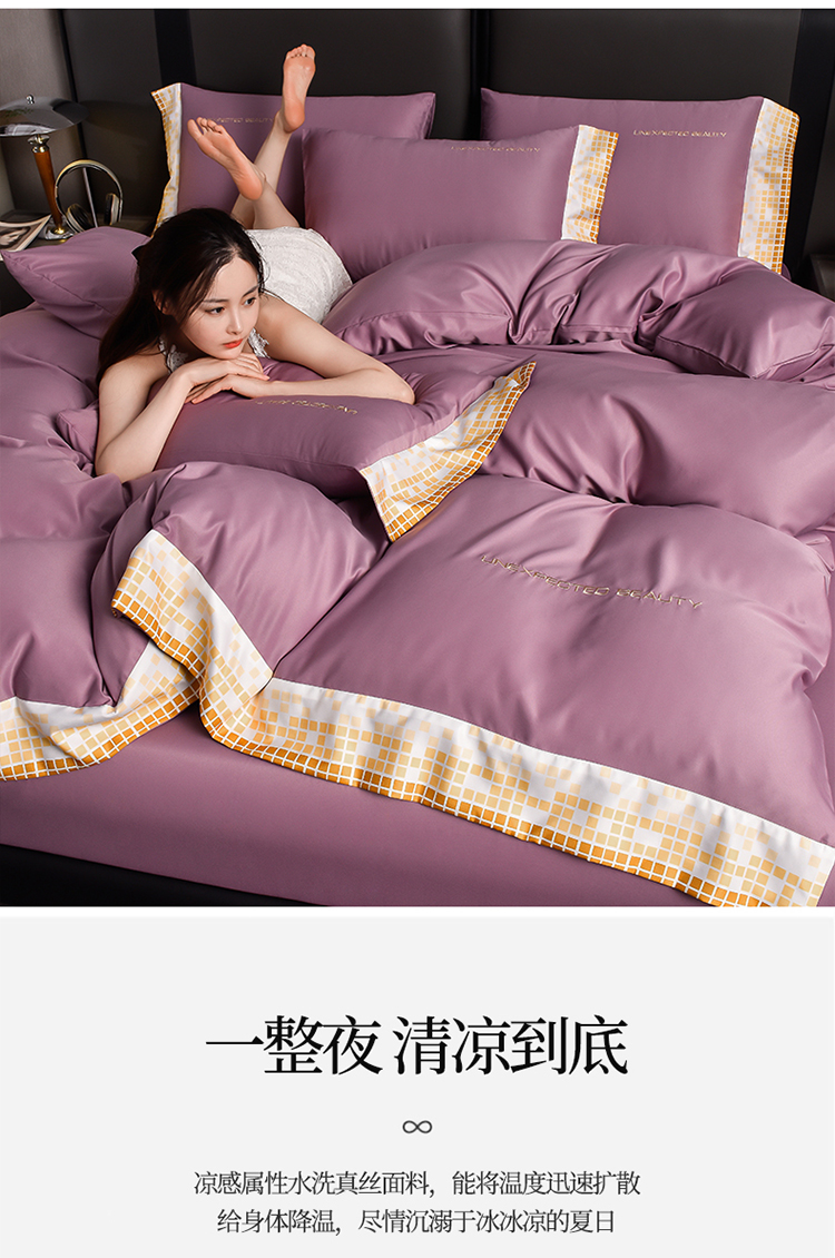 米奈 2024新款A类水洗真丝四件套-星光 优雅紫