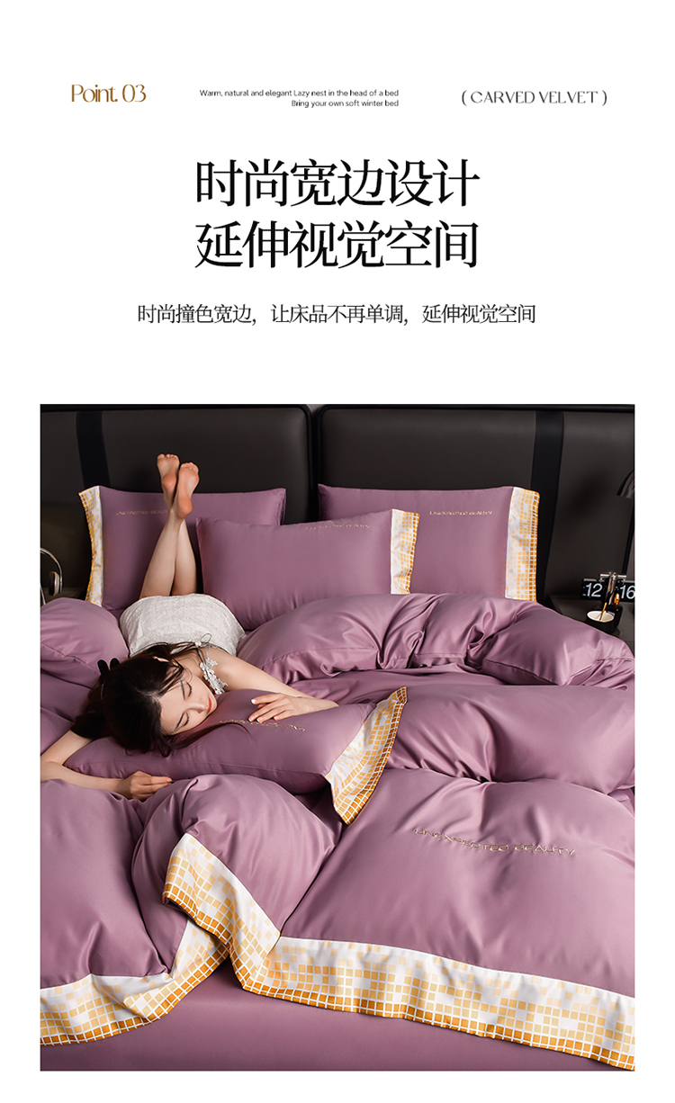 (总)米奈家居 2025新款贴边拼角100支新疆长绒棉四件套-诺拉,冰川蓝,豆蔻紫,落霞粉,奶杏棕,山茶红,松雾灰