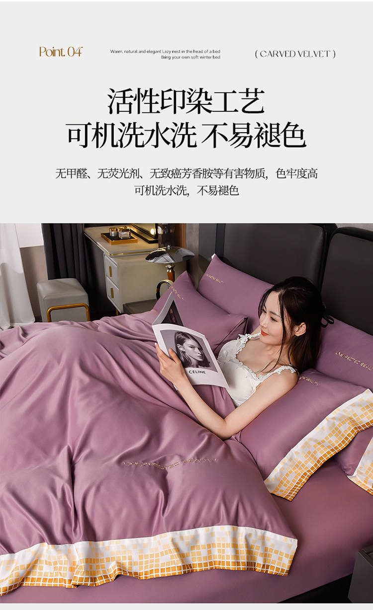 商品名称:米奈 2024新款A类水洗真丝四件套-星光 优雅紫