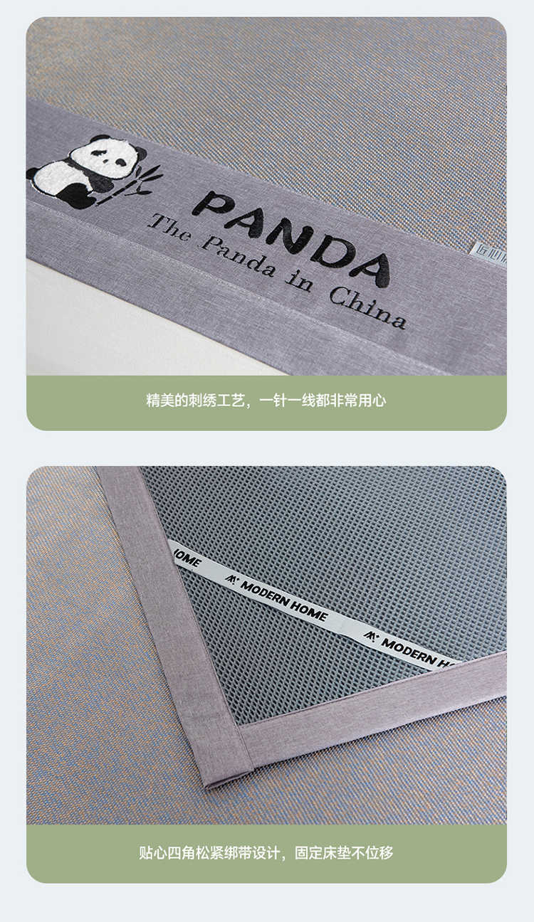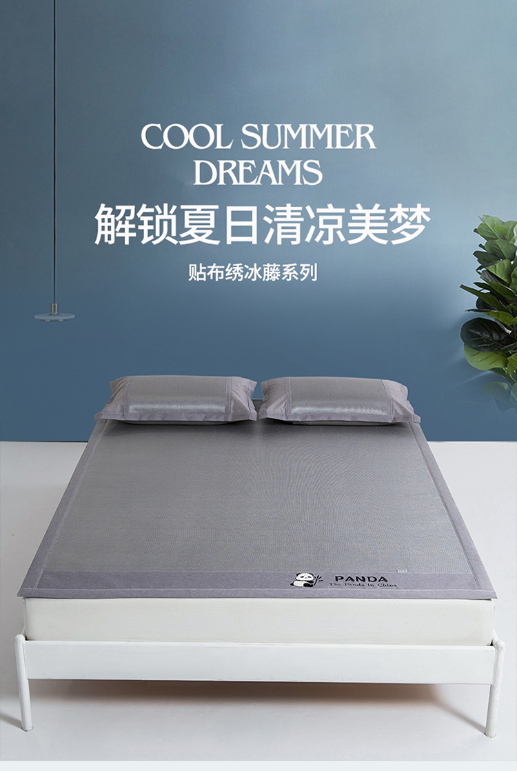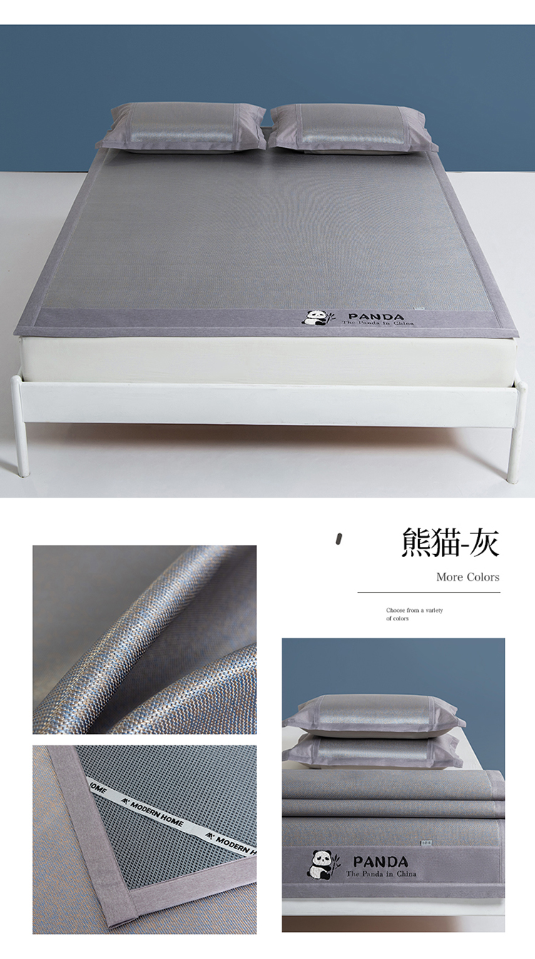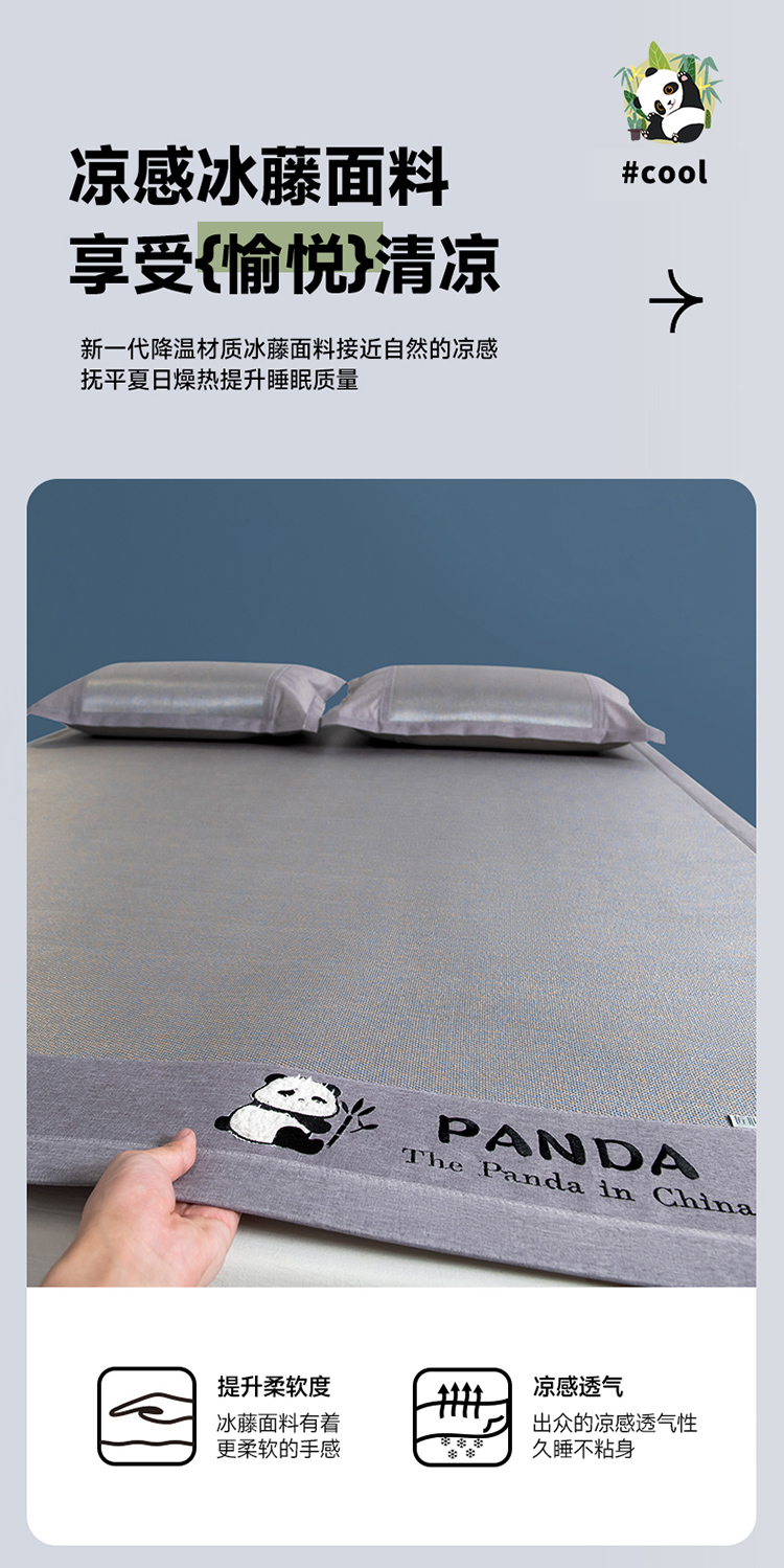 (总)全季家居 2025新款A类抗菌防螨贪吃熊猫系列冰藤席凉席席子,金咖 床席,水绿 床席,银灰 床席,金咖 床笠,水绿 床笠,银灰 床笠
