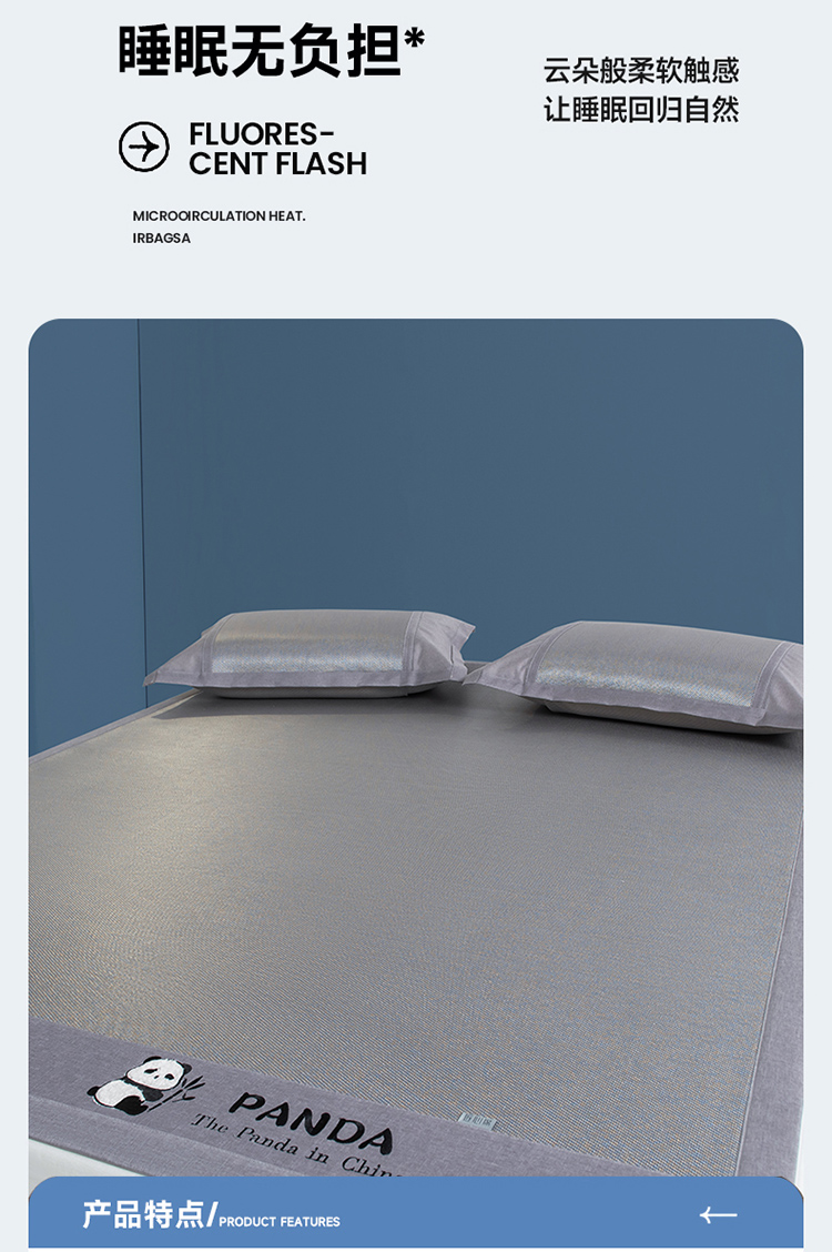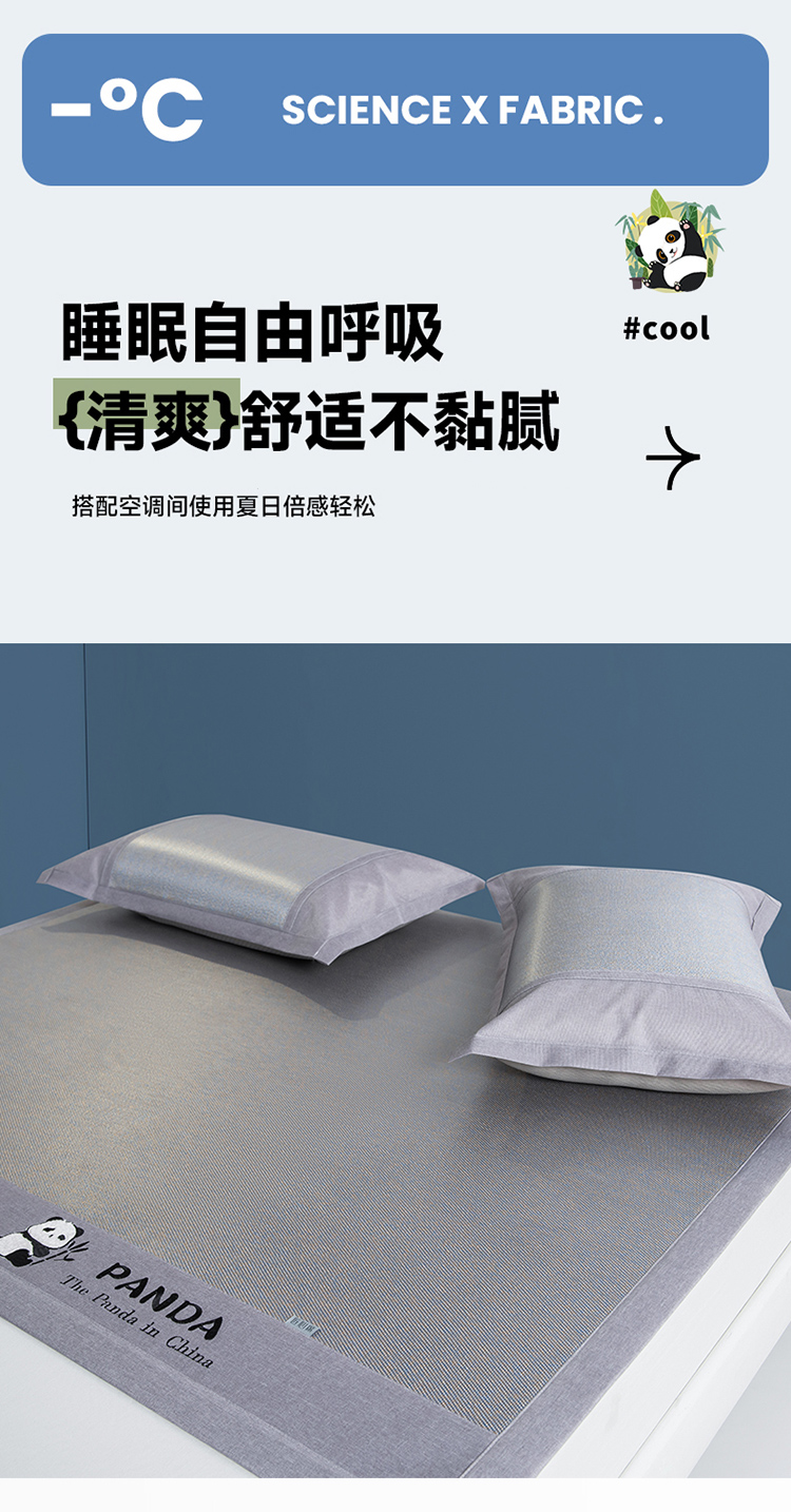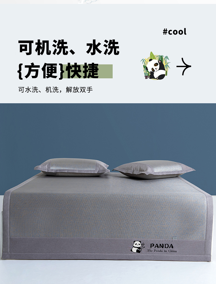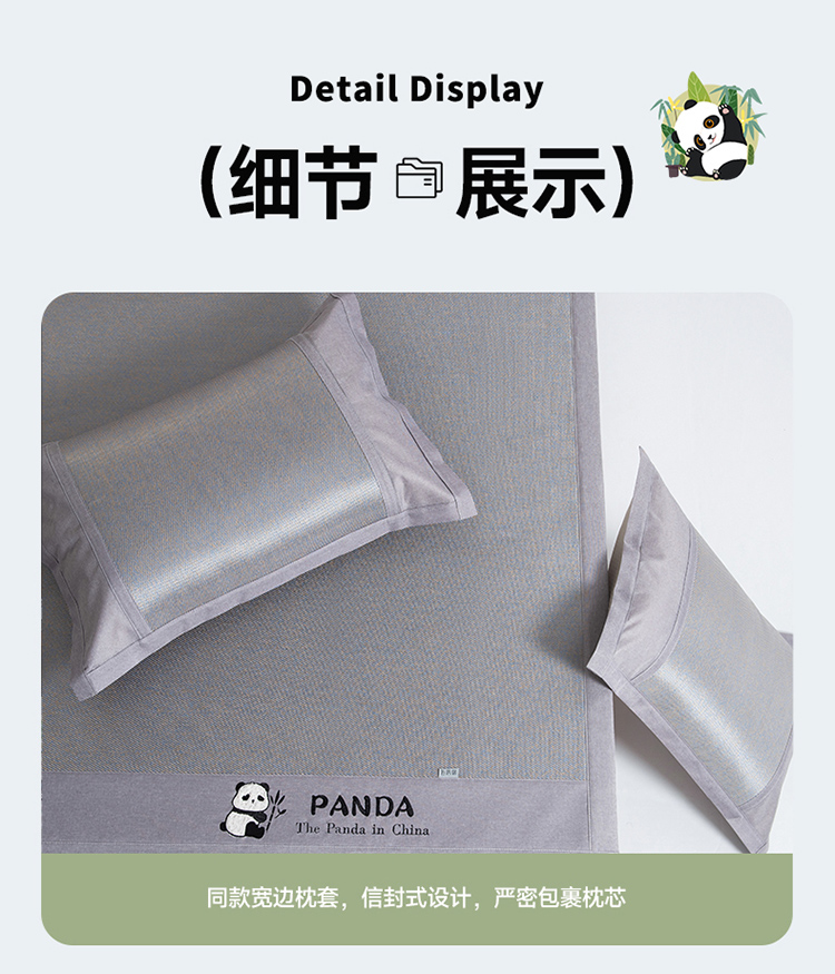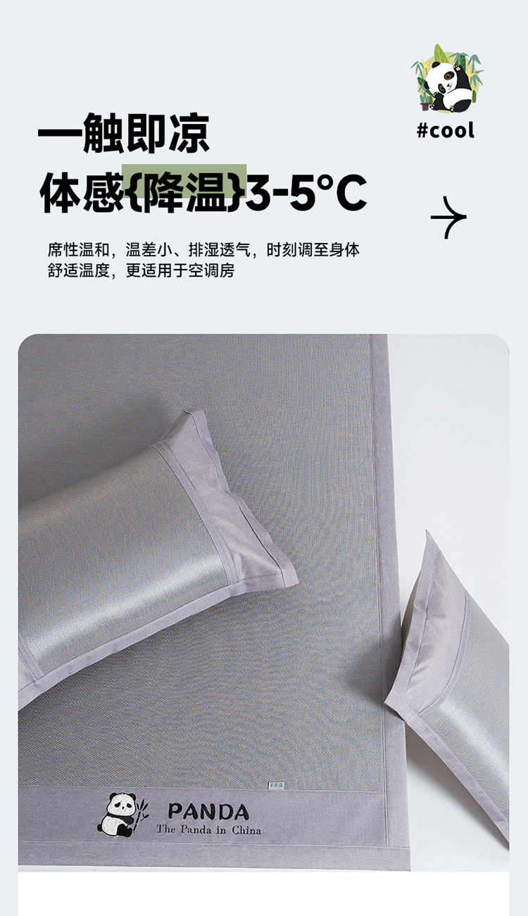 (总)全季家居 2025新款A类抗菌防螨贪吃熊猫系列冰藤席凉席席子,金咖 床席,水绿 床席,银灰 床席,金咖 床笠,水绿 床笠,银灰 床笠