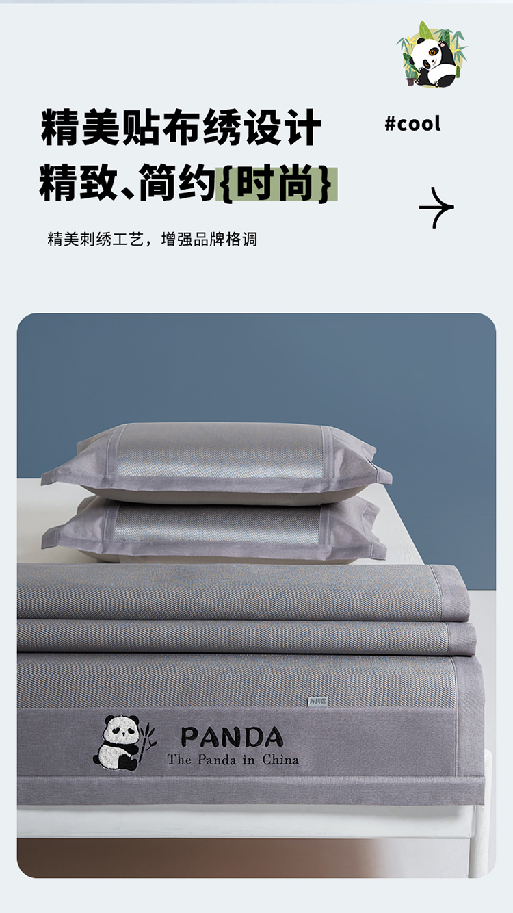 商品名称:全季 2023新款全季家居中国风贴布绣冰藤席 熊猫-灰