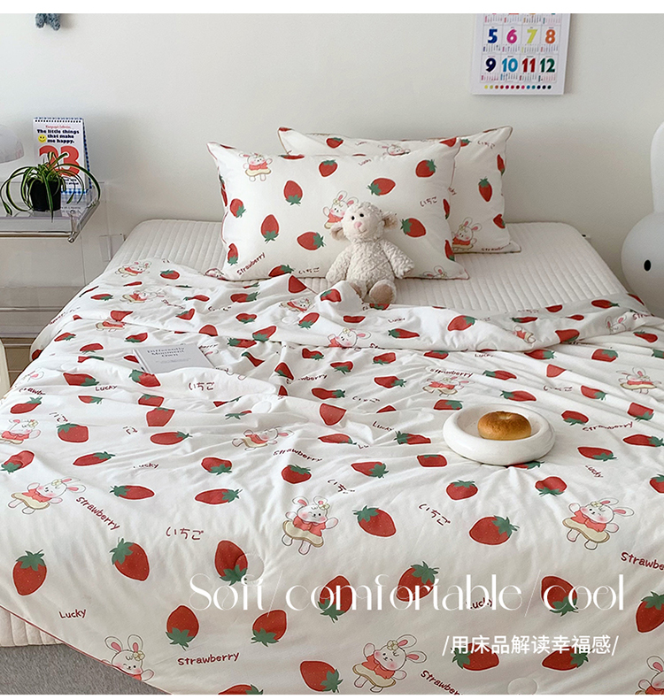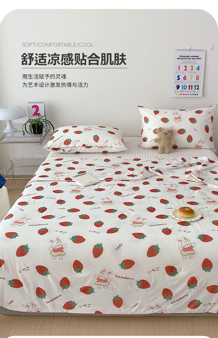 全季 2023新款家居氨纶凉感卡通小清新夏被 草莓甜兔