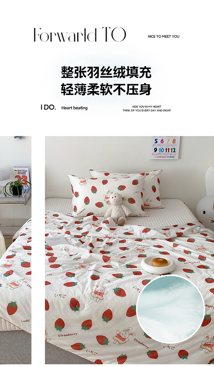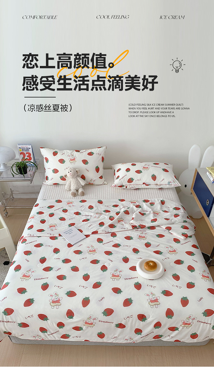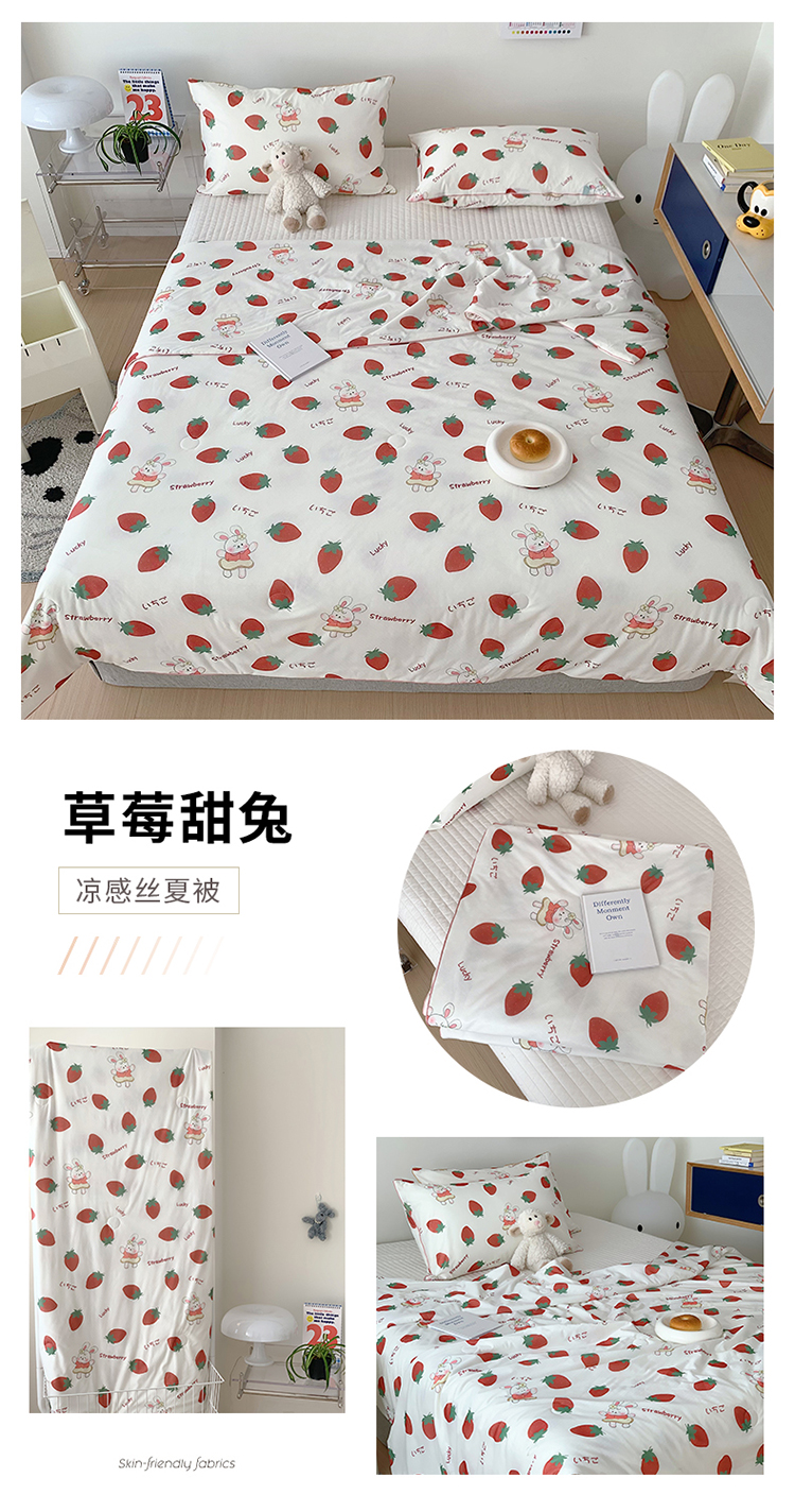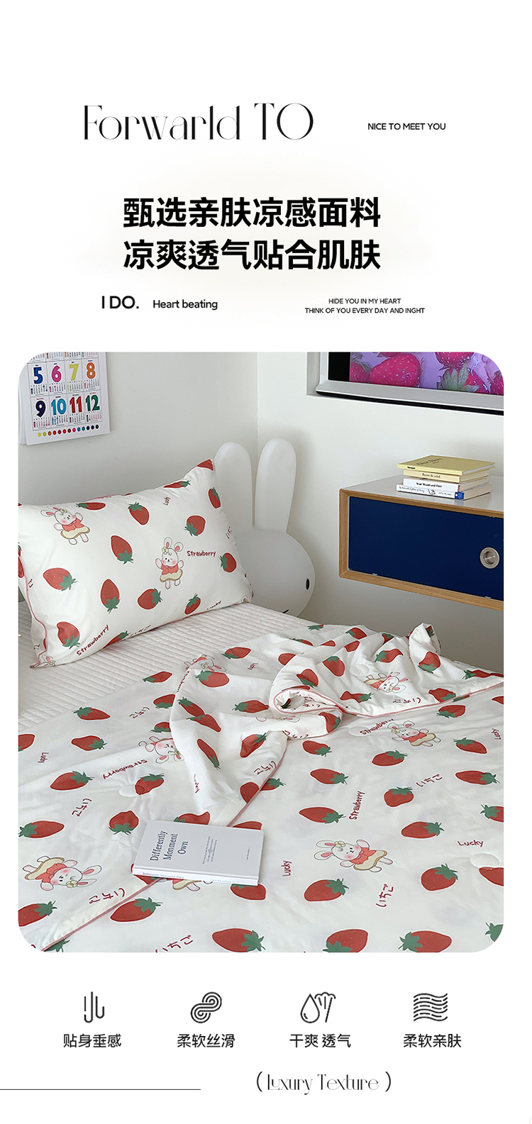 商品名称:全季 2023新款家居氨纶凉感卡通小清新夏被 草莓甜兔