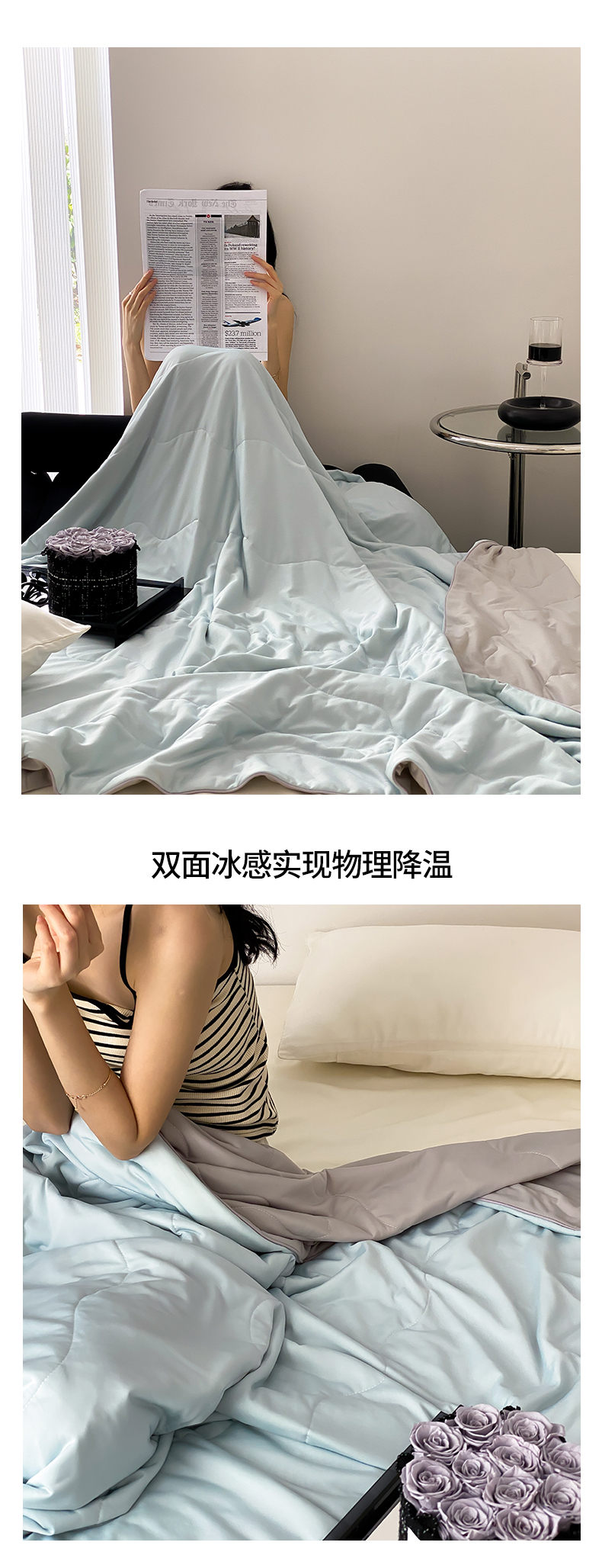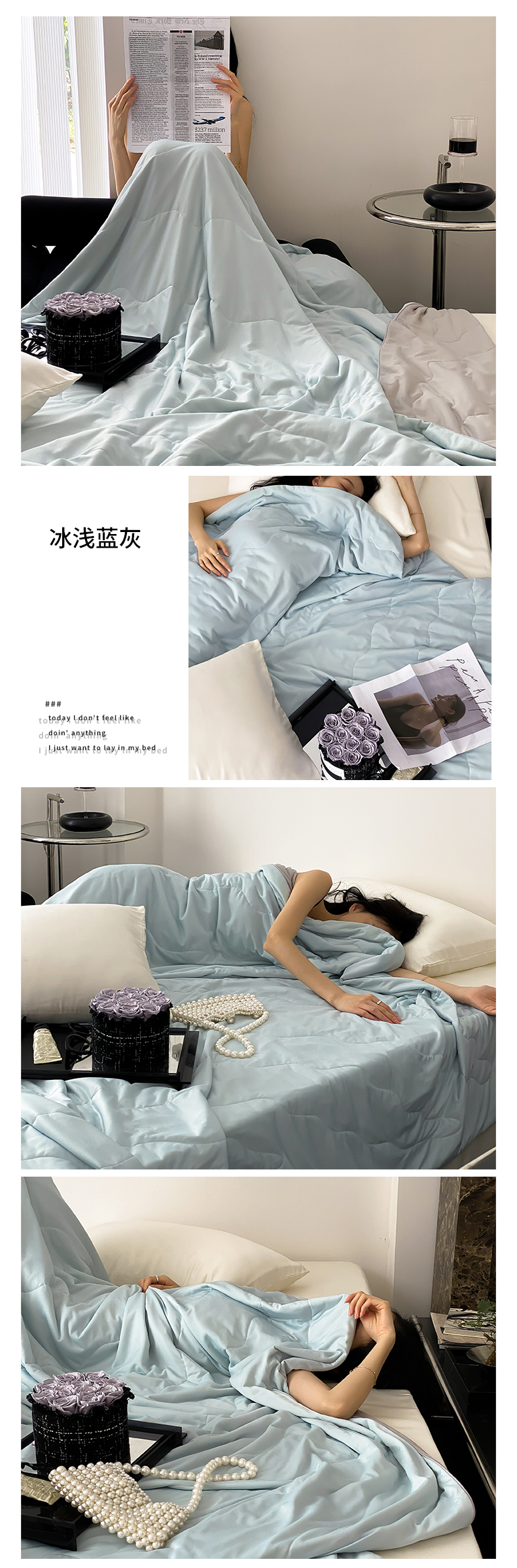 商品名称:西西家居 2023新款纯色凉感丝夏被 冰浅蓝灰