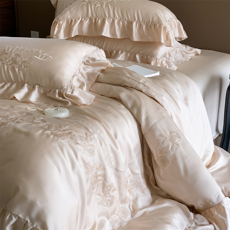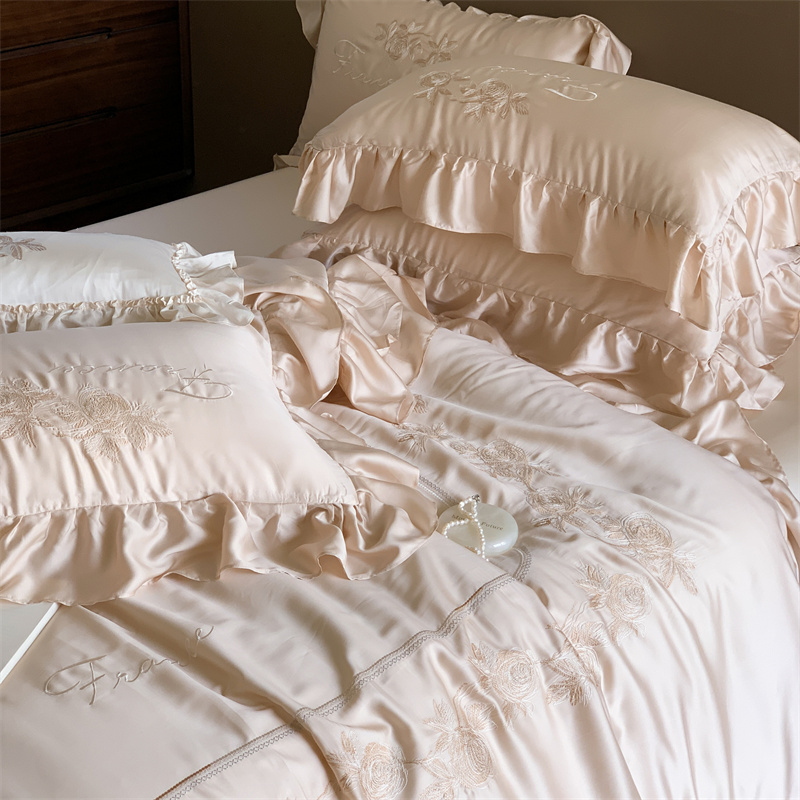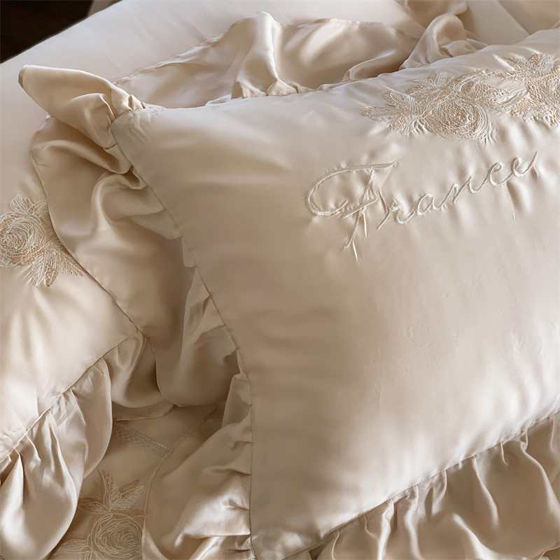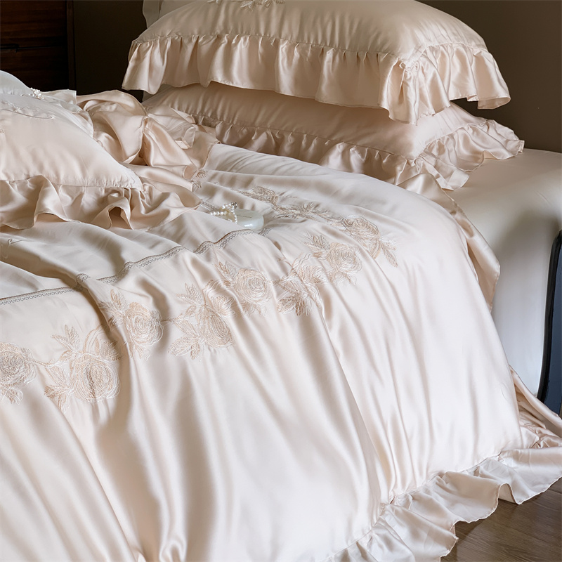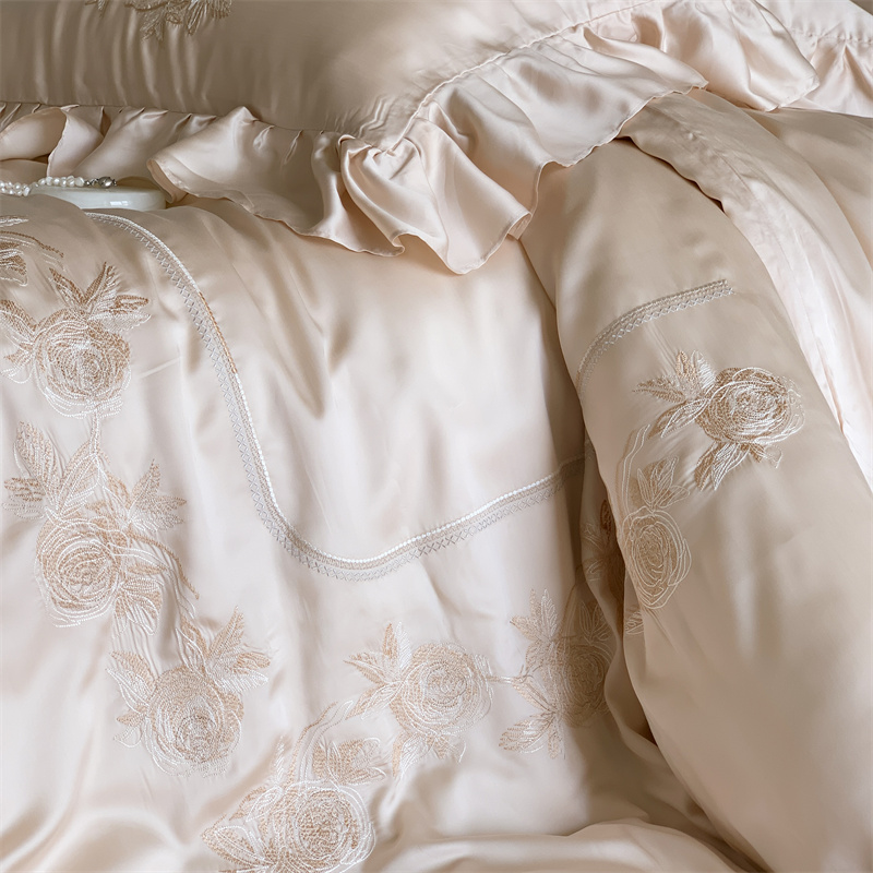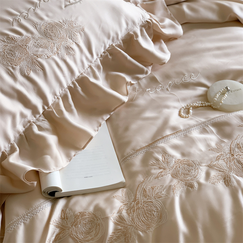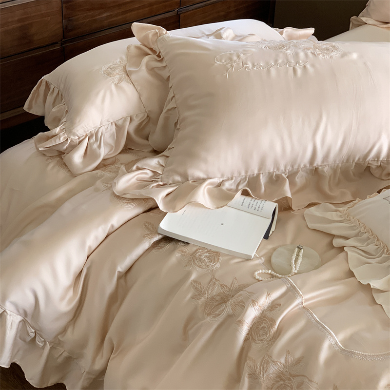 商品名称:若未 2023新款法式兰精天丝法式绣花四件套 芙洛娜-香槟