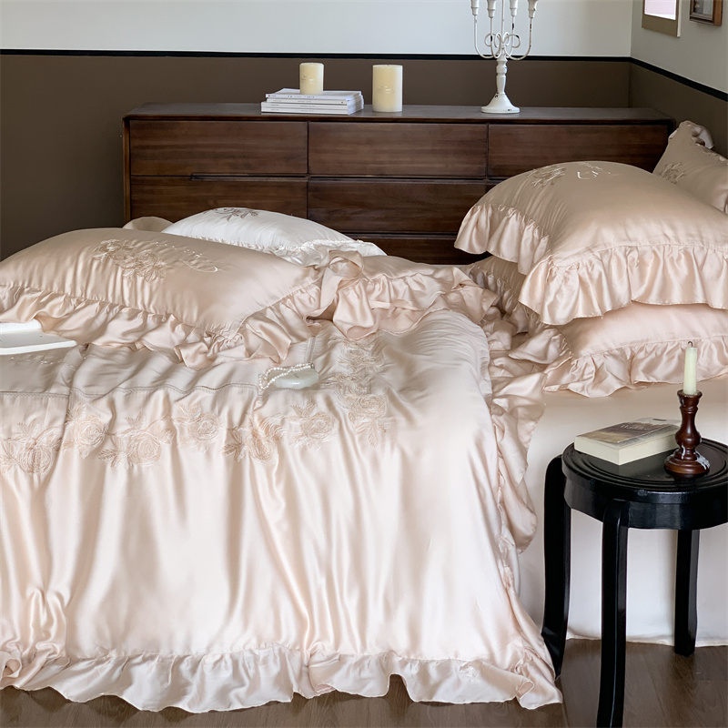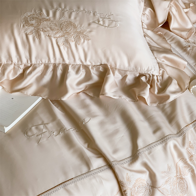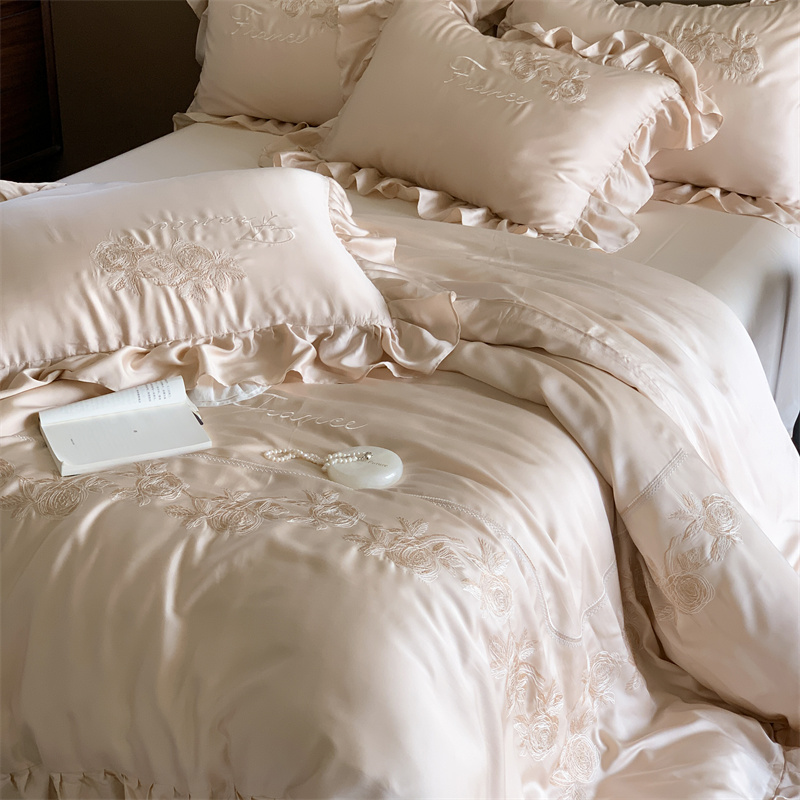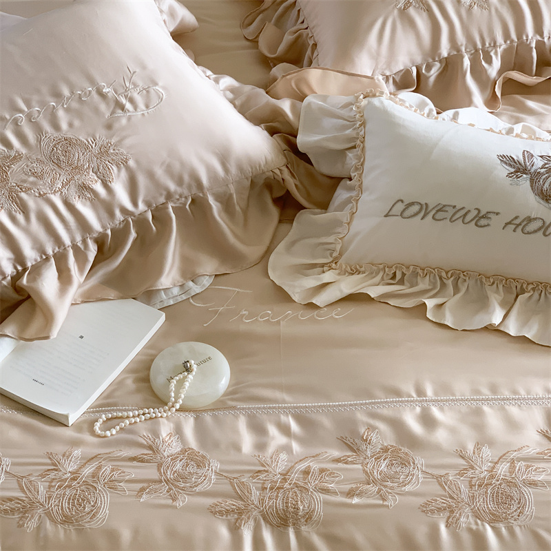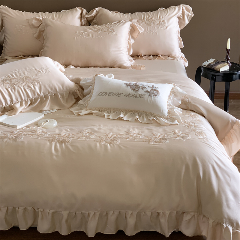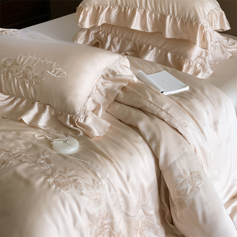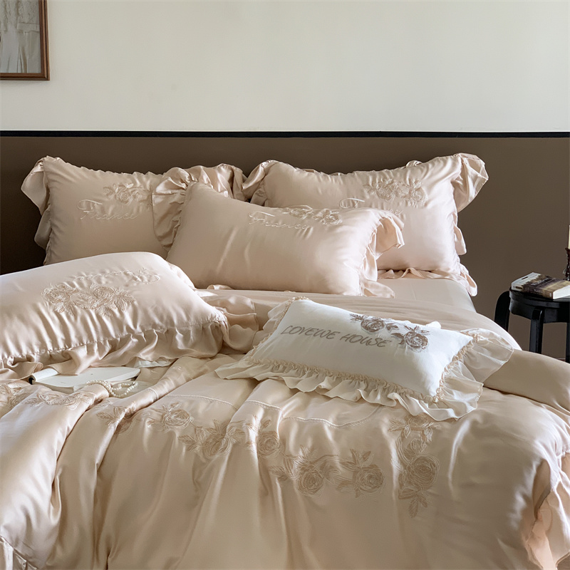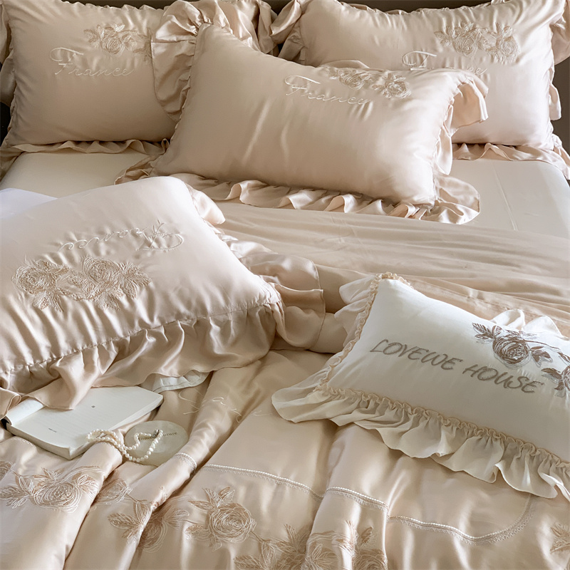 商品名称:若未 2023新款法式兰精天丝法式绣花四件套 芙洛娜-香槟
