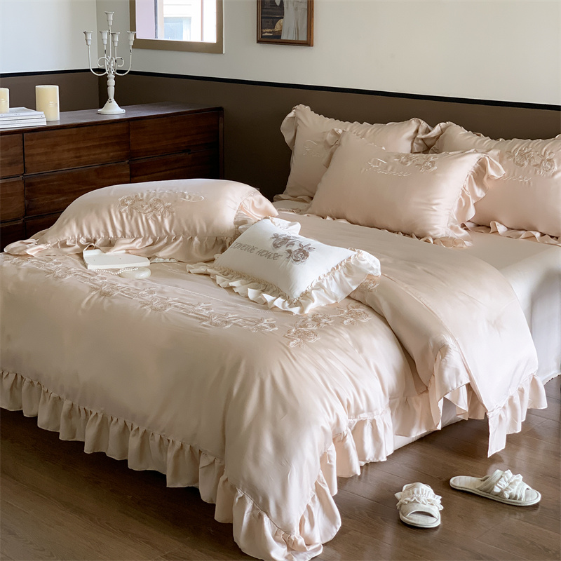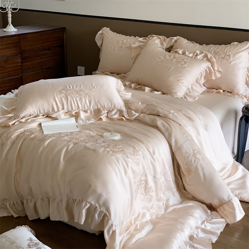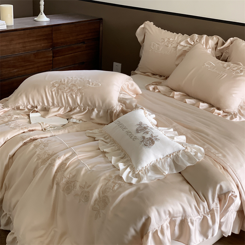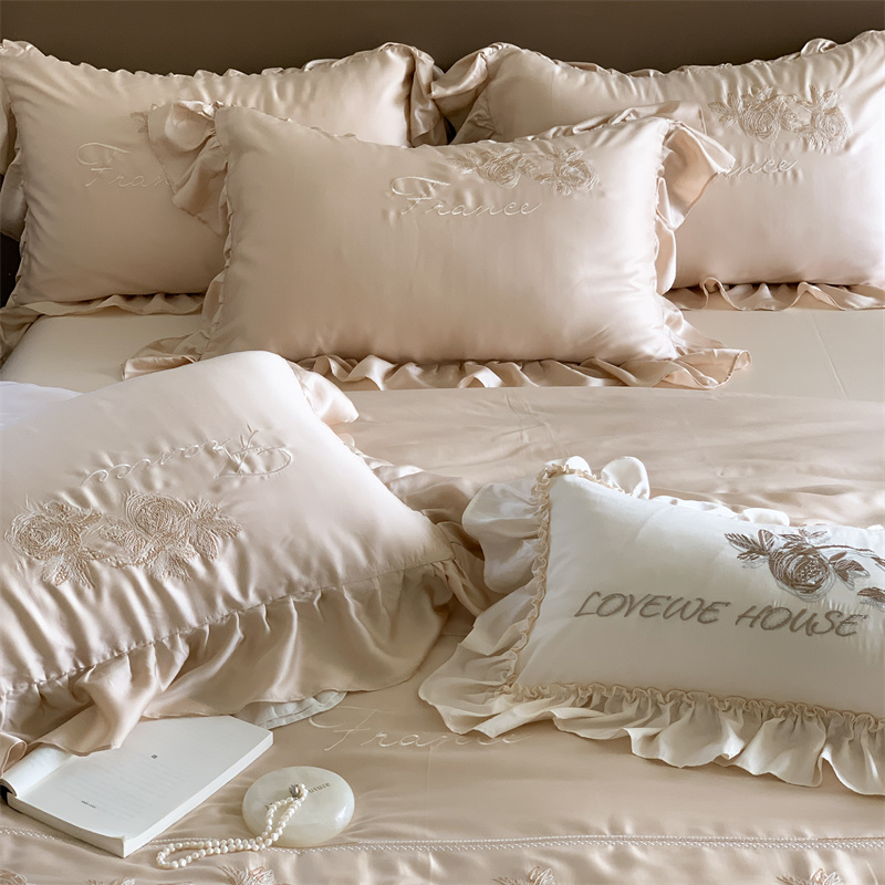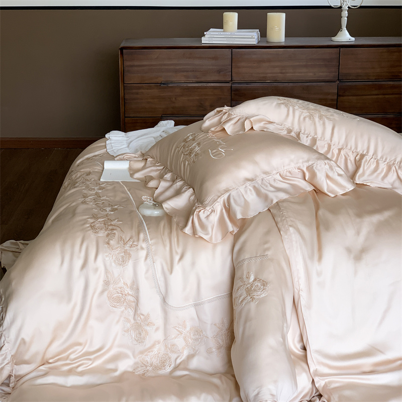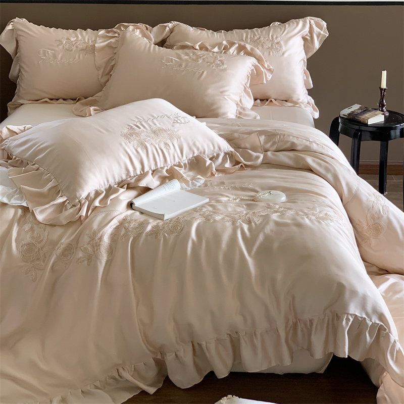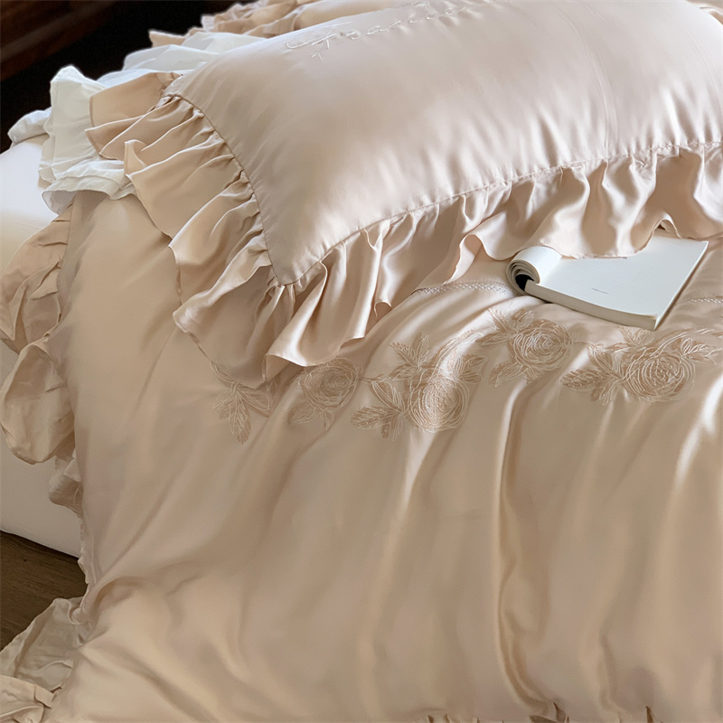 商品名称:若未 2023新款法式兰精天丝法式绣花四件套 芙洛娜-香槟