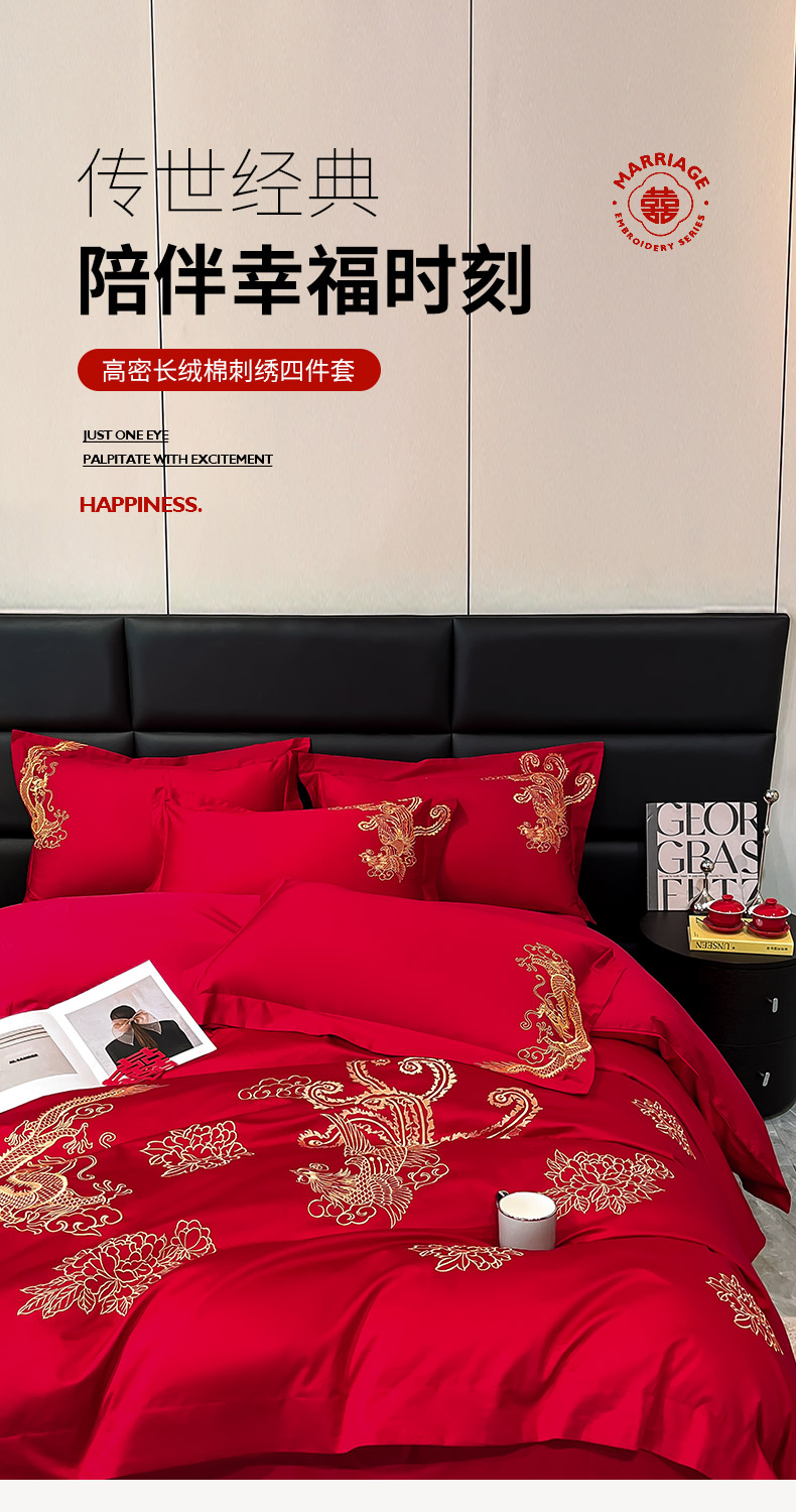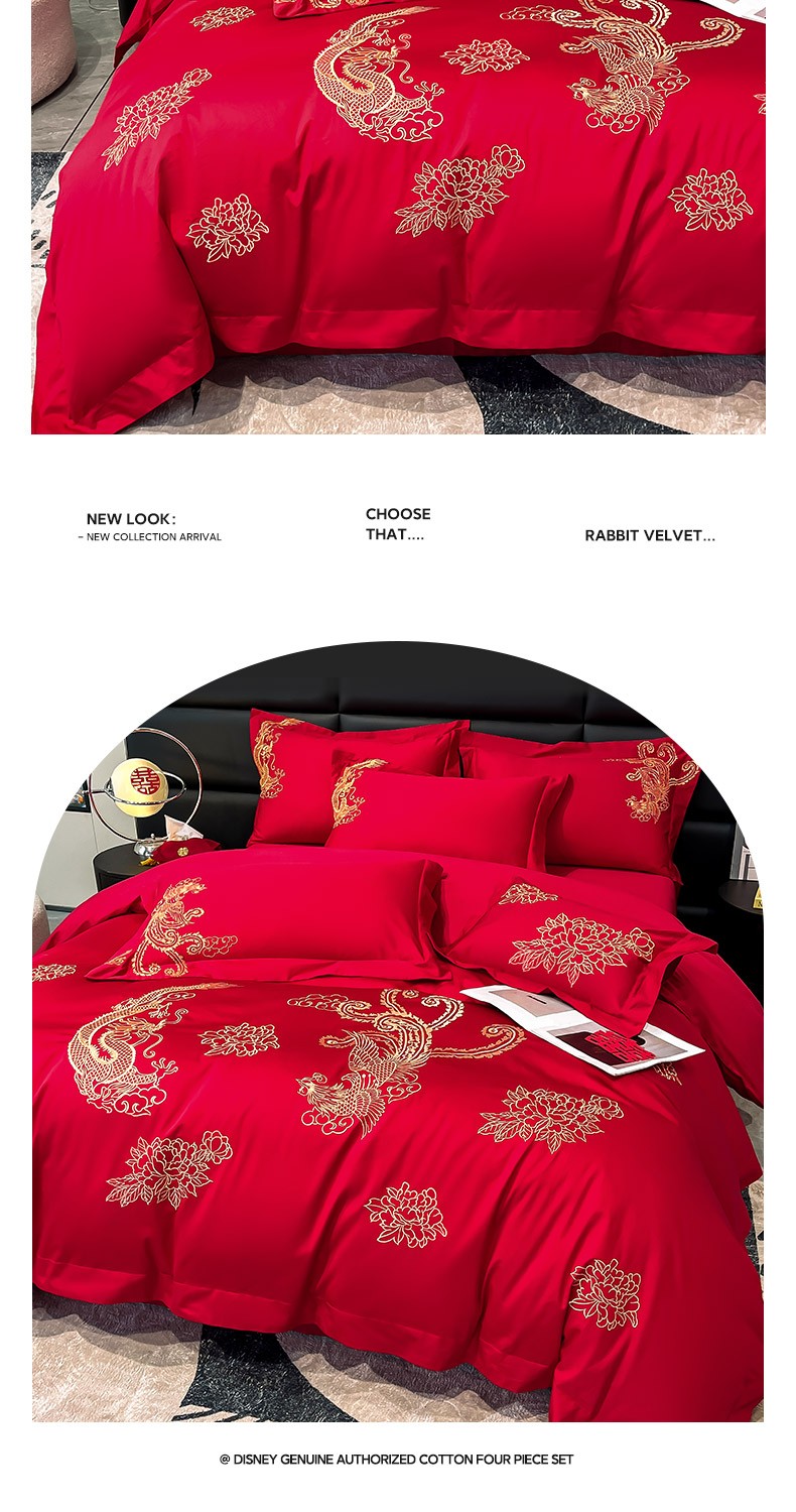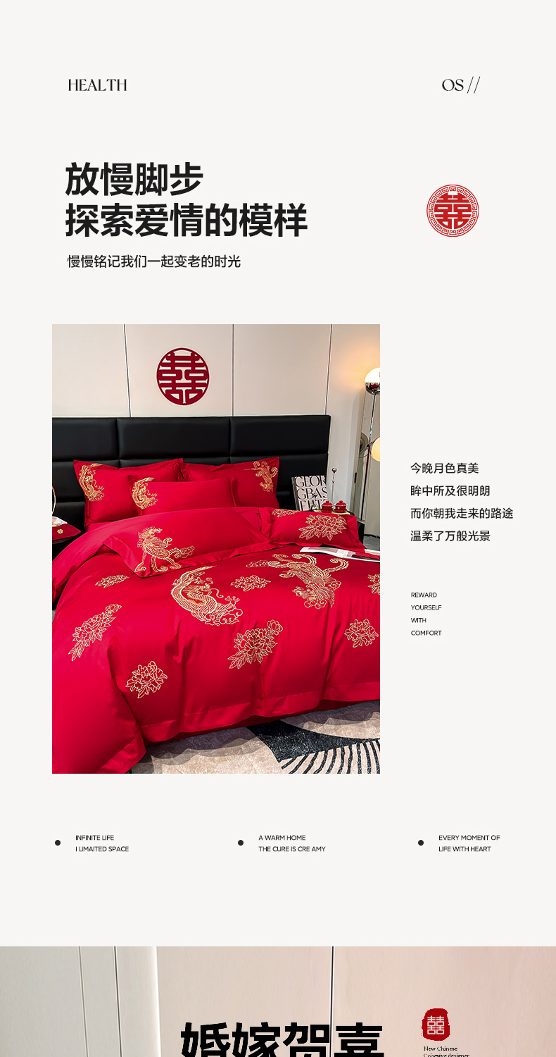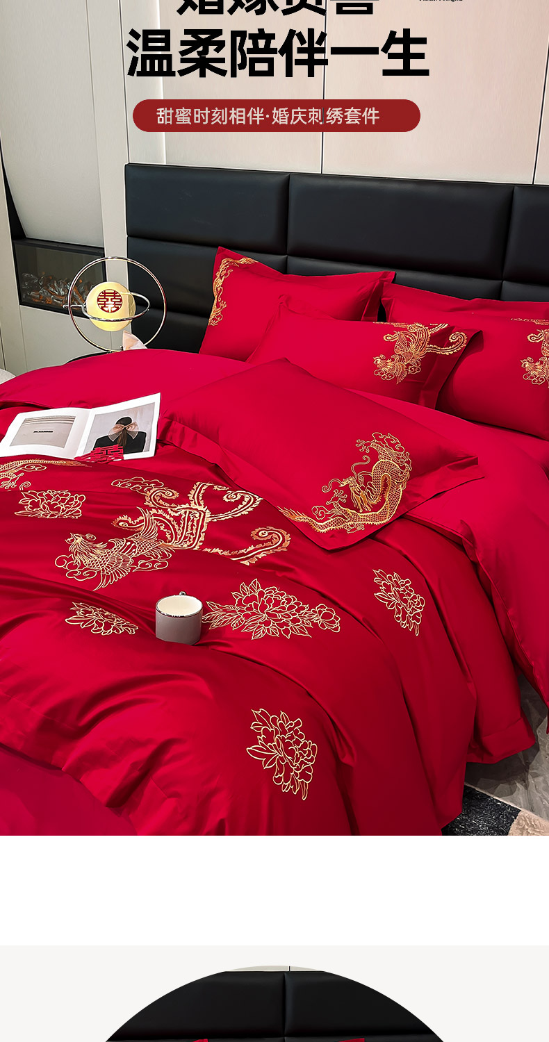 【婚庆爆款】100支长绒棉四件套全棉纯棉刺绣床单被套红色结婚床上用品,苹安喜乐-喜庆红,苹安喜乐-新妍玉,欢喜余生-喜庆红,欢喜余生-新妍玉