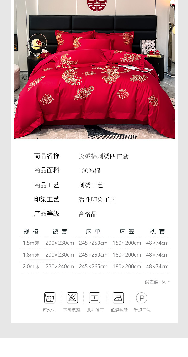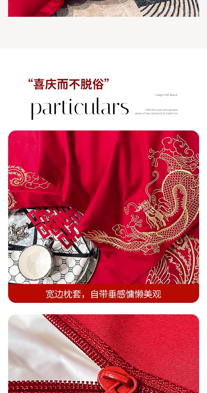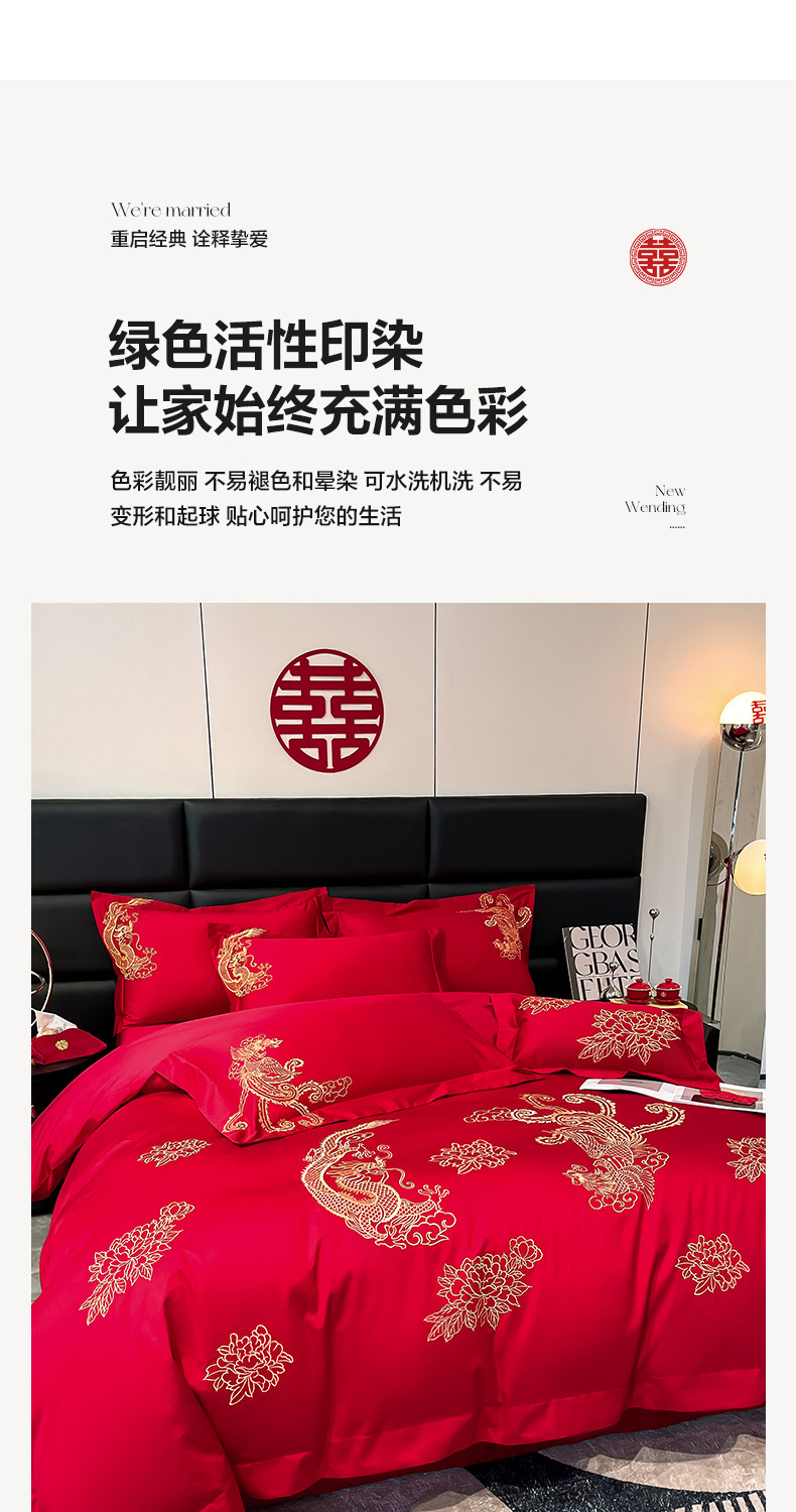 商品名称:2023新款结婚100支长绒棉四件套全棉纯棉新婚贡缎刺绣大红色床上用品