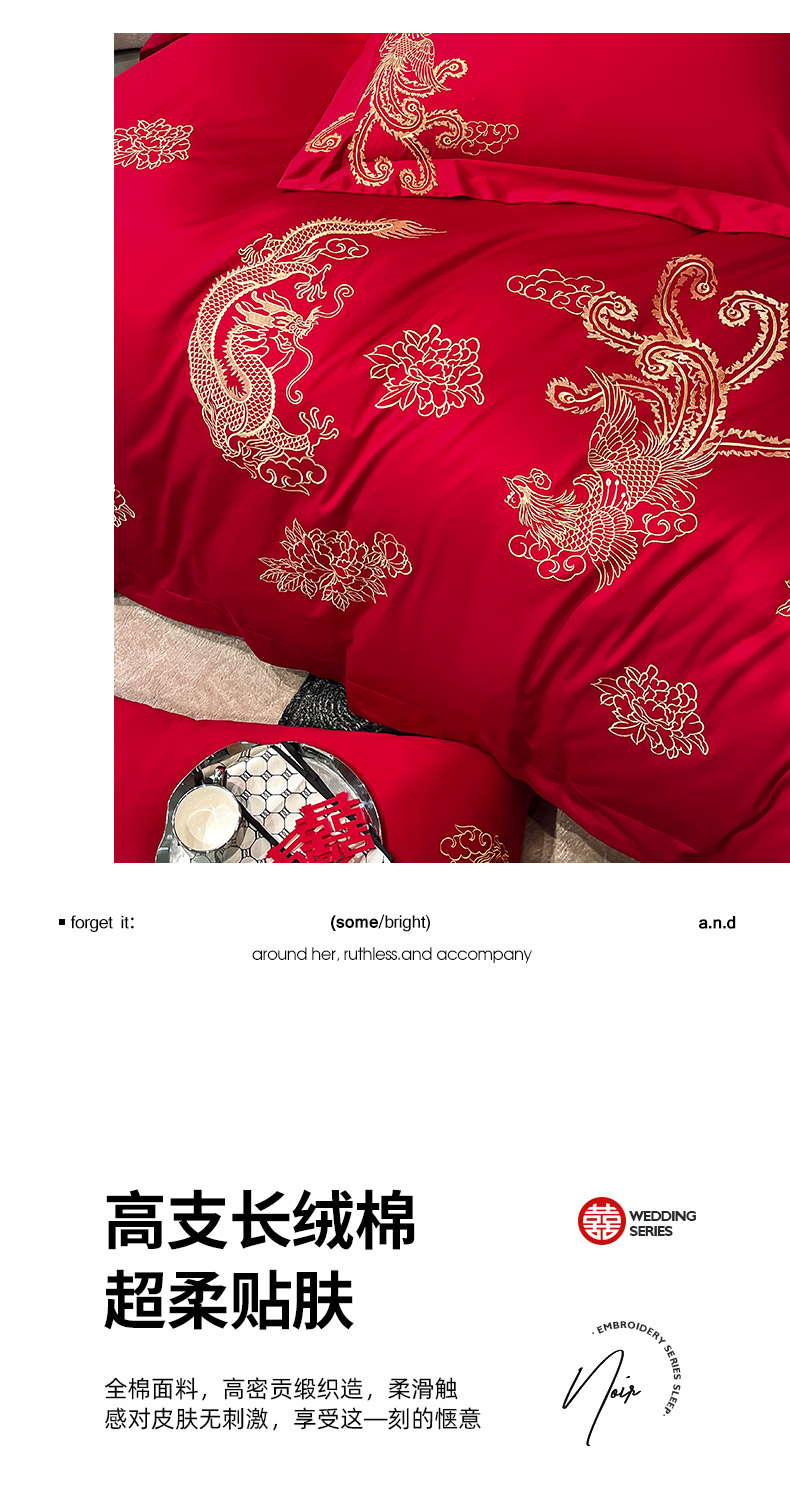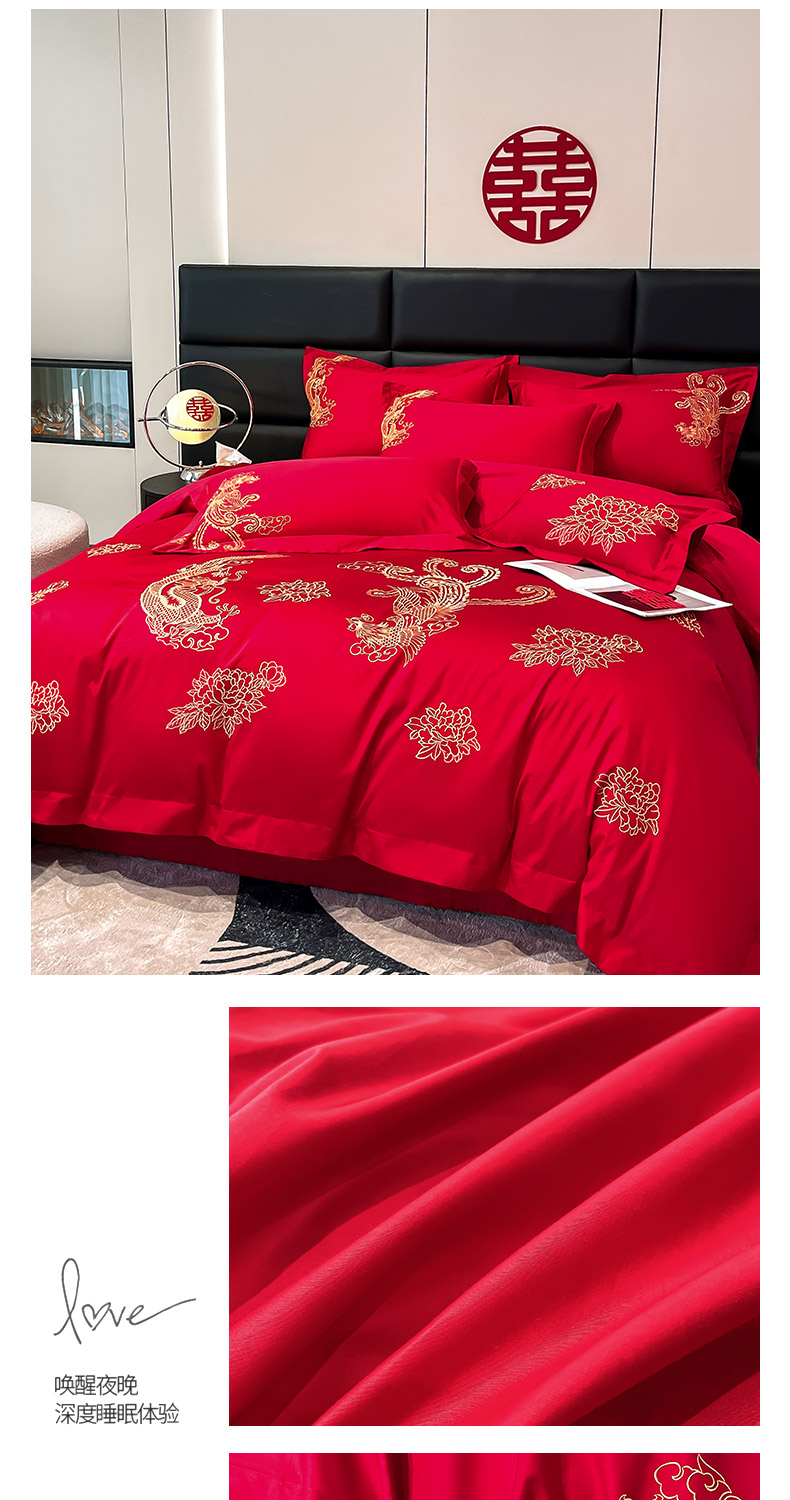 2023新款结婚100支长绒棉四件套全棉纯棉新婚贡缎刺绣大红色床上用品