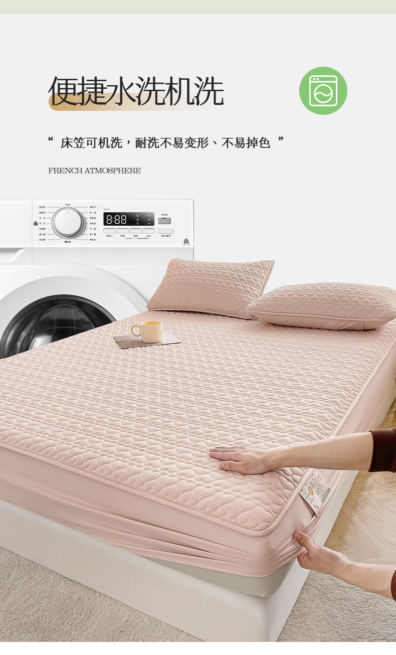 商品名称:(总)雯豆家纺 2023新款高克重磨毛夹棉床笠纯色水洗棉床垫保护套