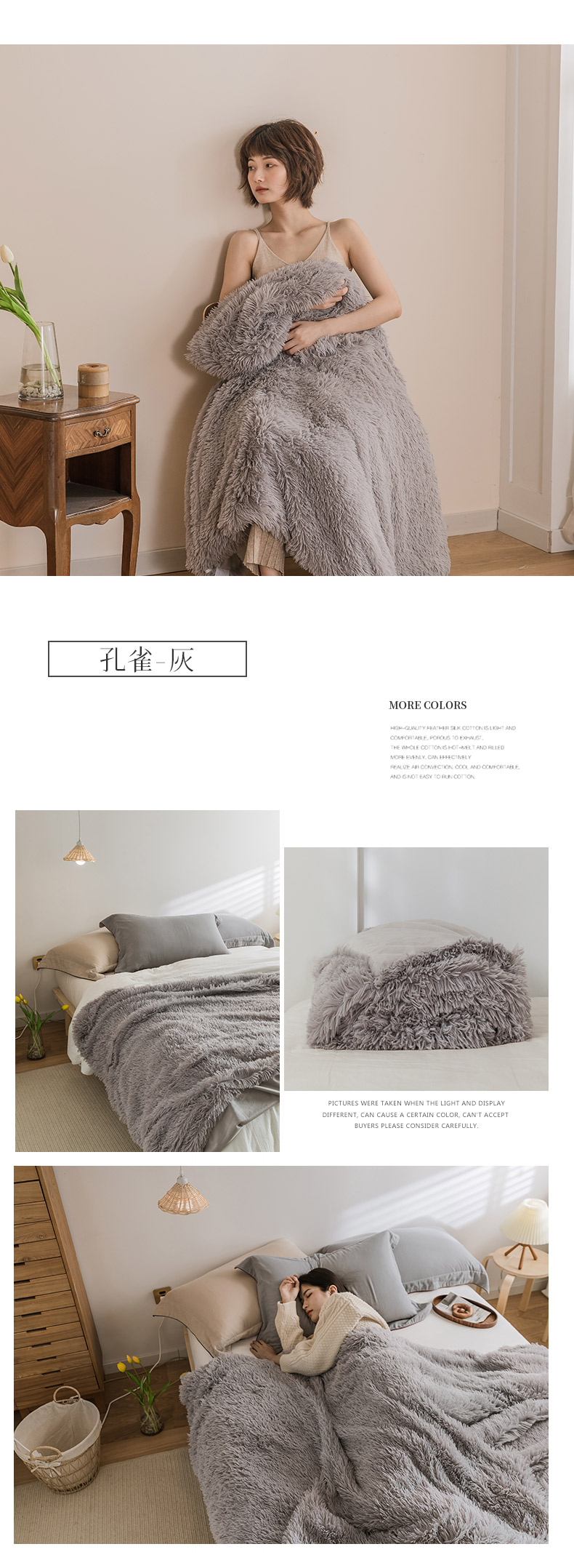 商品名称:肖恩毯业 2025新款纯色孔雀绒毛毯沙发盖毯午睡毯子 孔雀-灰