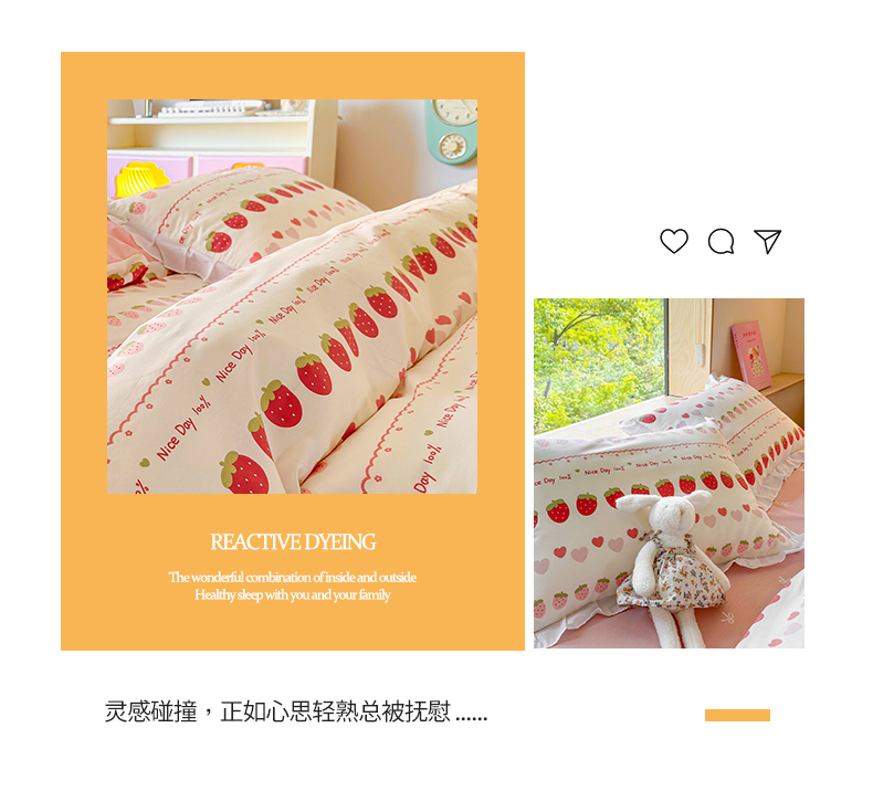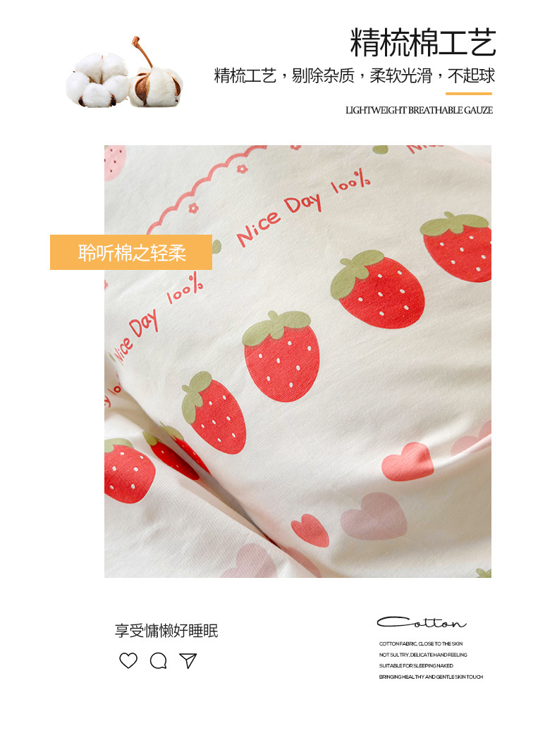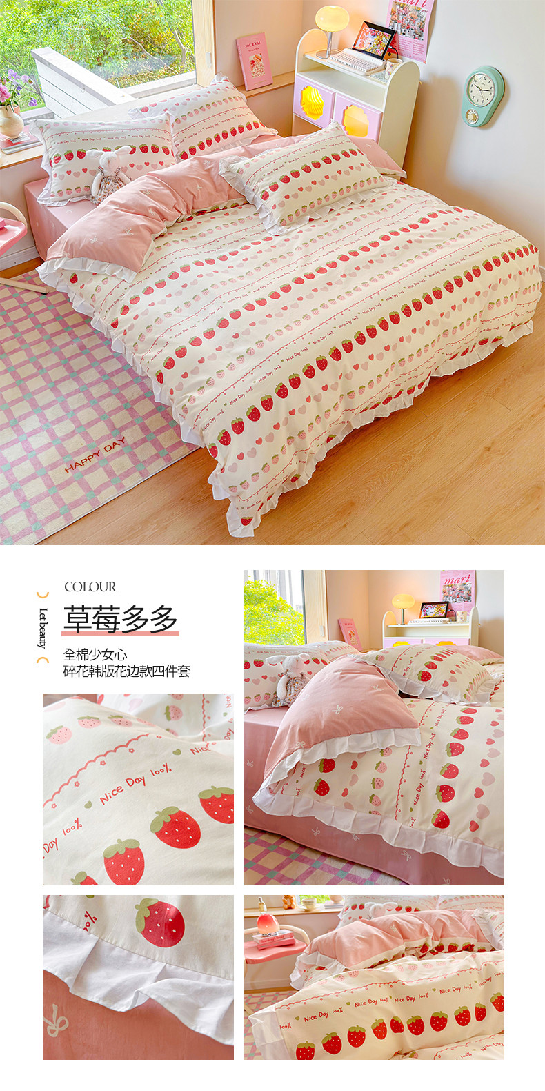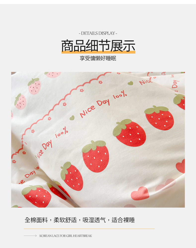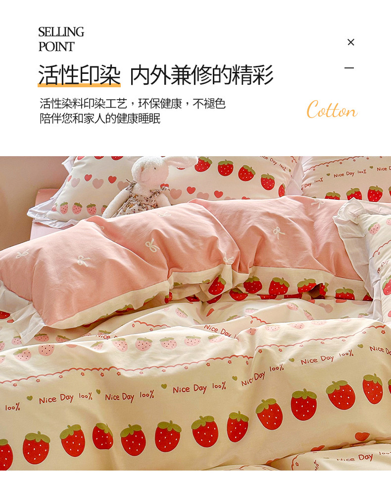 商品名称:桃子 2023新款仙气奶油碎花少女心韩版花边纯棉四件套 花边-草莓多多