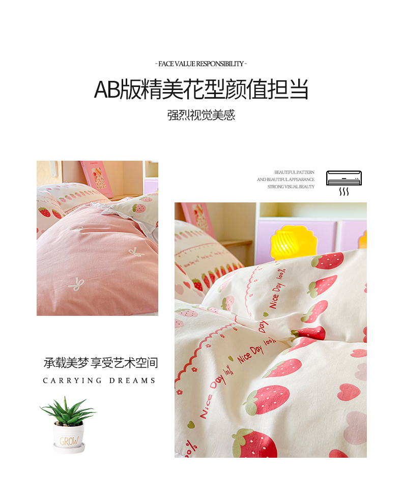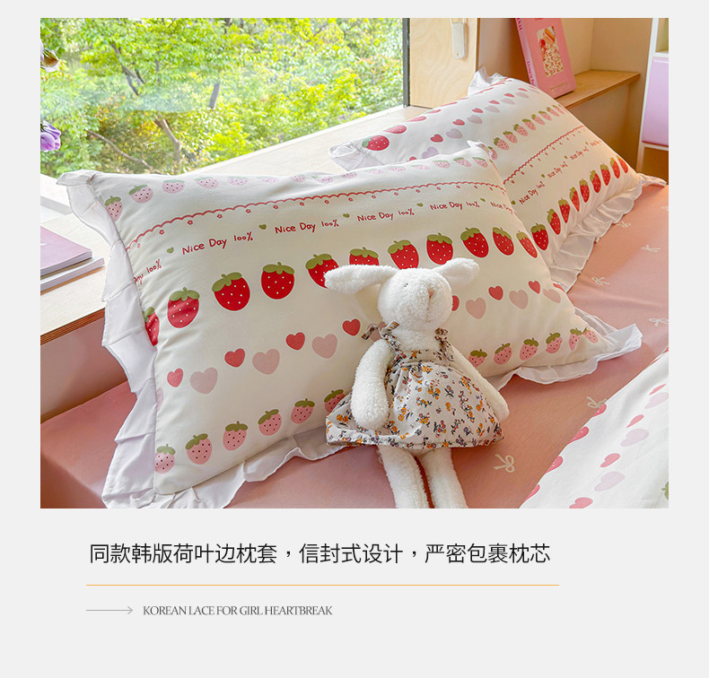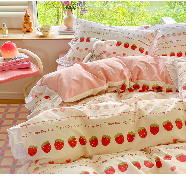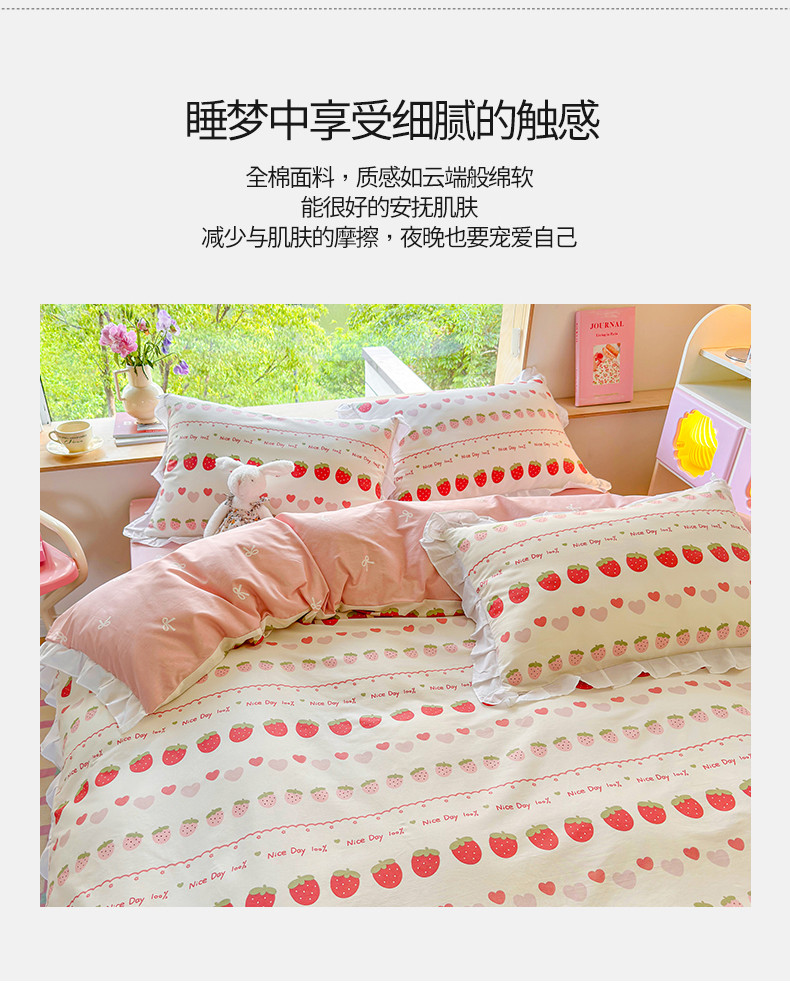 桃子 2023新款仙气奶油碎花少女心韩版花边纯棉四件套 花边-草莓多多