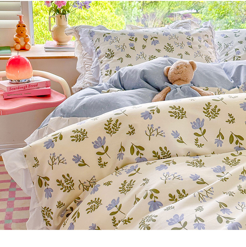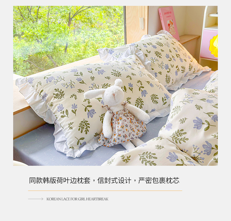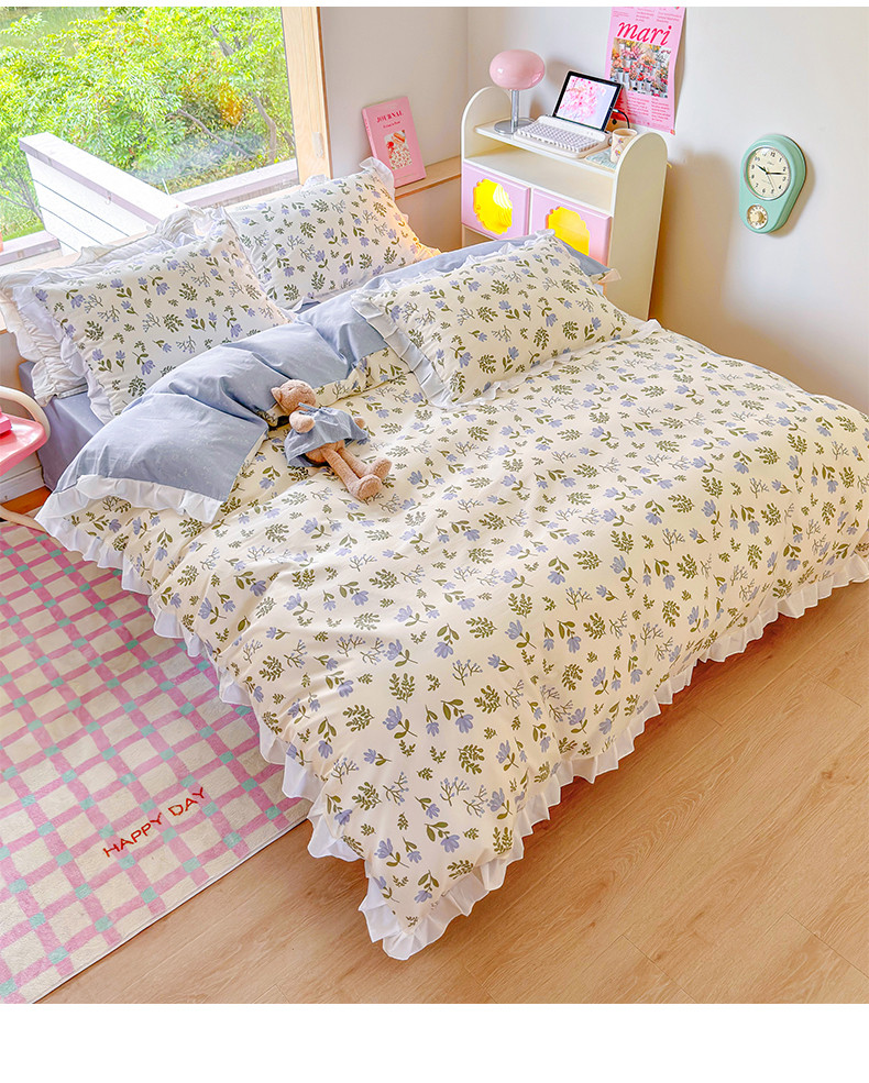 桃子 2023新款仙气奶油碎花少女心韩版花边纯棉四件套 花边-兰玲花