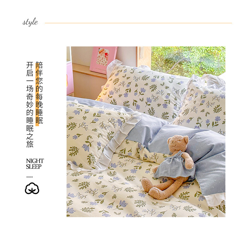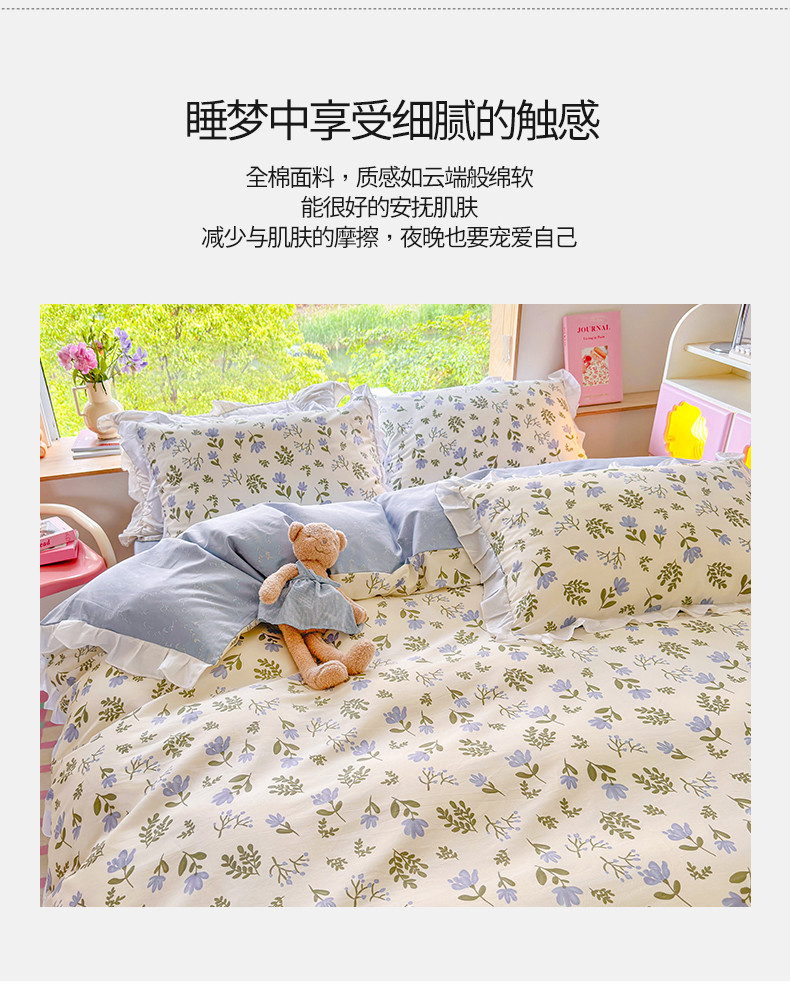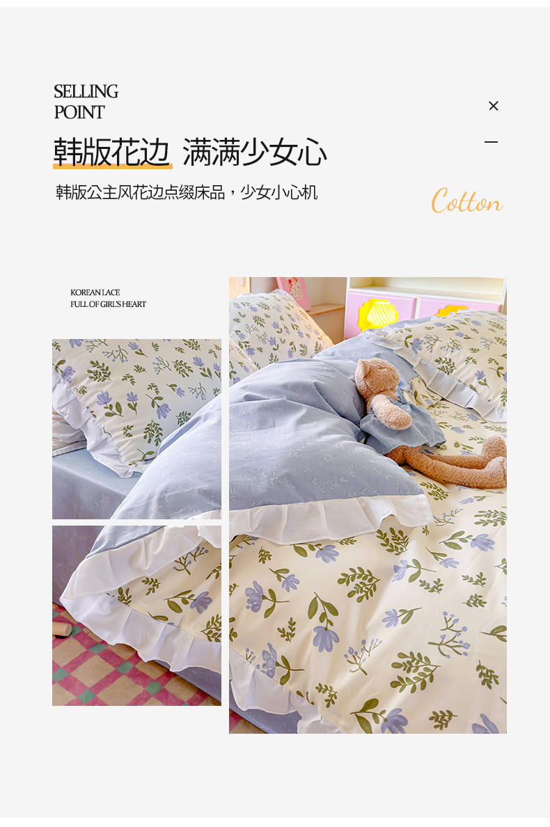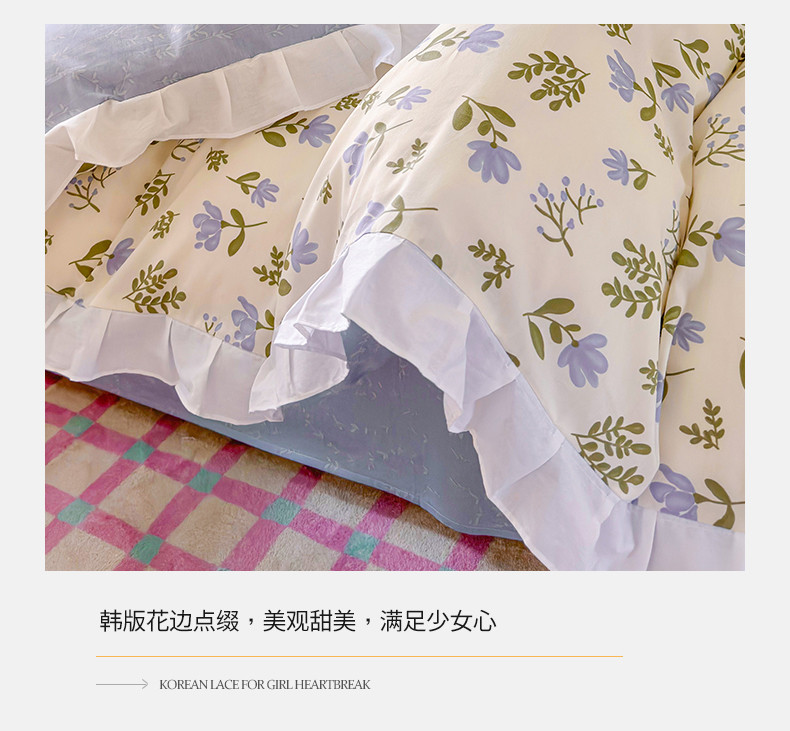 商品名称:桃子 2023新款仙气奶油碎花少女心韩版花边纯棉四件套 花边-兰玲花